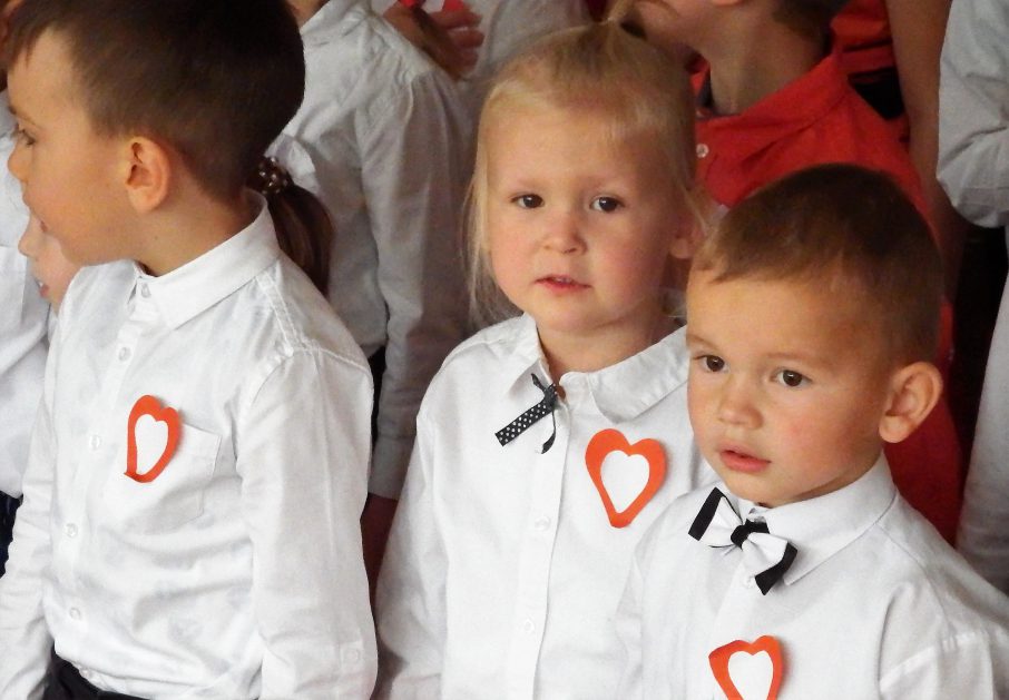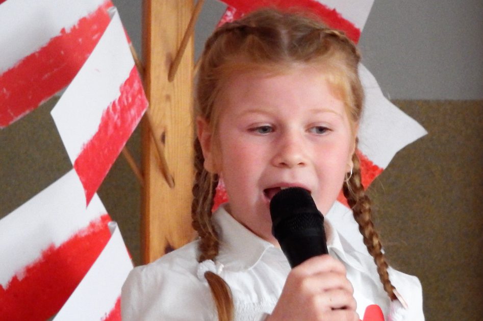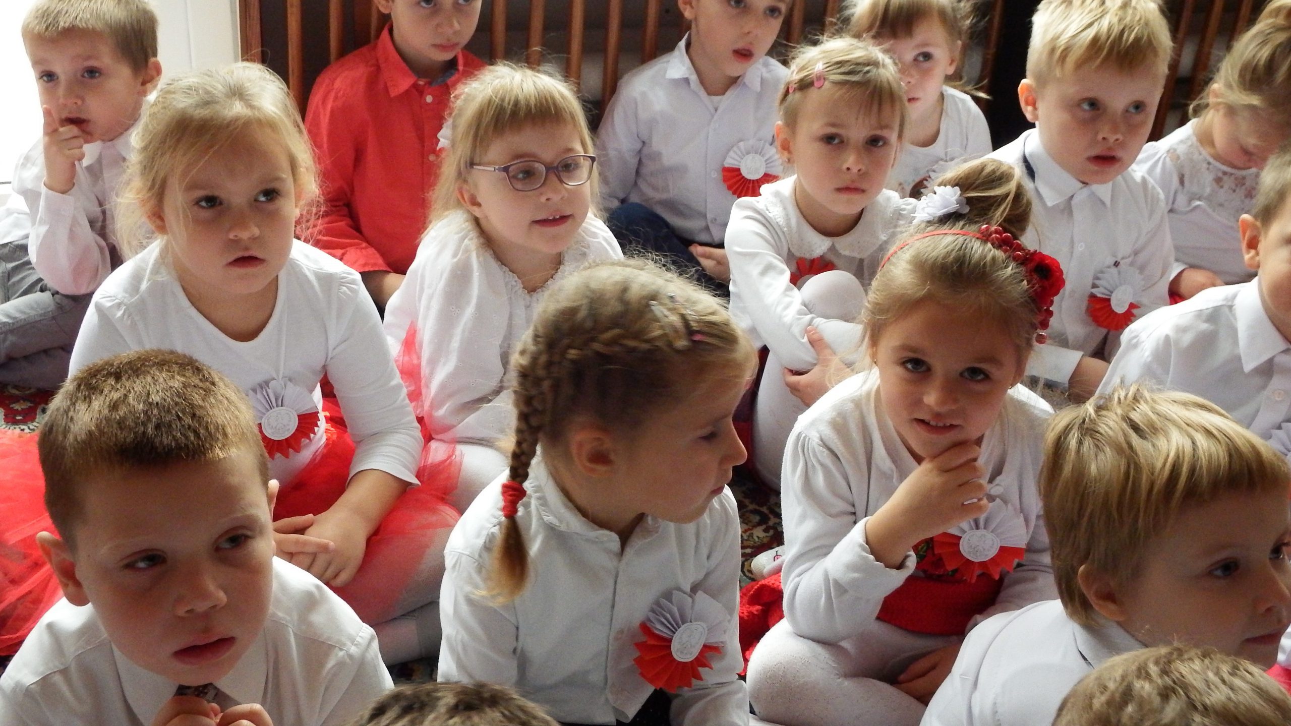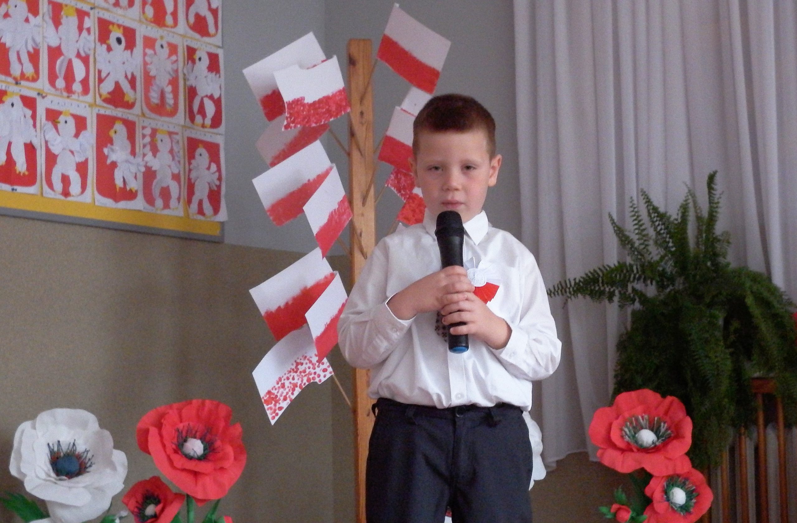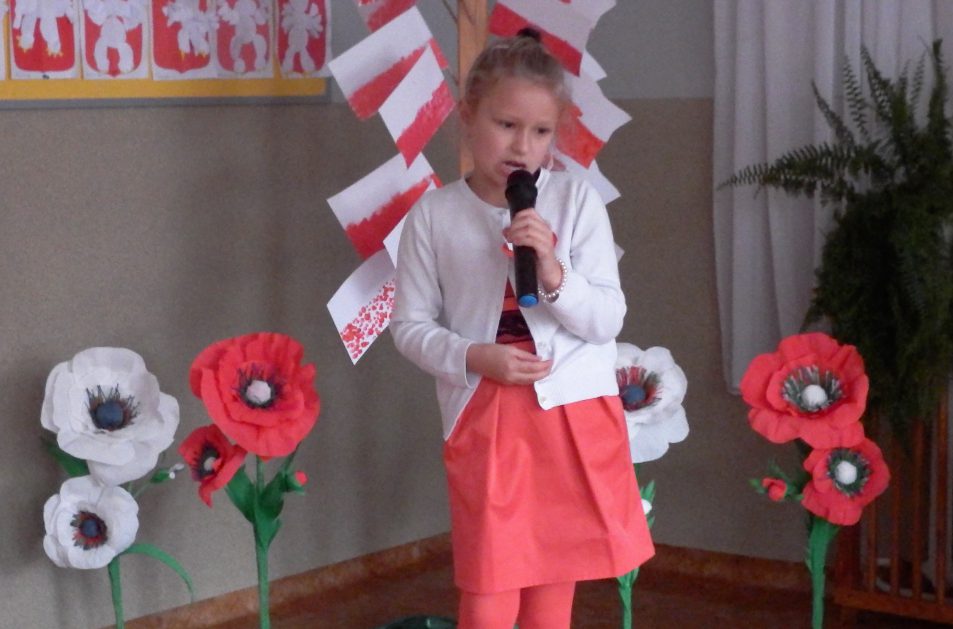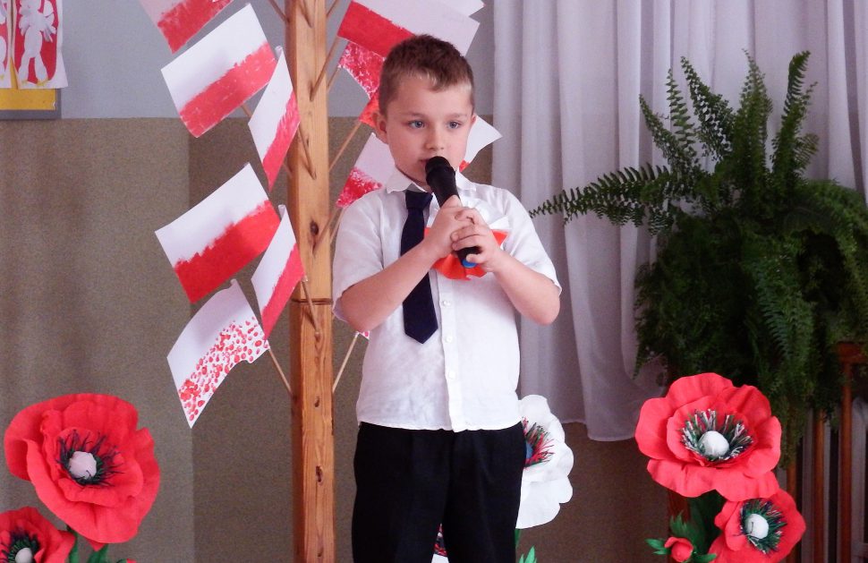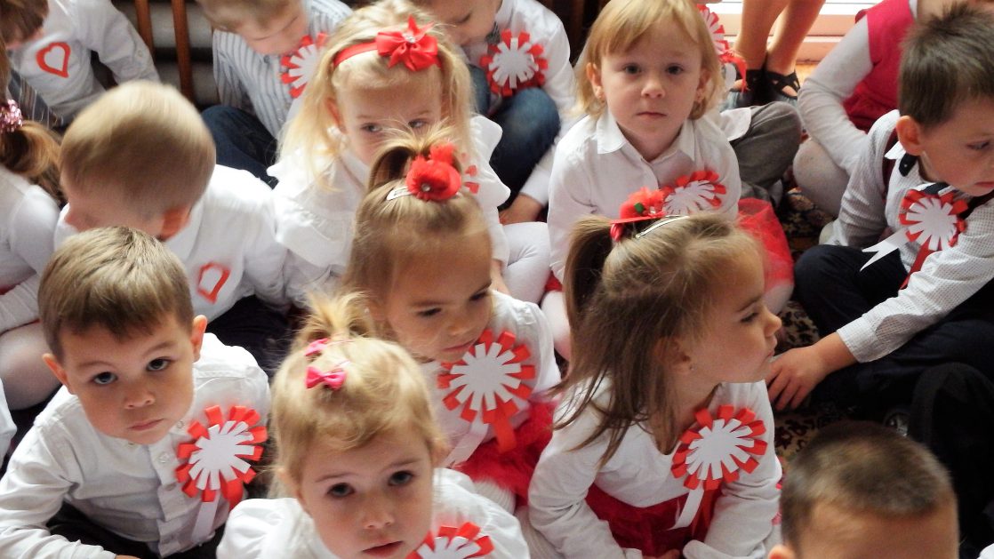 W naszym przedszkolu treści patriotyczne są bliskie dzieciom, każdy wie, że jest Polką i Polakiem, czego przykładem był przepiękny występ w Kinie „Wolność” na zakończenie roku. A w listopadzie rozpoczęliśmy działania dotyczące obchodów 100 – lecia Odzyskania przez Polskę Niepodległości. 9 listopada zaplanowane były konkursy: plastyczny i recytatorski pod hasłem „Kocham Cię Polsko”. Chętnych uczestników było dużo. Mimo trudnych treści dzieci poradziły sobie i pięknie recytowały wiersze o Polsce, a prace plastyczne dały dowód wiedzy i kreatywności dzieci. Podczas uroczystej akademii wszystkie przedszkolaki o godzinie 11: 11 odśpiewały hymn państwowy biorąc tym samym udział w akcji „Rekord dla Niepodległej” ogłoszonej przez Minister Edukacji Narodowej. Ten dzień był wyjątkowy i na pewno zapisał się w historii naszego przedszkola jako pamiątka dla przyszłych pokoleń.