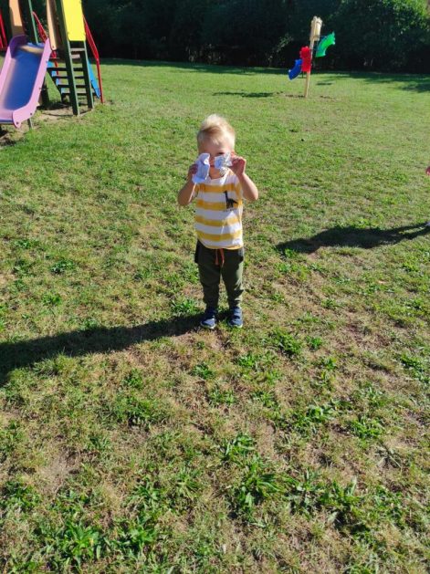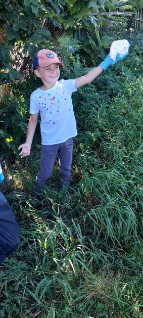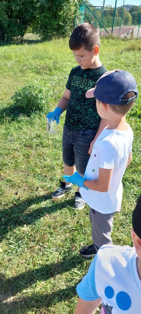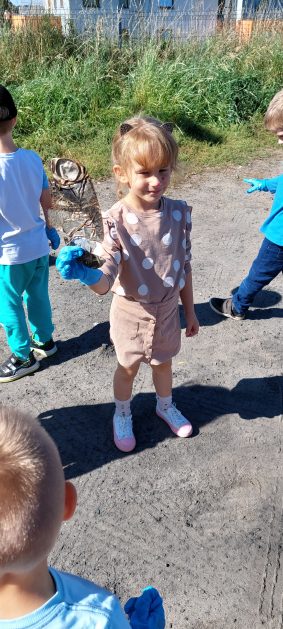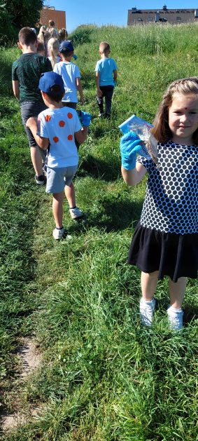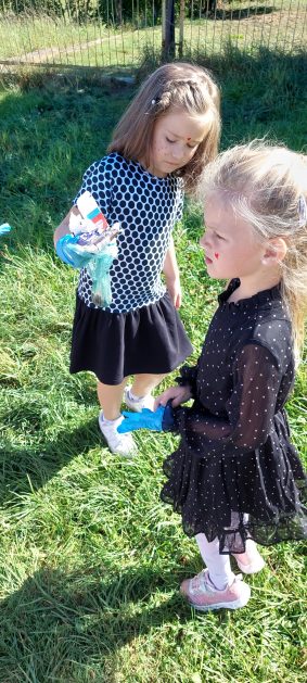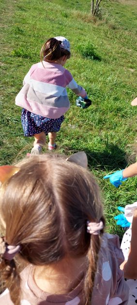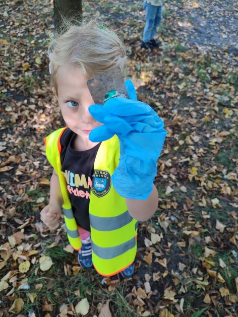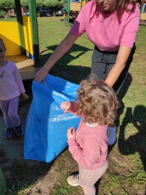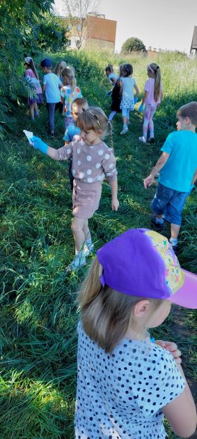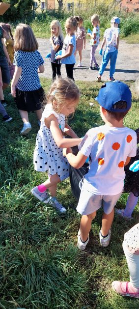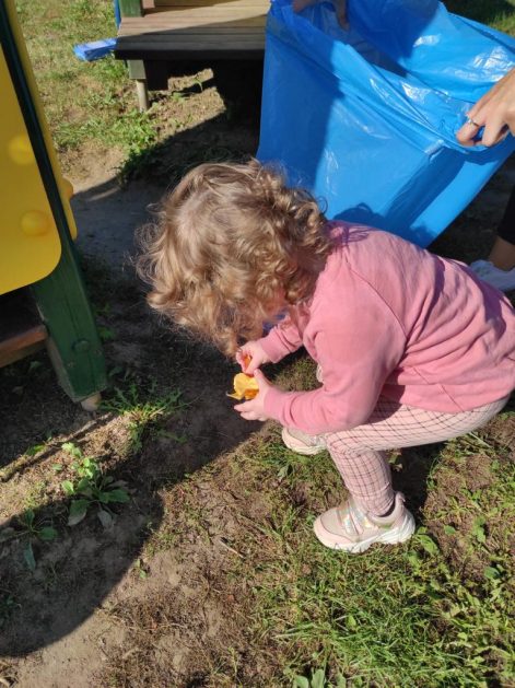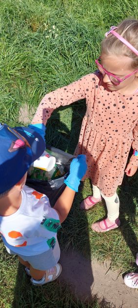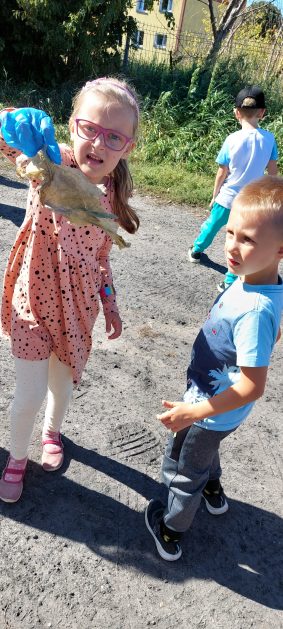 A maluszki tuż, tuż obok w naszym ogrodzie też coś znalazły….? Ale przecież my nie śmiecimy, my porządek i czystość lubimy! Ktoś podrzucił tutaj śmieci! Pewnie jakieś niegrzeczne dzieci…