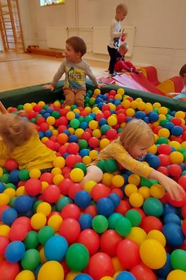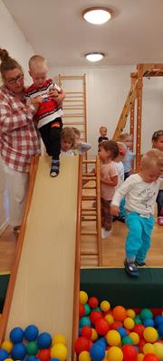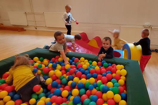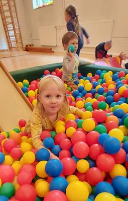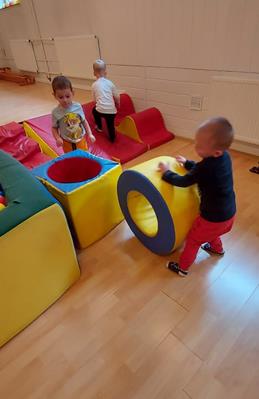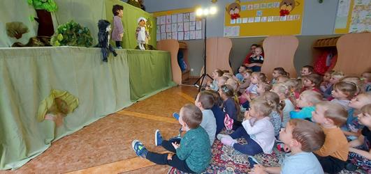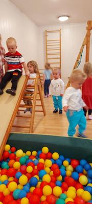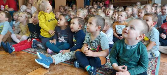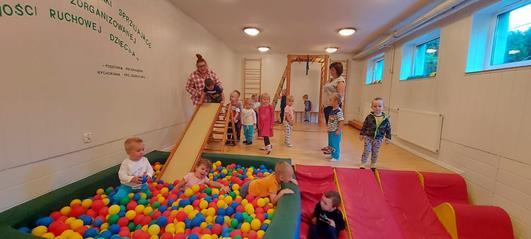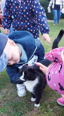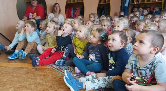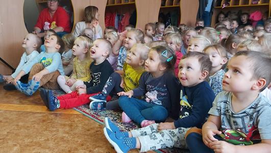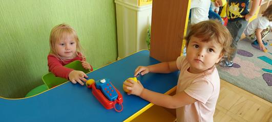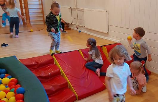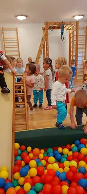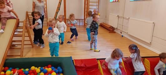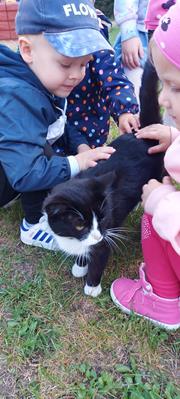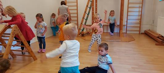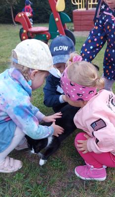 Po pierwszym okresie adaptacji dzieci z coraz większym zainteresowaniem poznają przedszkolne zwyczaje. Codziennie bawią się, a ta zabawa to nauka nowych czynności samoobsługowych, poznawanie się nawzajem w grupie i nawiązywanie kontaktów społecznych. Z Kicią Kocią poznały magiczne słowa i zwroty grzecznościowe. W ramach zabawy wybrały się zwiedzać przedszkole, przywitały się z dziećmi w innych salach oraz panią Dyrektor. Na spacerze znalazły zaprzyjaźnionego kotka. Uczestniczyły w przedstawieniu teatralnym „Kot w butach” z udziałem aktorów z teatru Frajda z Koszalina. A swoją energię spożytkowały na zabawach w sali rekreacyjnej.