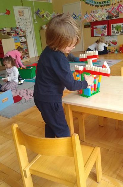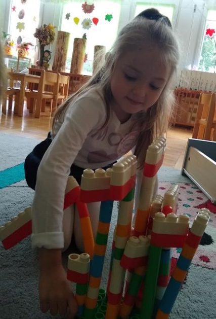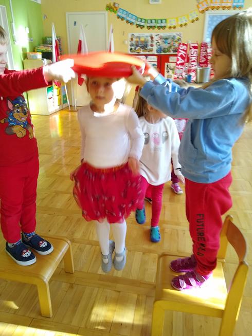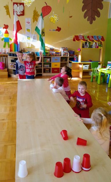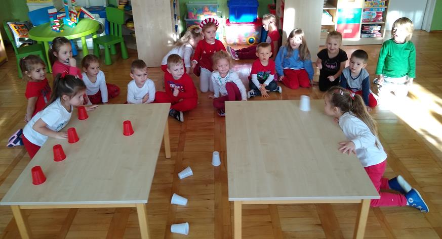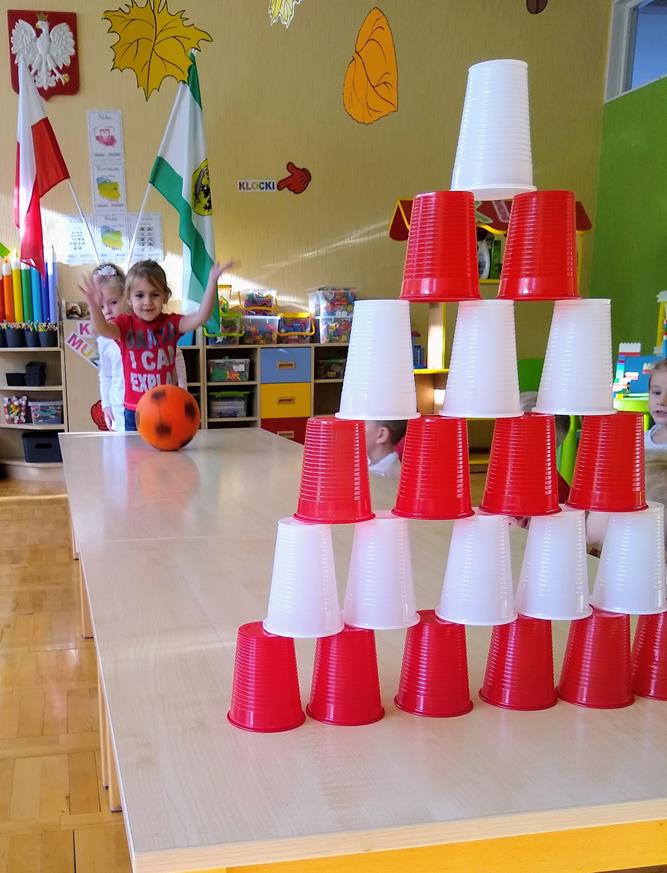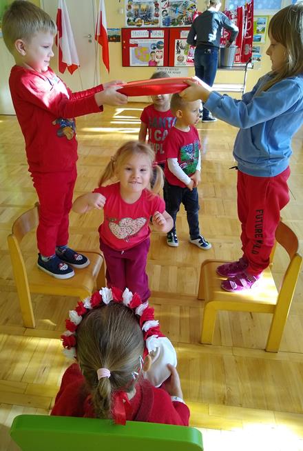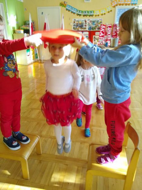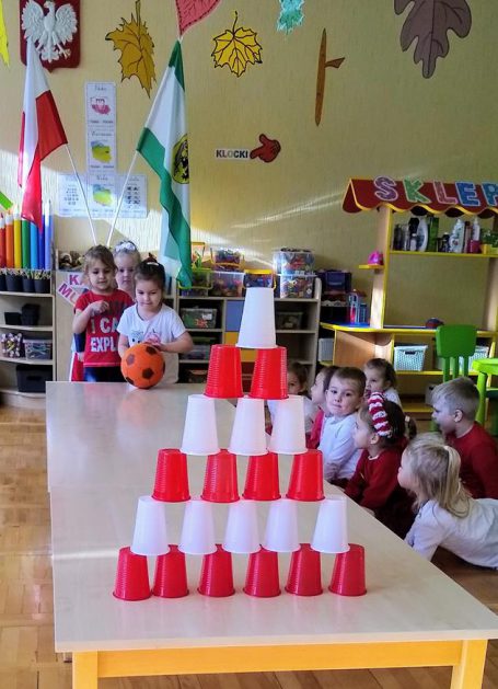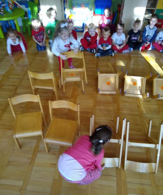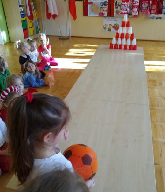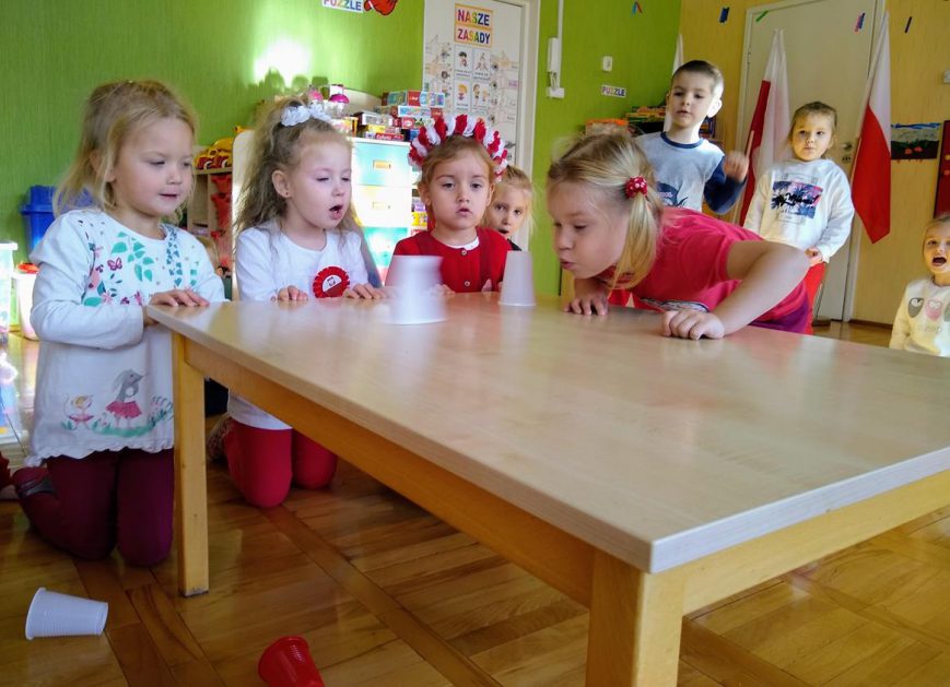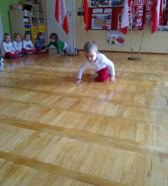 W ramach projektu „Piękna nasza Polska cała” 10 listopada w grupie 4 latków odbyły się zawody sportowe, pod hasłem: „Polska! Biało – Czerwoni! Stroje dzieci i rekwizyty nawiązywały do barw narodowych. Na początku wszyscy uczestnicy złożyli uroczystą przysięgę, że będą się świetnie bawić i rywalizować fair play . Były rożne konkurencje, m.in.: „Bieg piesków”, „Porządki”, „Jesienny wiatr”, „Kręgle”. Realizacja projektu odbywała się na wiele różnych sposobów: udział w uroczystej akademii z okazji święta 11listopada dla upamiętnienia odzyskania niepodległości przez Polskę w 1918, czy utrwalanie wiadomości poprzez dowolne czynności zabawowe dzieci – budowanie flagi Polski z rożnych klocków.