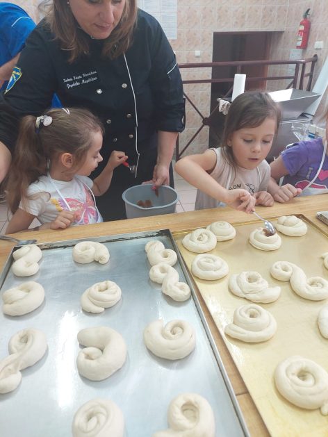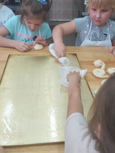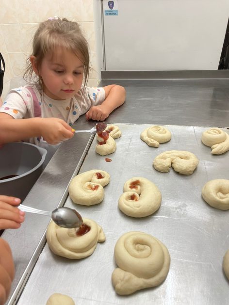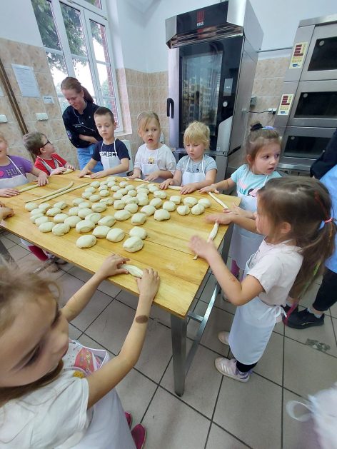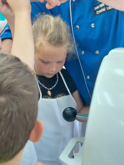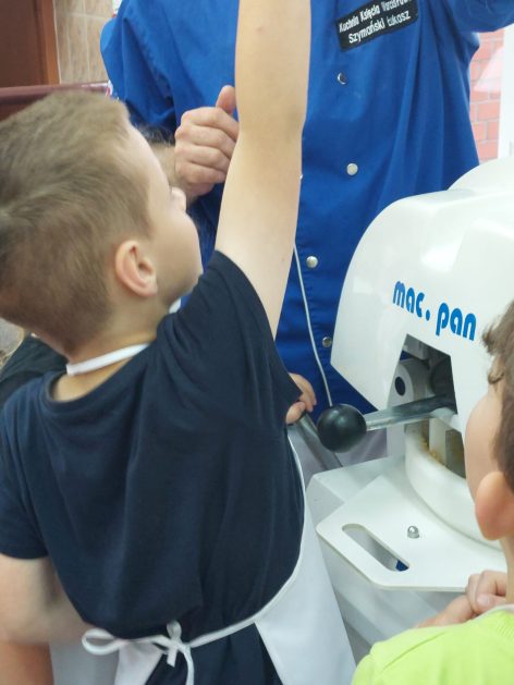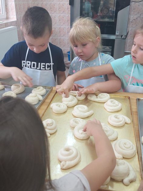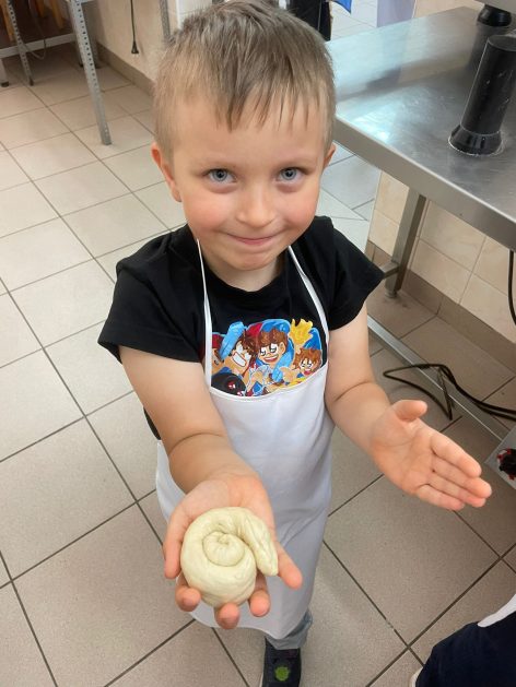 7 czerwca grupa 5 latków gościła w Zespole Szkół nr 2 im. Warcisława IV na warsztatach kulinarnych. Dzieci zgłębiły tajniki wiedzy o zdrowym żywieniu, przekazaną przez Pana Łukasza Sz. Brały również czynny udział w zajęciach praktycznych i samodzielnie próbowały swoich sił przygotowując słodkie drożdżówki. Teraz każdy może zostać pomocnikiem mamy w kuchni!
