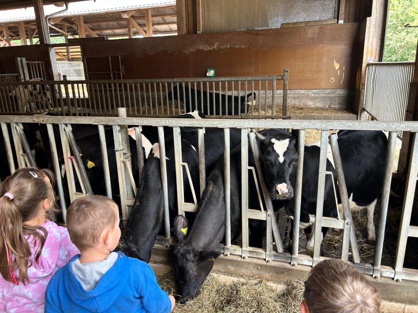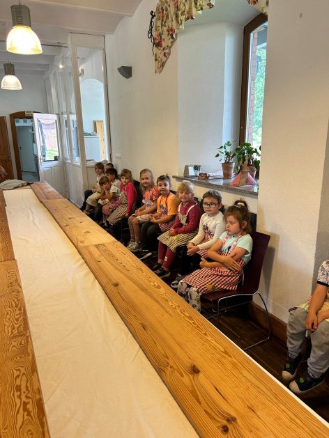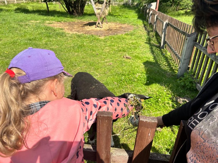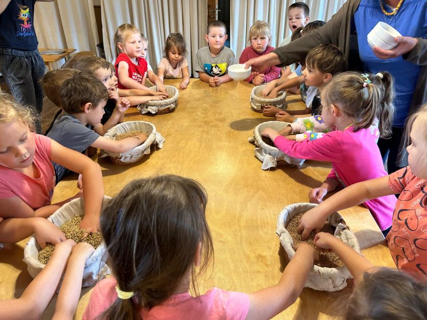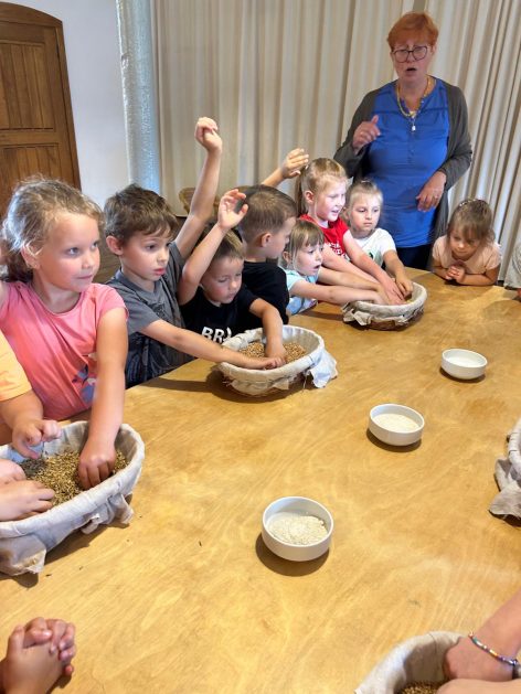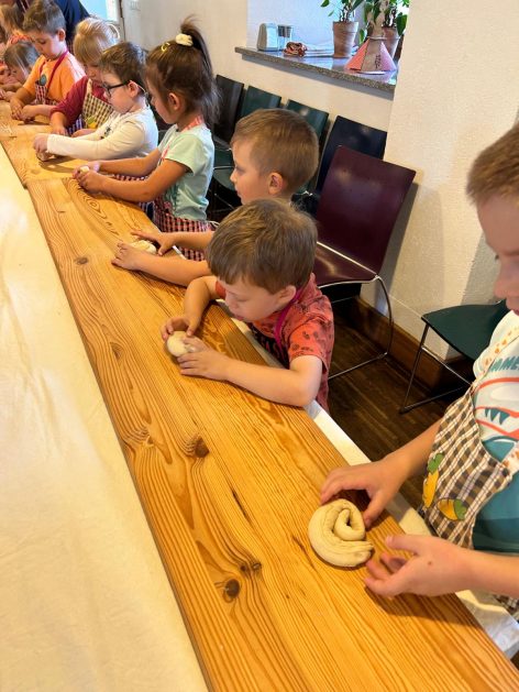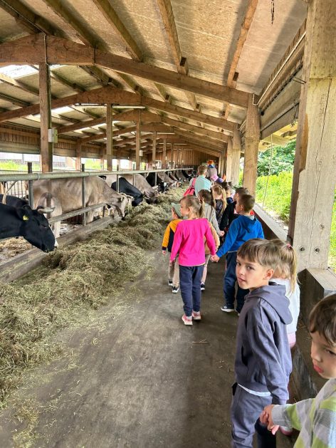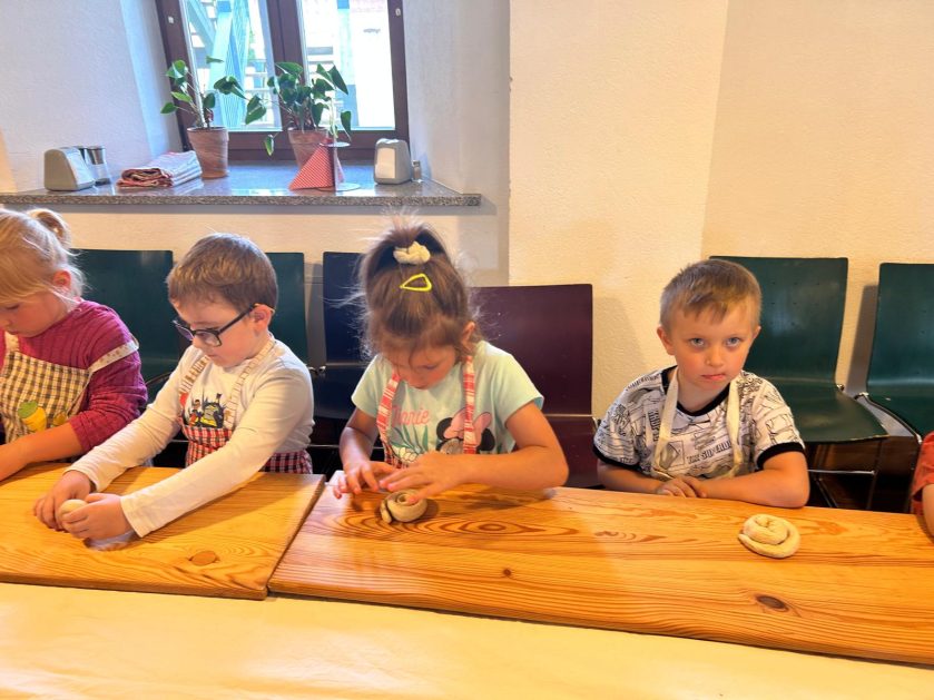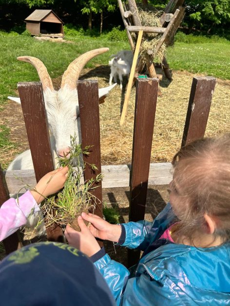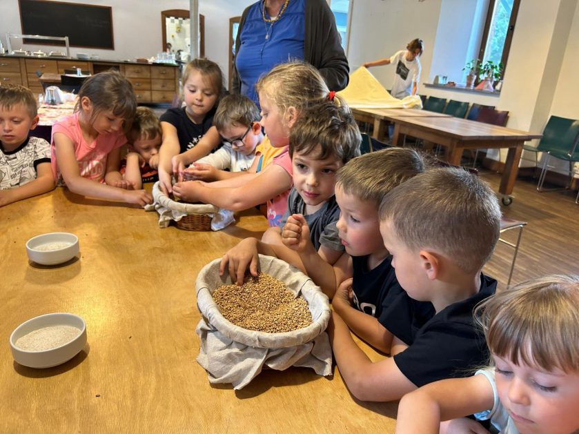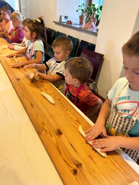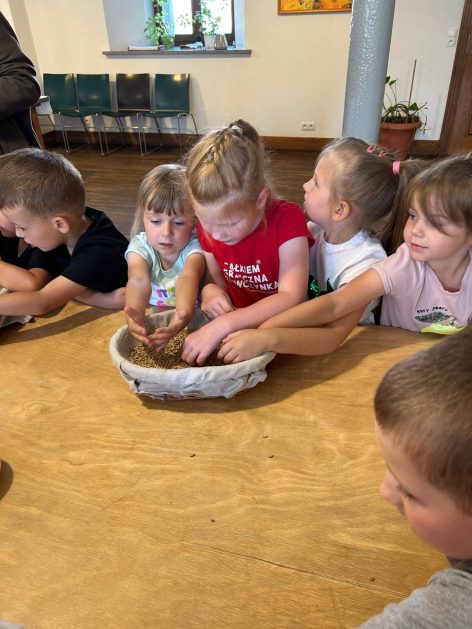 13 czerwca 5 latki odwiedziły gospodarstwo ekologiczne w Juchowie,  prowadzone w harmonii ze środowiskiem naturalnym oraz w trosce o zachowanie pięknego krajobrazu. Celem wycieczki było zapoznanie dzieci z gospodarstwem ekologicznym, z pojęciem ekologia, poszerzenie wiedzy na temat produktów ekologicznych, zapoznanie z pracą w gospodarstwie, a także budowanie wrażliwości na piękno przyrody. Gospodarze opowiedzieli czym charakteryzuje się gospodarstwo ekologiczne i oprowadzili po swoich włościach, gdzie dzieci mogły zobaczyć produkcję produktów mlecznych, obejrzały nowoczesne sprzęty rolnicze jak i oczywiście zobaczyły zwierzęta hodowlane. Smacznym punktem spotkania było pieczenie bułeczek i skosztowanie ich z kubeczkiem mleka.