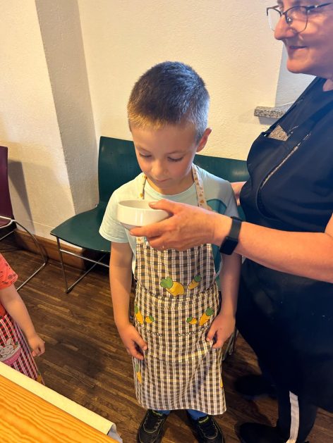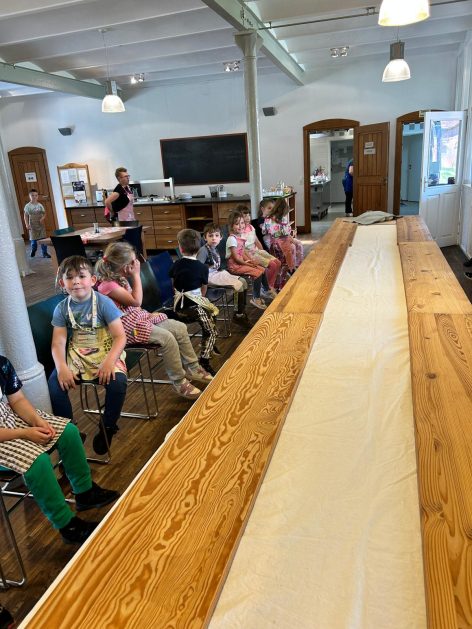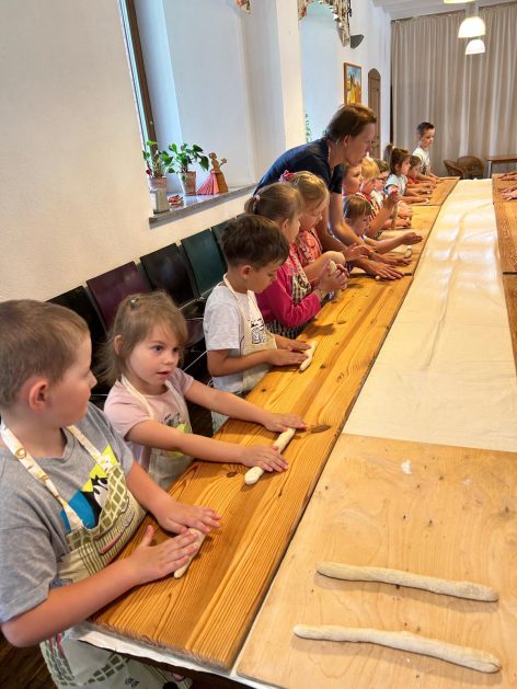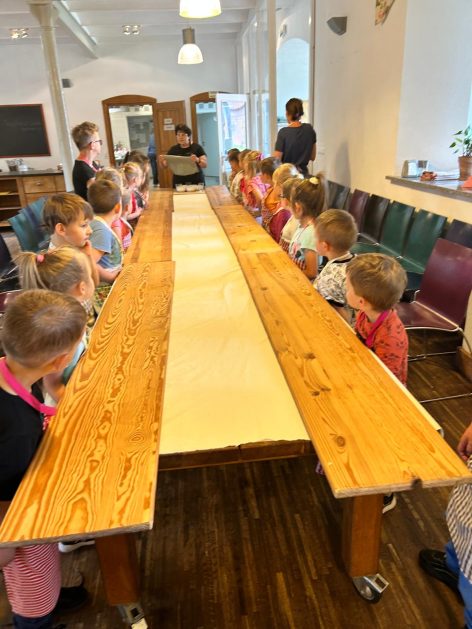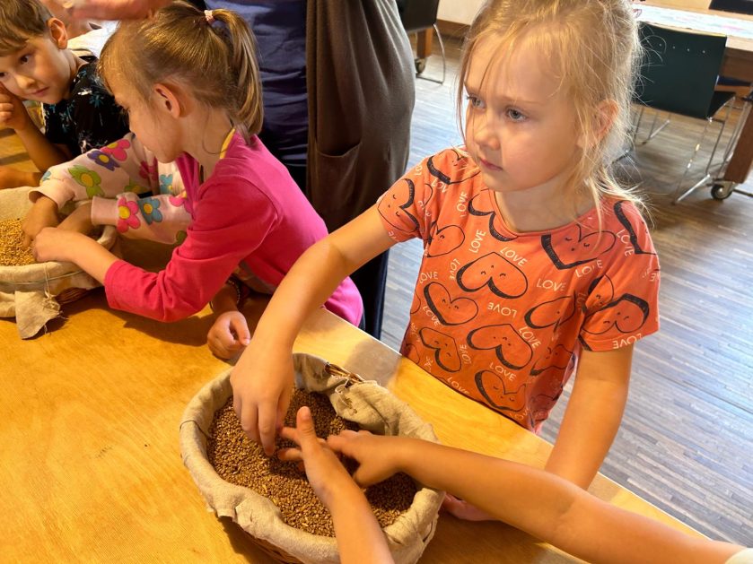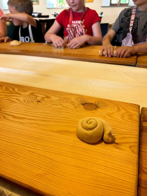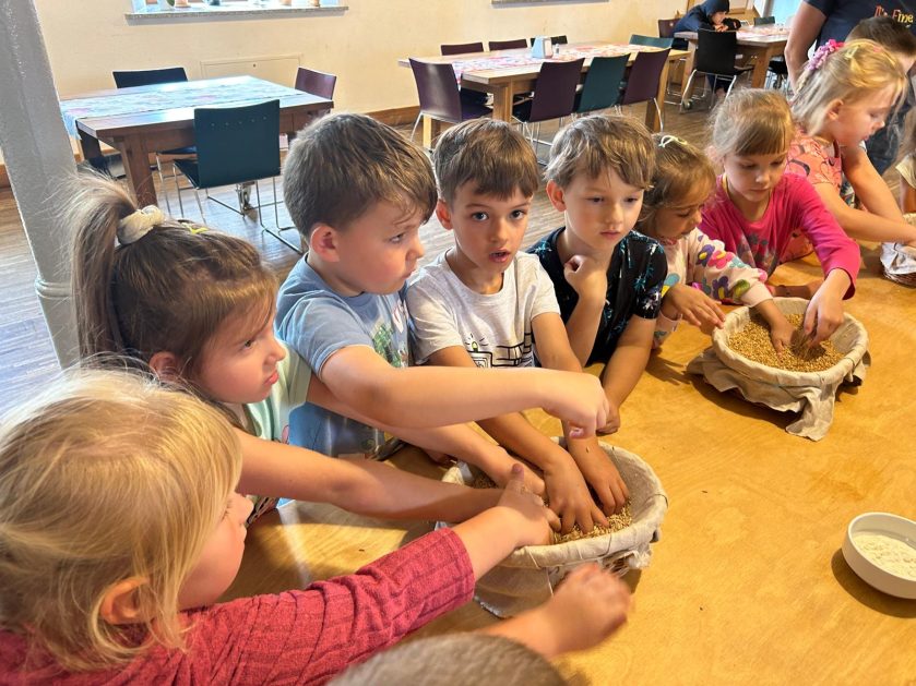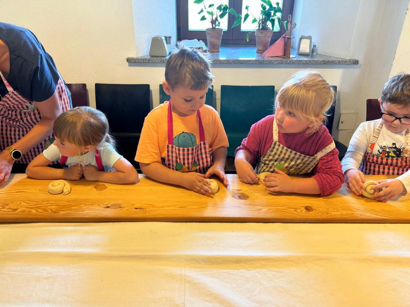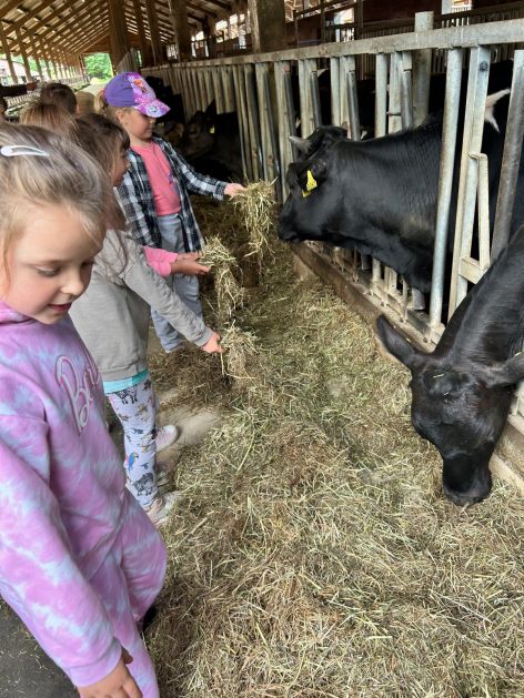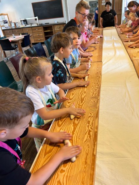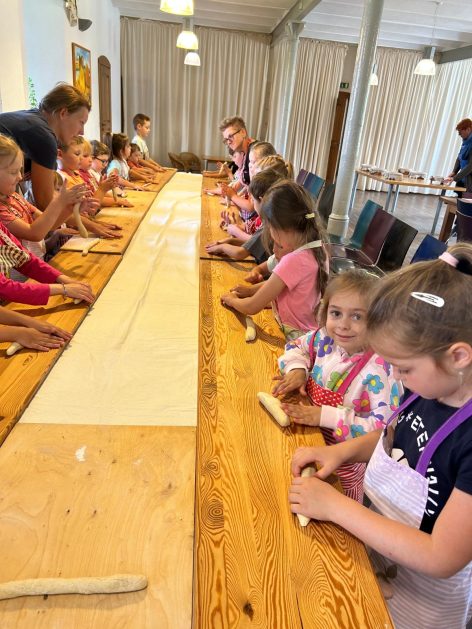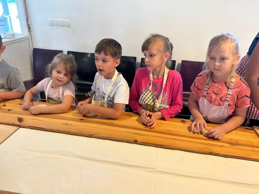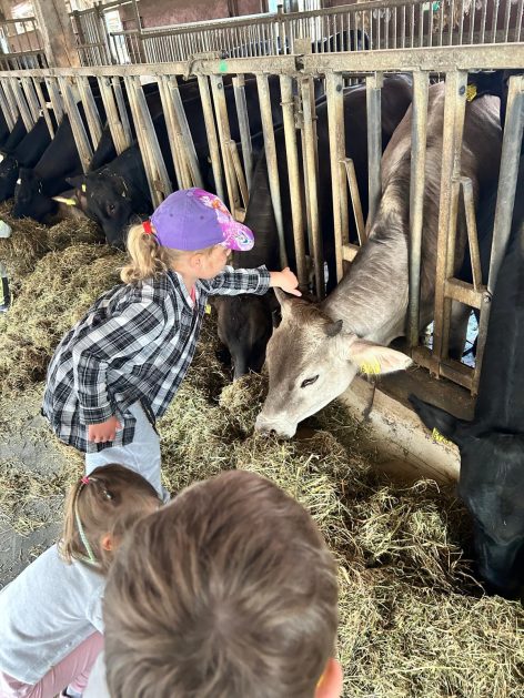 13 czerwca 5 latki odwiedziły gospodarstwo ekologiczne w Juchowie,  prowadzone w harmonii ze środowiskiem naturalnym oraz w trosce o zachowanie pięknego krajobrazu. Celem wycieczki było zapoznanie dzieci z gospodarstwem ekologicznym, z pojęciem ekologia, poszerzenie wiedzy na temat produktów ekologicznych, zapoznanie z pracą w gospodarstwie, a także budowanie wrażliwości na piękno przyrody. Gospodarze opowiedzieli czym charakteryzuje się gospodarstwo ekologiczne i oprowadzili po swoich włościach, gdzie dzieci mogły zobaczyć produkcję produktów mlecznych, obejrzały nowoczesne sprzęty rolnicze jak i oczywiście zobaczyły zwierzęta hodowlane. Smacznym punktem spotkania było pieczenie bułeczek i skosztowanie ich z kubeczkiem mleka.