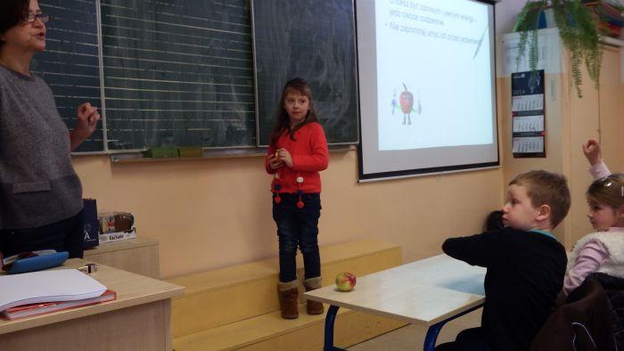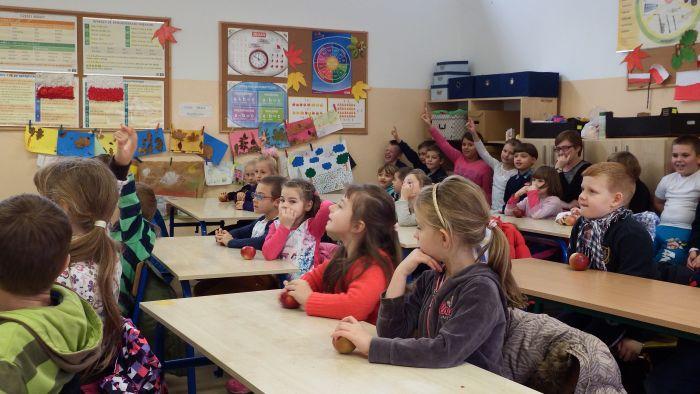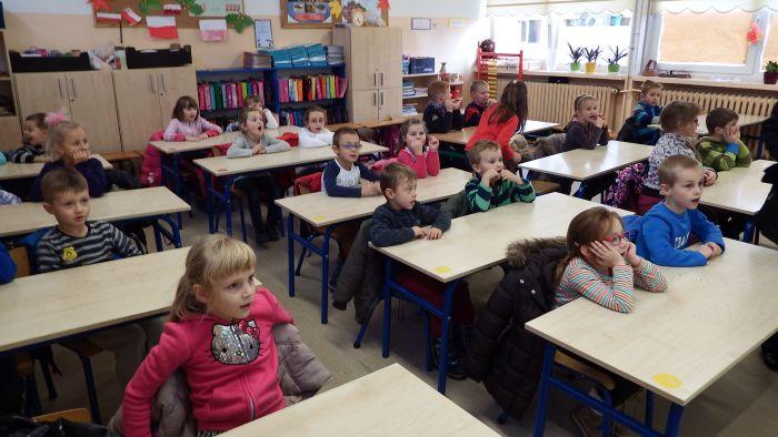 Starszaki zostały zaproszone na lekcję języka polskiego do klasy drugiej w Szkole Podstawowej nr 6. Tak jak uczniowie zasiedli w ławkach, zgłaszali się i odpowiadali na pytania.