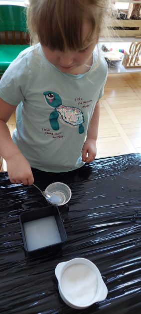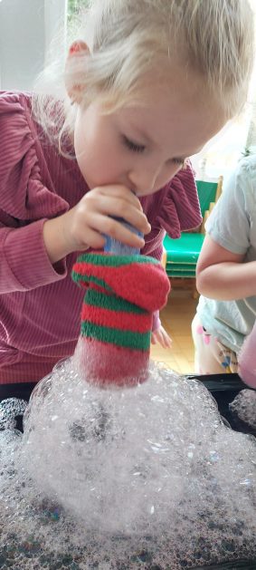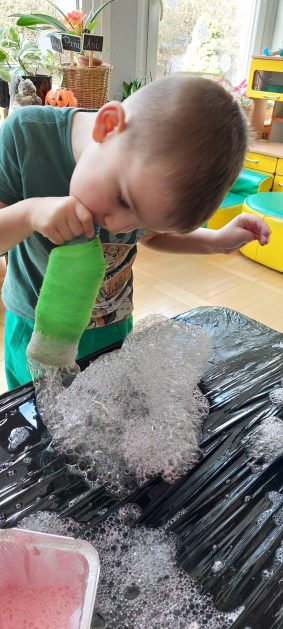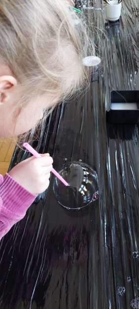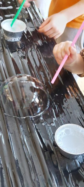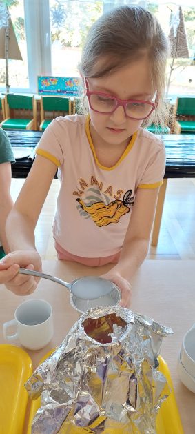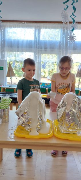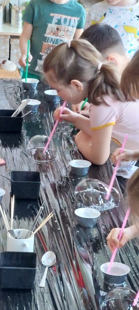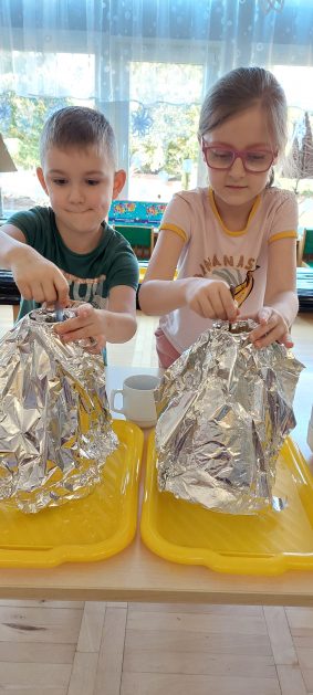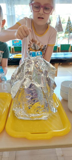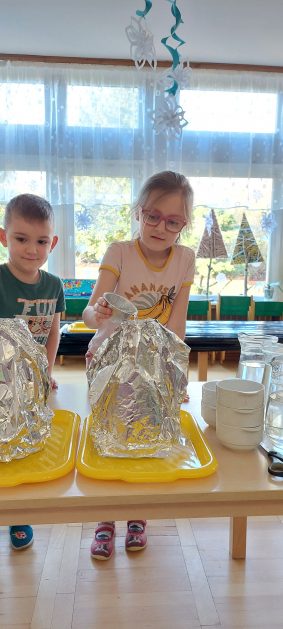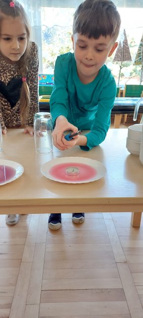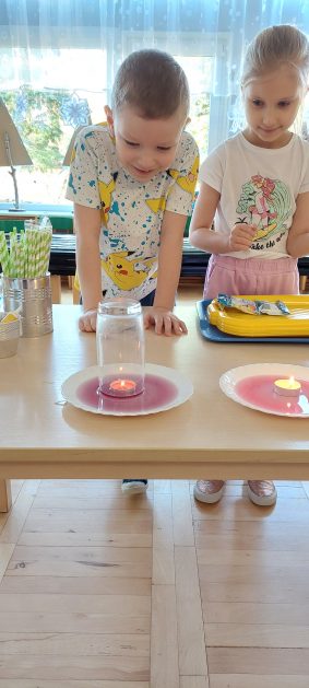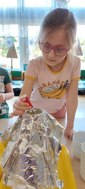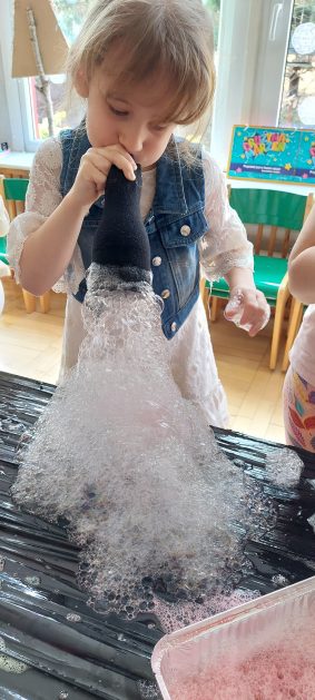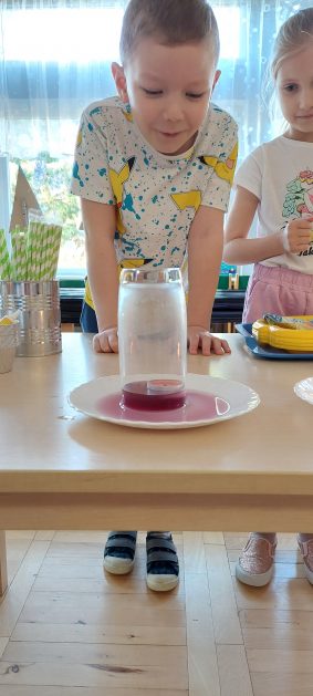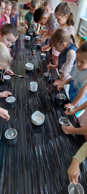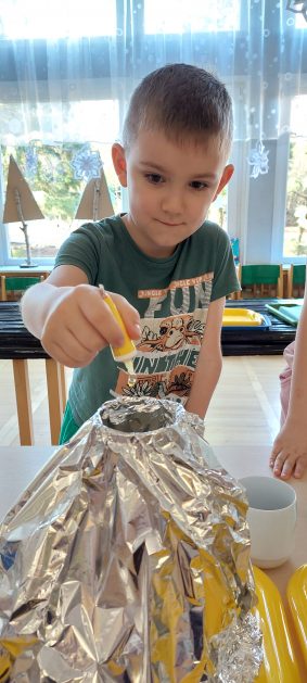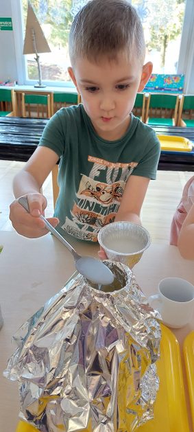 „Badam doświadczam, eksperymentuję” 6 latki samodzielnie wykonują różne doświadczenia i eksperymenty, starając się zrozumieć otaczające je zjawiska. Zabawy badawcze mają zachęcić dzieci do niecodziennej formy zdobywania wiedzy. Co to jest tlen? Czy można go zobaczyć? „Wulkan w przedszkolu” – czy to możliwe? Jak powstaje bańka mydlana? Co jest potrzebne by powstały bańki mydlane ? Czy można zamknąć bańkę w bańce? Fantastyczna zabawa pobudzająca wszystkie zmysły.