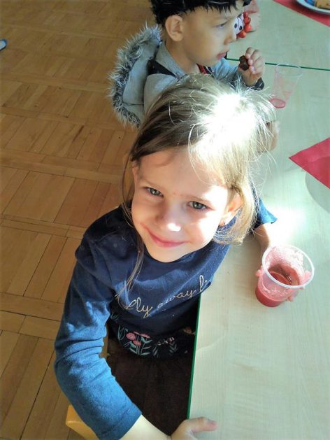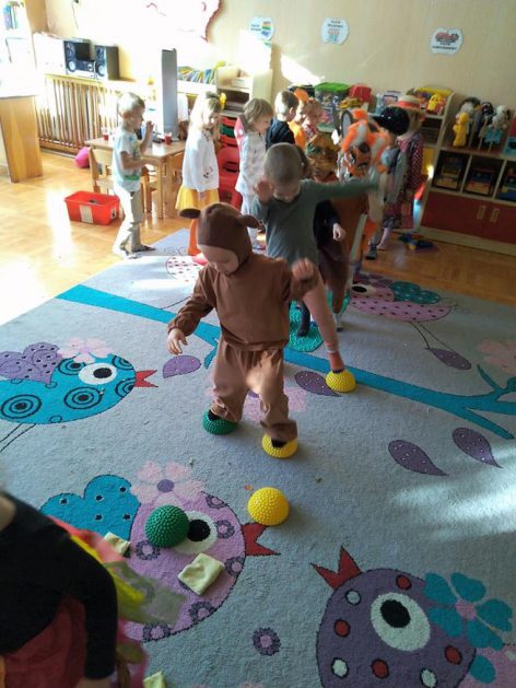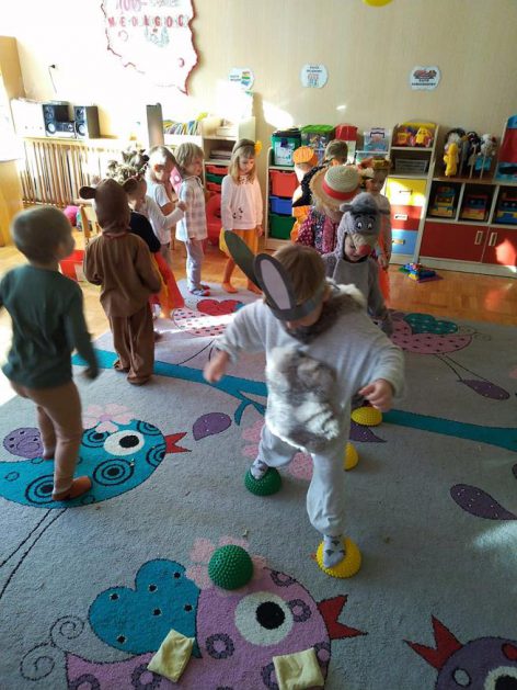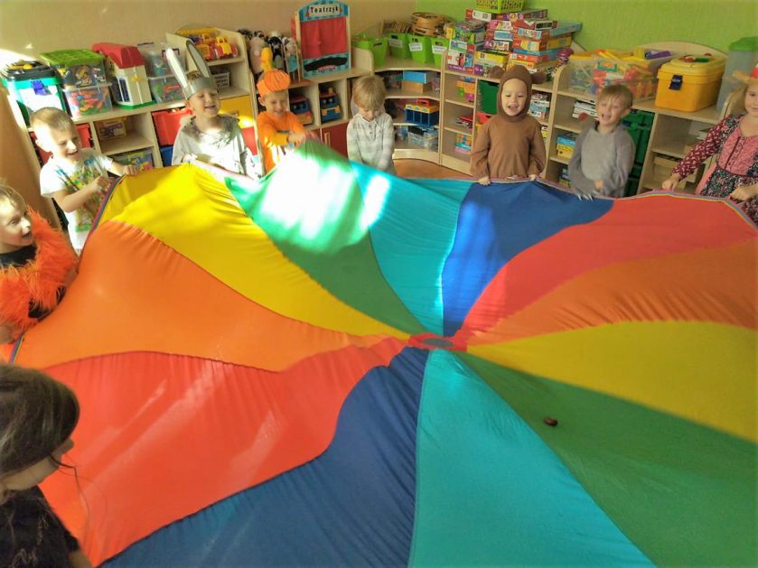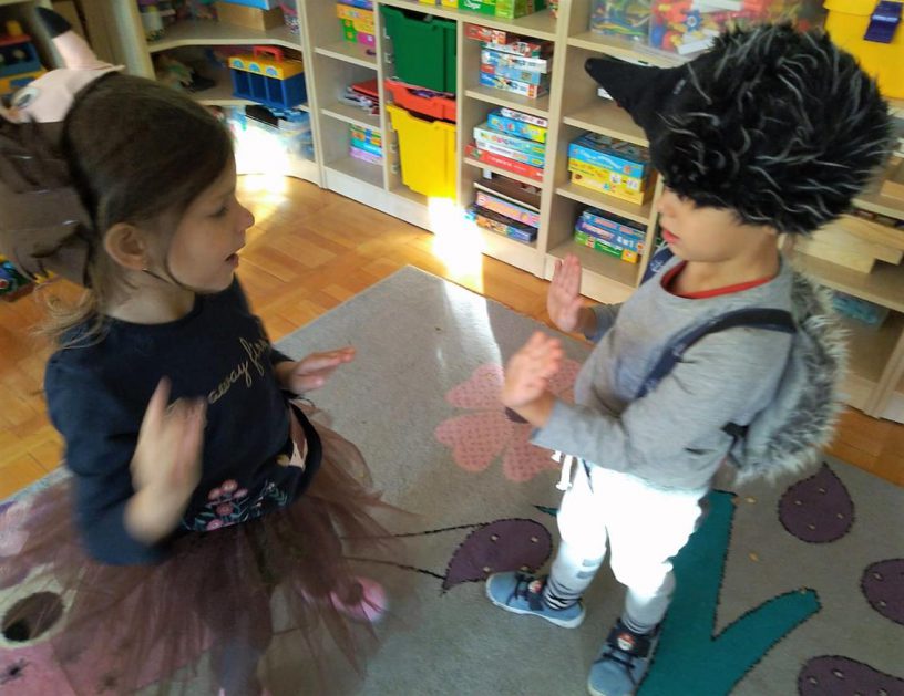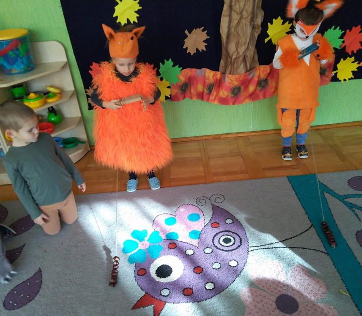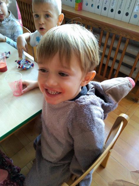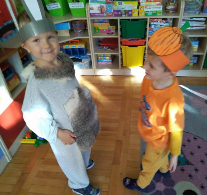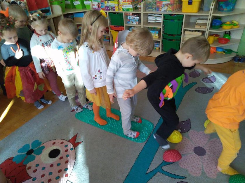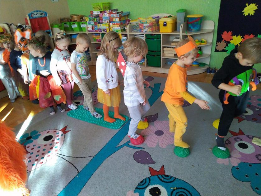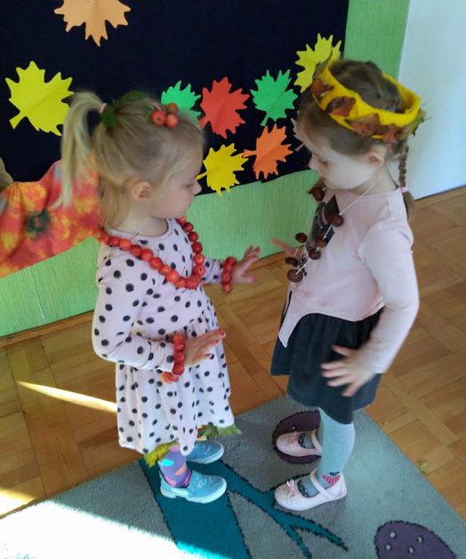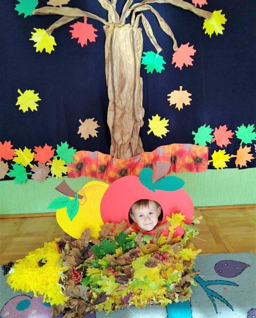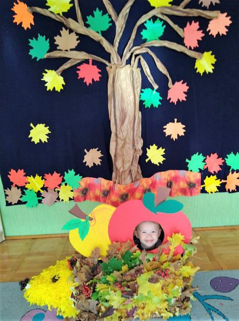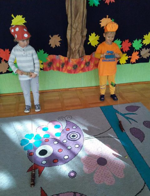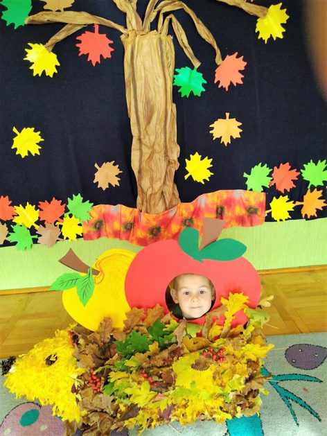 Wszystko za sprawą balu pod czujnym okiem Pani Jesieni, który odbył się w naszym przedszkolu 21 i 22 października. W tym roku Pani Jesień wraz z Krasnalem Hałabałą zawitała do każdej sali. Na bal przybyły również muchomorki, jeże, wiewiórki, lisy, zajączki, jesienne listki i jarzębinki. Zabawy było co niemiara. W każdej grupie przedszkolaki uczestniczyły w różnych zabawach i konkursach, robiły soki owocowo – warzywne, witaminki na patyku – szaszłyki. Nie zabrakło również wspólnych pląsów i tańców. A starszaki pięknie recytowały wiersze i śpiewały piosenki dla pani Jesieni na konkursie pod hasłem „Mam talent”. Jak na najstarsze przedszkolaki przystało uczestnicy konkursu spisali się na medal. Wszyscy bawili się doskonale, czego dowodem były przepiękne uśmiechy na twarzach dzieci.