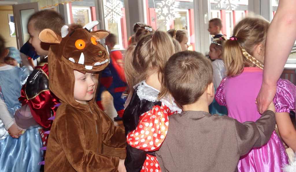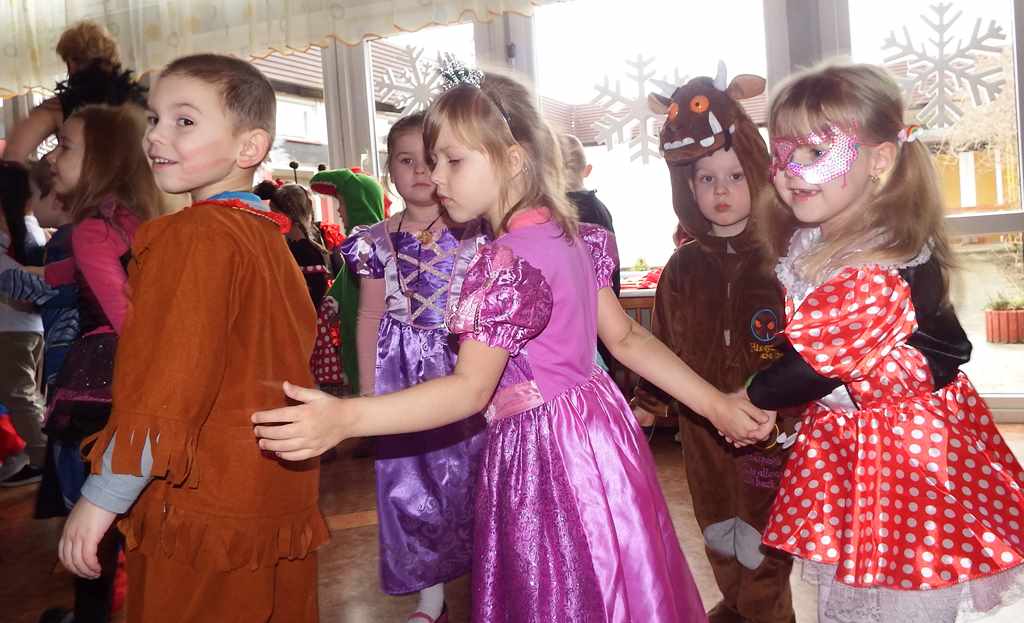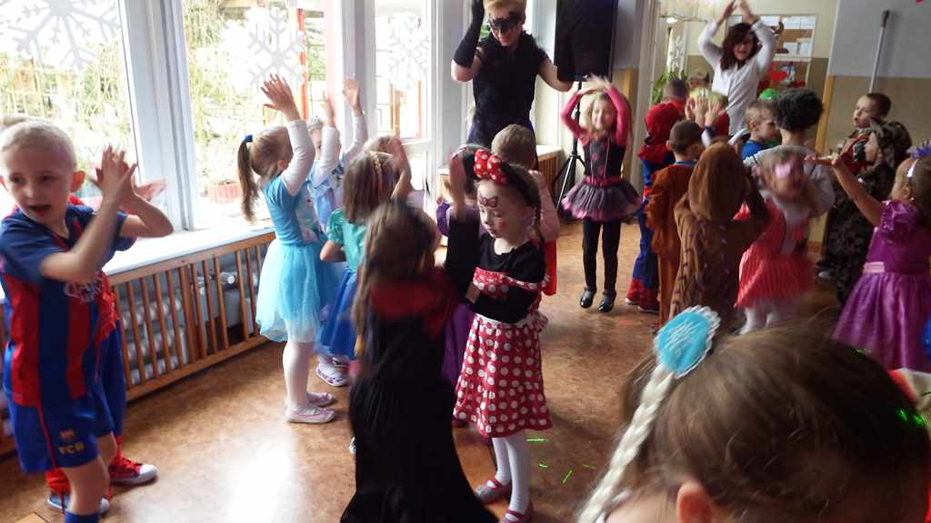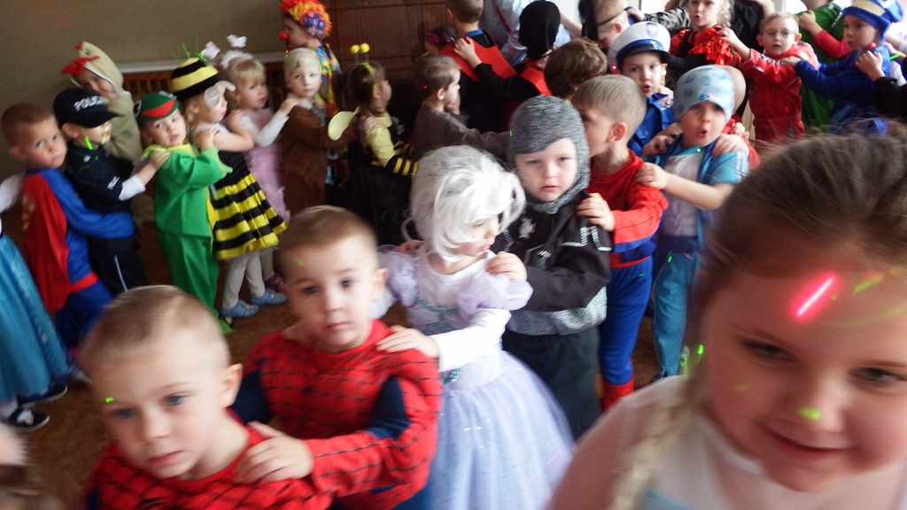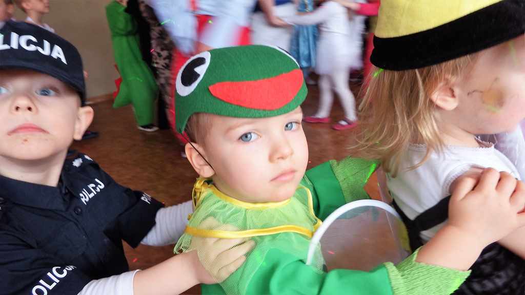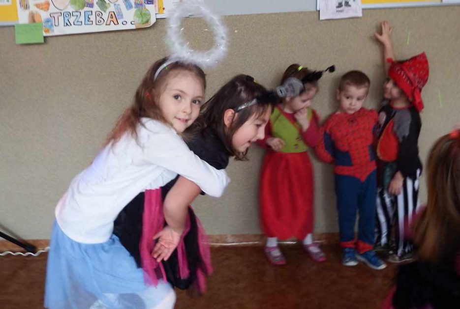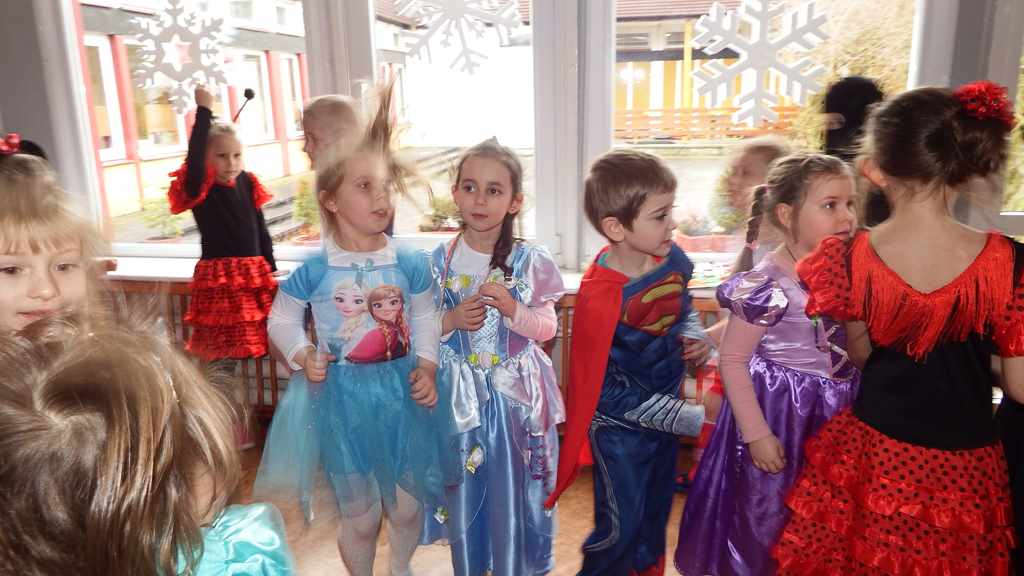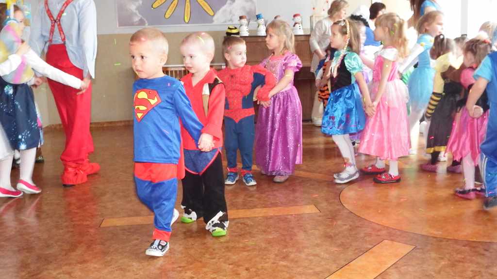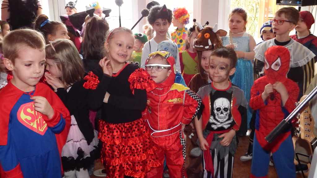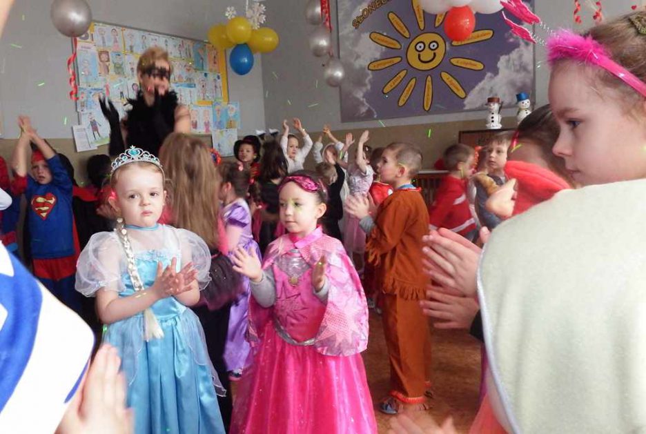 Można zmienić się w królewnę, w królewicza można też, są cyganki, wróżki, żabki, jest i batman, jest i jeż. U nas skoczna muzyka przygrywała dzieciom do tańca 1 lutego. W tym dniu przenieśliśmy się wszyscy do KRAINY BAJEK. Rodzice przygotowali dla swoich pociech ciekawe stroje, w których dzieci czuły się wspaniale. Do domu dzieci wracały w świetnych nastrojach, dzieląc się z rodzicami swoimi przeżyciami.