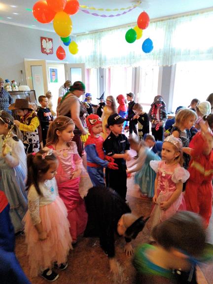 Dnia odbył się bal nad bale jak to bywa w karnawale. Przybyła cała plejada bajkowych gwiazd: księżniczki, rycerze, wróżki, piraci, myszka Miki, Spider – Man, że nie sposób wszystkich wyliczyć. Przy gorących rytmach porywającej muzyki bawiliśmy się aż do …….