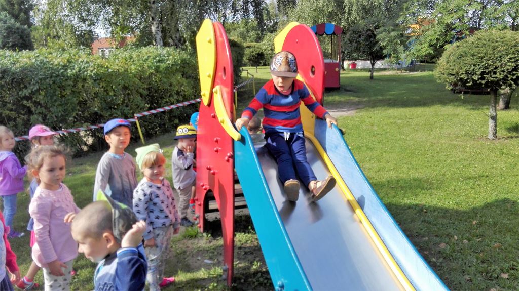 Wrzesień to miesiąc nie tylko powrotów wakacjach ale również przypominania sobie zasad obowiązujących w przedszkolu. Bezpieczeństwo dzieci przebywających w przedszkolu jest bardzo ważne, ponieważ bezpieczne dziecko to dziecko szczęśliwe ,wesołe i ufne. Rola nauczyciela w realizacji tych przedsięwzięć to nie podanie gotowych schematów zachowań, ale uczenie dzieci przewidywania i kreatywności w rozwiązywaniu problemów. Dlatego dzieci z grupy 4-latków (P. Justynki) po wprowadzeniu Kodeksu Grupowego przypomniały sobie jak bezpiecznie korzystać ze sprzętu terenowego znajdującego się na przedszkolnym placu zabaw.