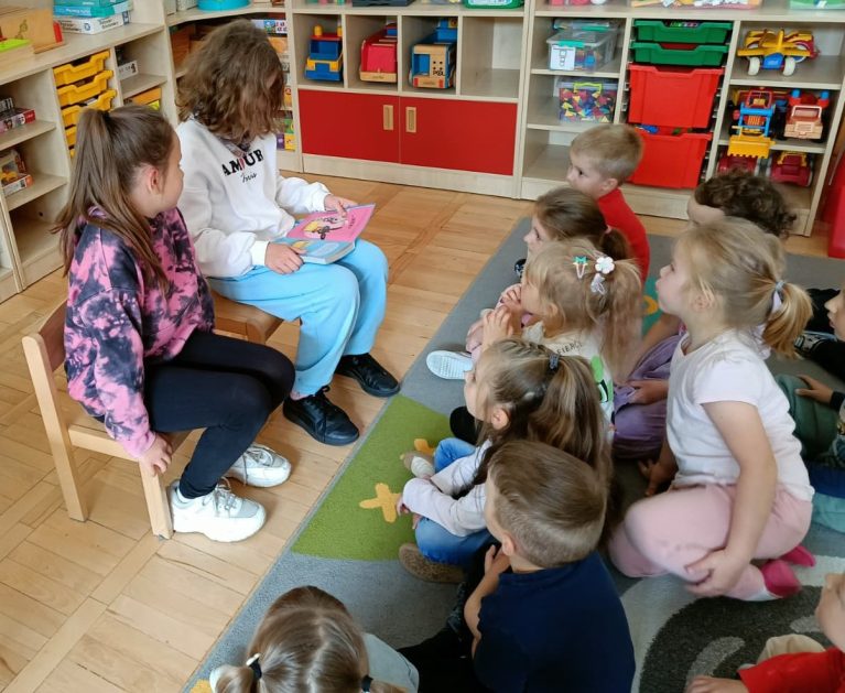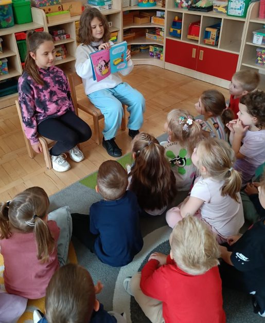 Od 2001 trwa kampania społeczna „Cała Polska czyta dzieciom” , która wytrwale promuje codzienne czytanie dzieciom przez nauczycieli, rodziców, bliskich, zaprzyjaźnione osoby, osoby znane, popularne. W grupie 5 latków czytelnictwo promują nie tylko rodzice, ale także nasi wychowankowie, którzy dawno opuścili przedszkolne mury, ale z sentymentem wracają do miejsc i wspomnień z dzieciństwa…