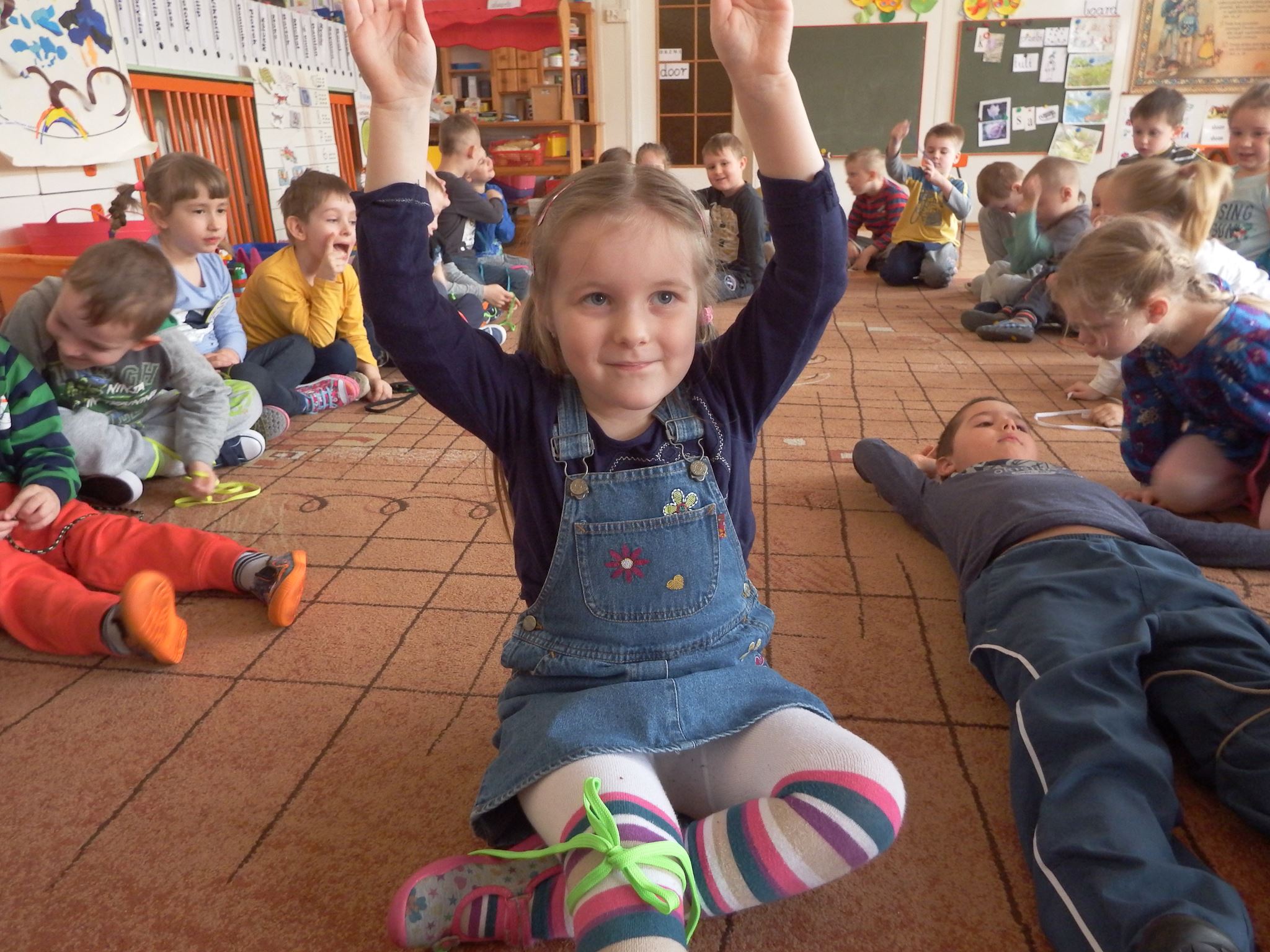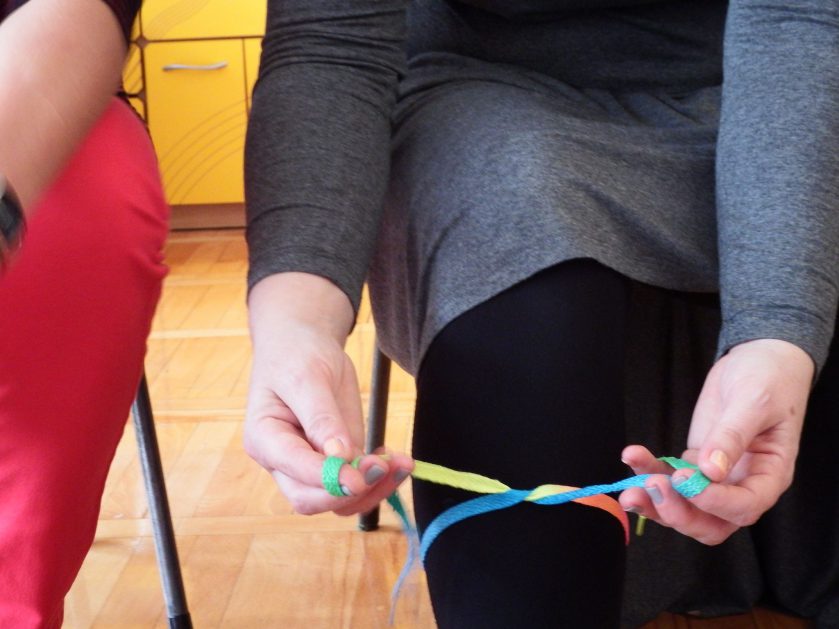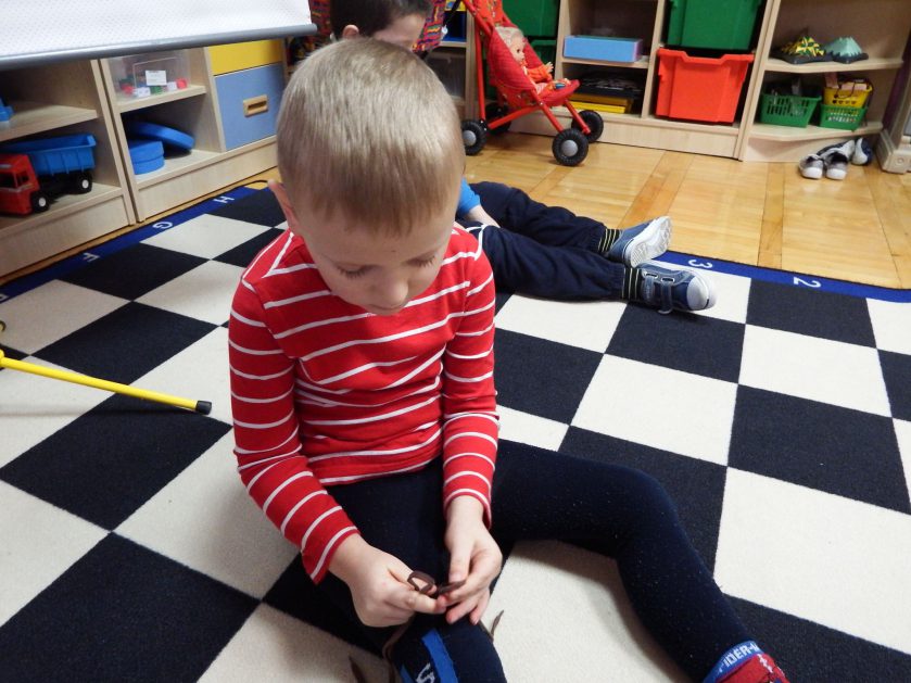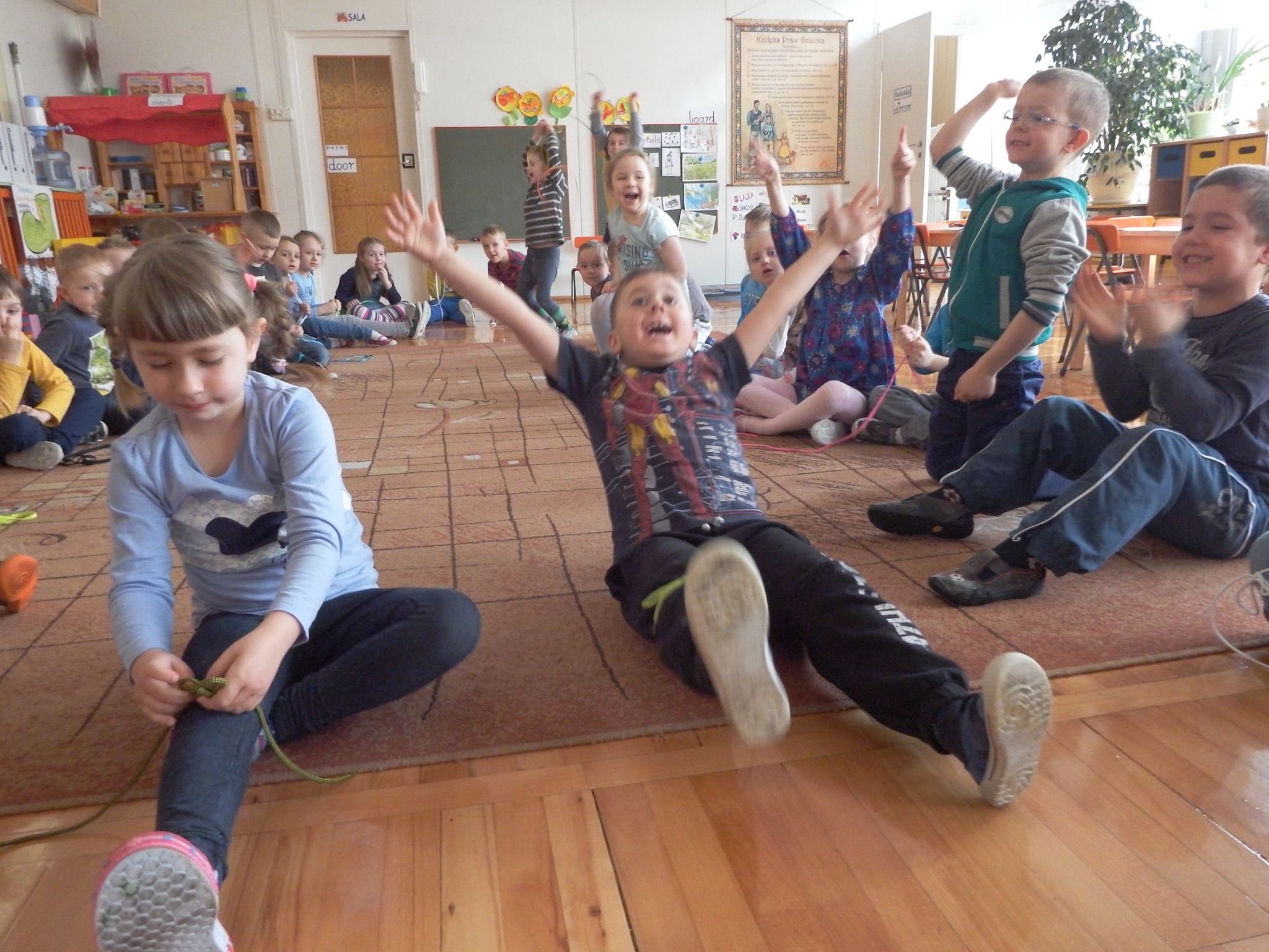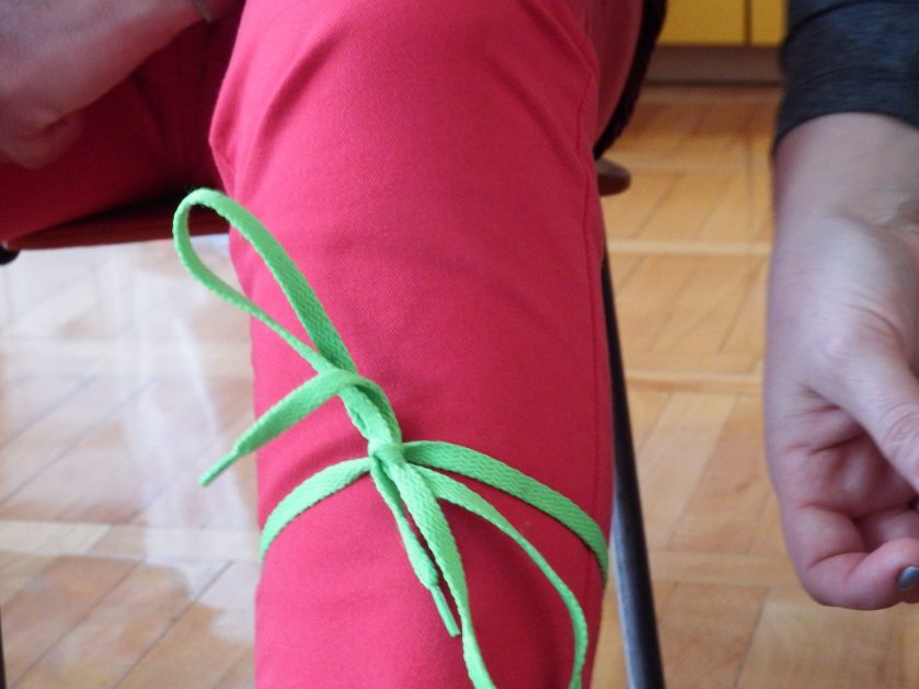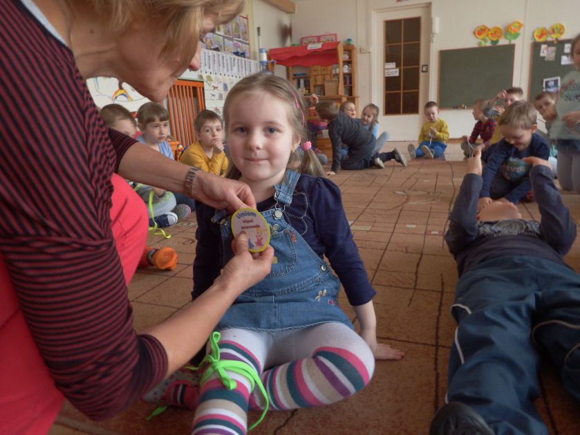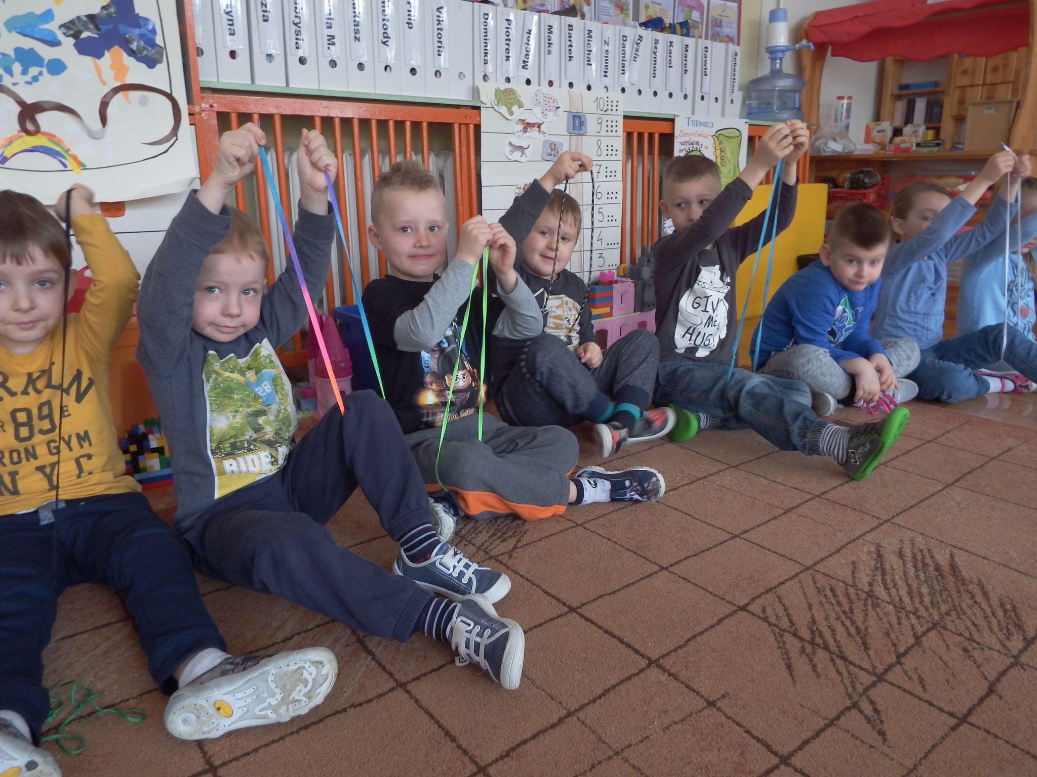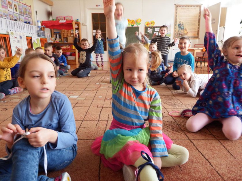 Chociaż każdy z nas jest mały, ale chce być doskonały. Trudna sztuka wiązania nie jest łatwa dla każdego 5 latka, w wolnych chwilach się staramy i ćwiczymy sznurowanie ….Aż dnia pewnego doszło do spotkania wielkiego, dwie grupy się spotkały i ze sobą rywalizowały, kto sprytniejszy, kto zwinniejszy…. Turniej „Sznurówka” zakończył się w miłej atmosferze, teraz dzieci wiedzą ,że trening czyni mistrza!