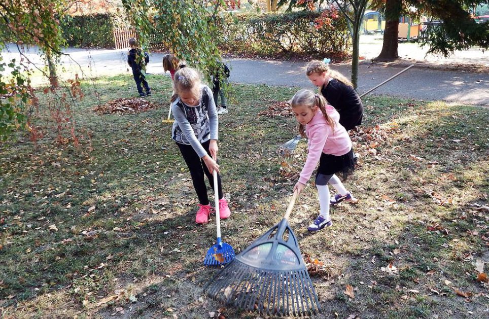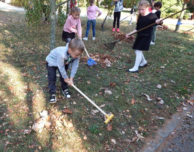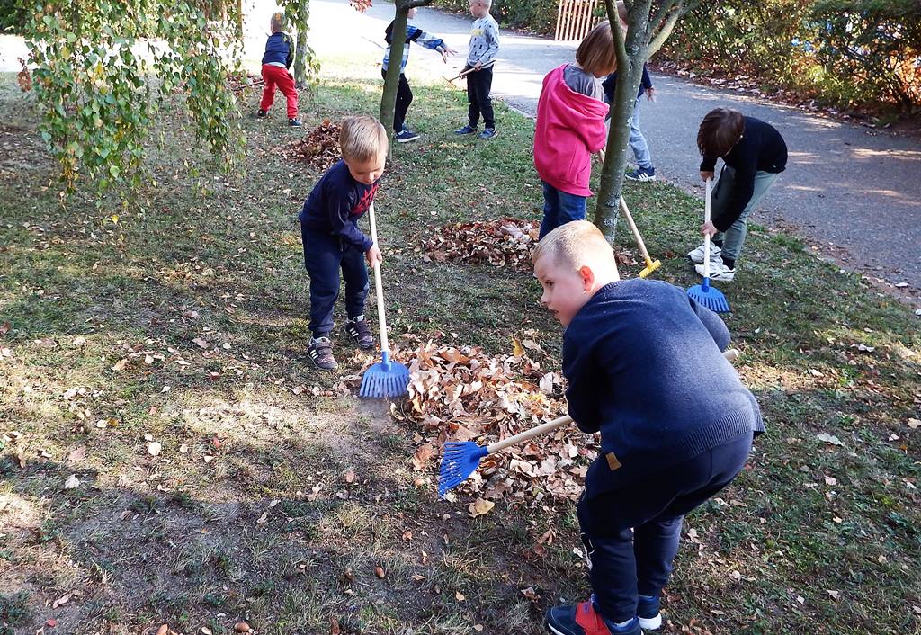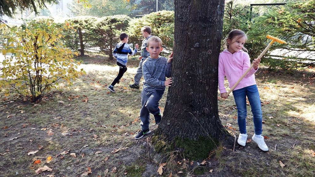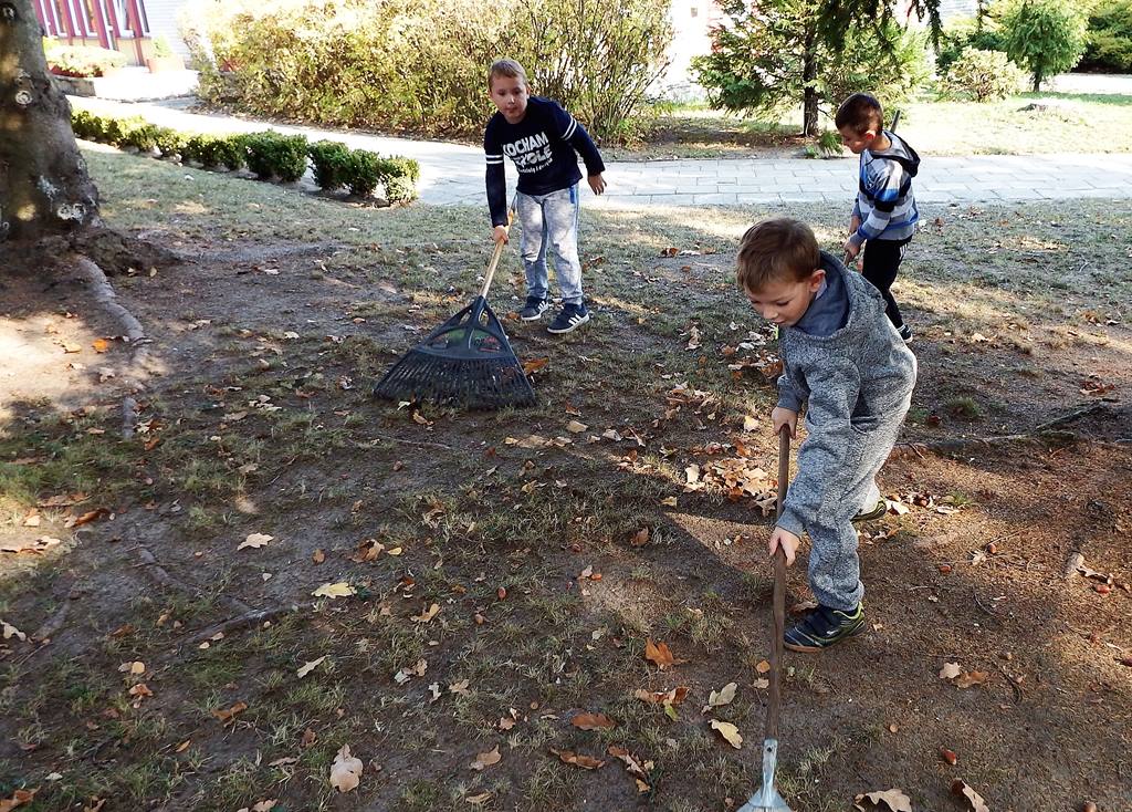 W czasie pięknej jesiennej pogody, która w tym roku wyjątkowo nas rozpieszczała dzieci wcale się nie nudzą. Mają okazję obserwować piękną przyrodę naszego miasta spacerując po parku, utrwalając przy okazji swoje wiadomości – nazwę naszego jeziora Trzesiecko i rzeki Niezdobnej. A nasz ogród także mieni się kolorami jesieni – dlatego 5 – 6 latki lubią spędzać czas na świeżym powietrzu i zawsze są chętne do zabawy i pracy.