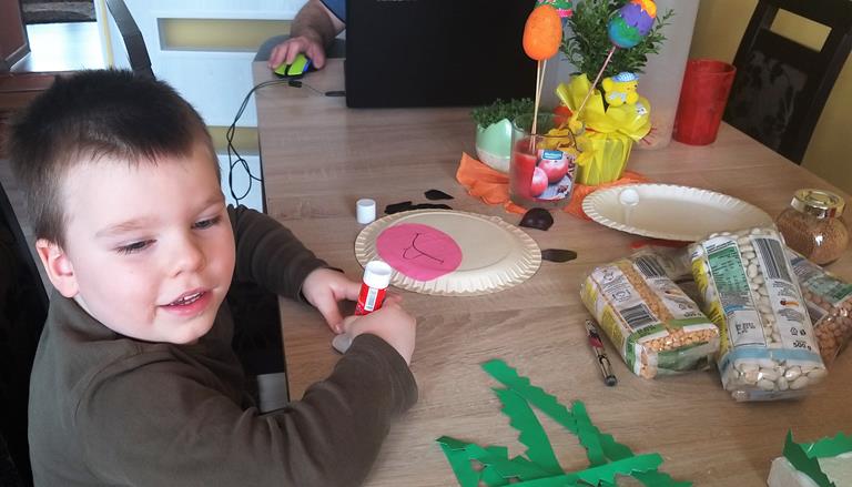 Trwa epidemia koronawirusa. Czas kwarantanny utrudnia normalne funkcjonowanie. Wszyscy uczymy się i próbujemy znaleźć w tej nowej sytuacji. W naszym przedszkolu jak i w innych licznych placówkach prowadzona jest praca zdalna. Dzieci razem z rodzicami pracują w różny sposób, korzystają z propozycji nauczycieli i wspólnie organizują swoim pociechom czas a tym samym realizują zagadnienia z podstawy programowej.