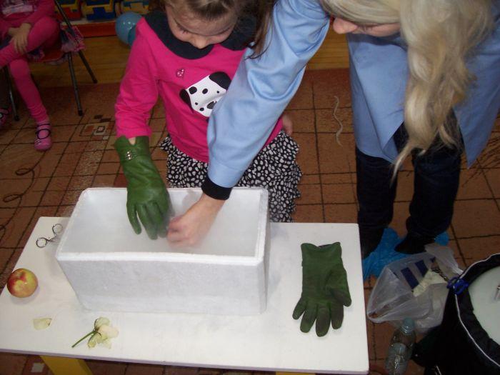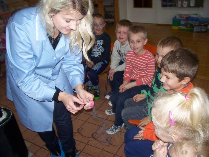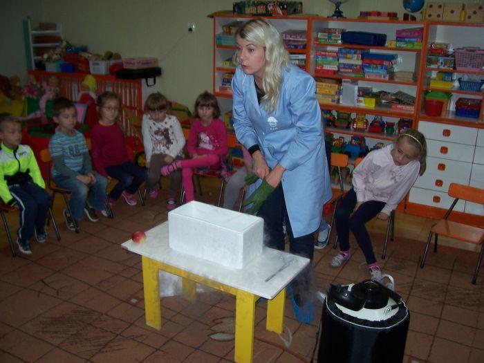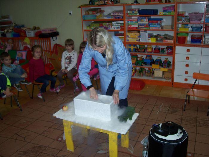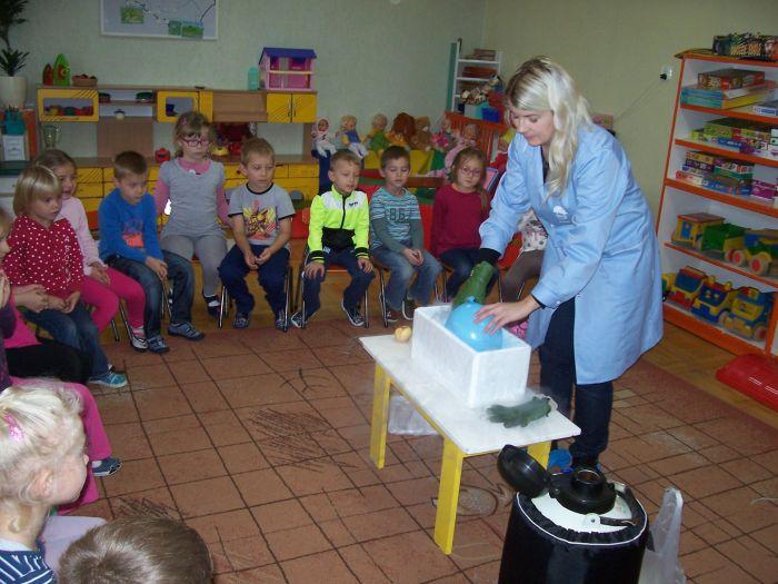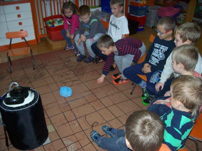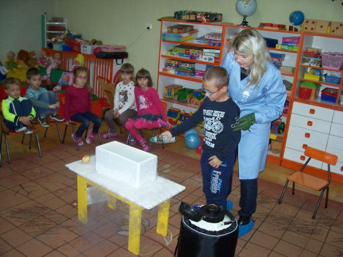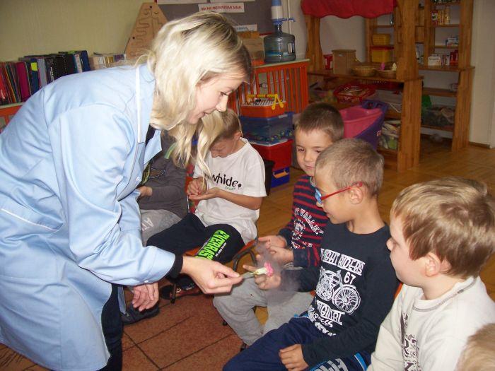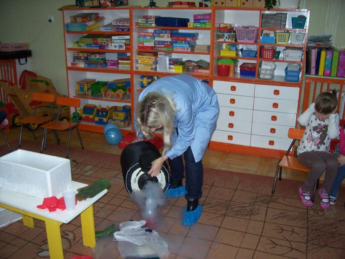 Po raz kolejny 6 latki spotkały się z mamą Kacpra, która na co dzień pracuje w laboratorium. Zaprezentowała ciekawe doświadczenia z azotem. Dzieci mogły dużo obserwować jak również wyciągać wnioski. Zachowując zasady bezpieczeństwa uczestniczyły w przeprowadzanych eksperymentach.