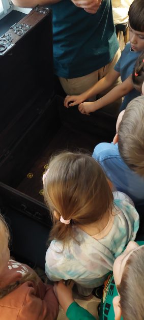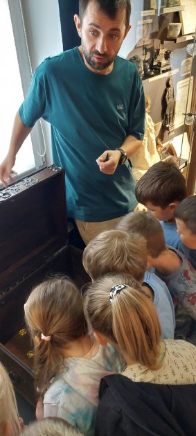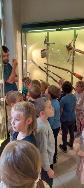 Co to jest muzeum? 2 października 6 latki uzyskały na to pytanie odpowiedź podczas spotkania z Panem Mateuszem w Szczecineckim Muzeum. Przedszkolaki dowiedziały się co to jest muzeum oraz w jakim celu chroni się zabytki i gromadzi eksponaty muzealne. W ciekawy sposób przybliżyły sobie historię naszego regionu. Zwiedziły różne sale muzealne. Pobyt w Muzeum był okazją do bezpośredniego obcowania ze sztuką muzealną. Przeżycia i emocje, które towarzyszyły dzieciom podczas pierwszego spotkania na pewno zaowocują ciekawością, wpłyną na trwałość zdobywanej wiedzy i realizację edukacji regionalnej.
