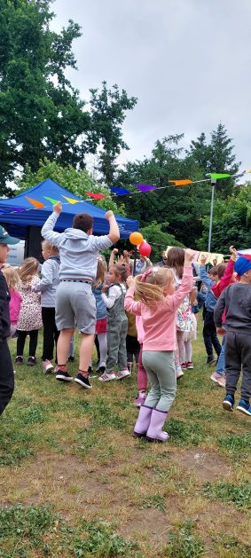 23 maja dzień pełen wrażeń. W naszym przedszkolu na festynie obchodziliśmy ŚWIĘTO RODZINY. Była to okazja do spotkania się oraz wspólnego świętowania Dnia Mamy i Taty. Mama i Tata najpiękniejsze słowa świata! Z nimi związane są nasze najpiękniejsze wspomnienia z dzieciństwa- nasze pierwsze radości, zabawy, marzenia, tęsknoty. Każdy z nas chowa w sercu wdzięczność za to, że dali nam najpiękniejszy dar- życie. Każda grupa przygotowała występ dla swoich rodziców. Po części artystycznej przyszła pora na przygotowane dla dzieci atrakcje. Na placu przedszkolnym czekał DJ Przemo, który rozruszał dzieci i rodziców przy dźwiękach muzyki. Później na sygnale przyjechała Ochotnicza Straż Pożarna z Wierzchowa i Moto Ekipa na wspaniałych motorach. Dzieci mogły obejrzeć pojazdy, ich wyposażenie, przymierzyć kaski strażackie, wsiąść na motor a bardziej odważni mogli się również przejechać motorem po terenie przedszkola. Dużą popularnością cieszyła się „kawiarenka pod chmurką” z pysznymi ciastami, przekąskami, chlebkiem ze smalczykiem i ogórkiem. Ten dzień był okazją do zabawy, sprzyjał zacieśnieniu więzów rodzinnych, a także zachęcał do aktywnego wypoczynku. Wszyscy bawili się znakomicie.
