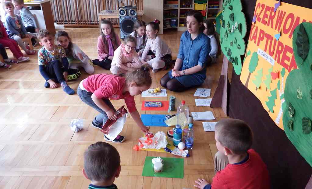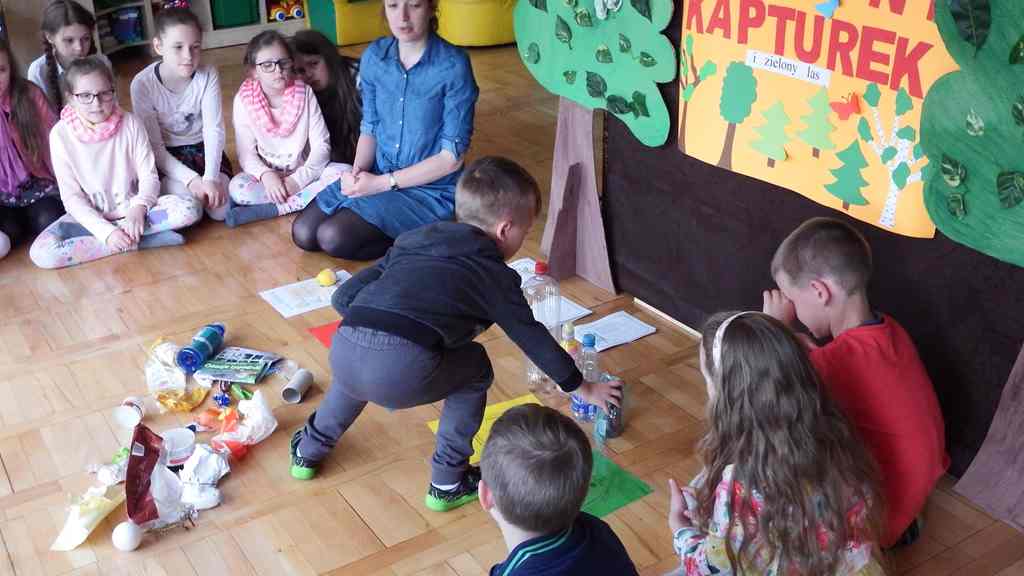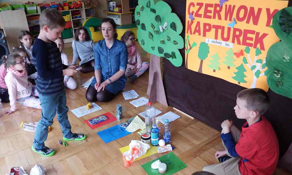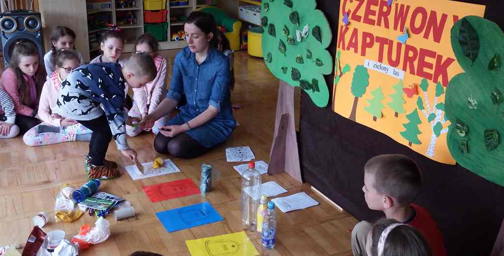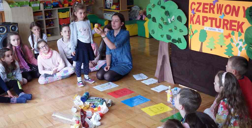 Kontynuujemy współpracę ze Szkołą Podstawową nr 6. Uczniowie z klasy II odwiedzili nasze przedszkole i zaprezentowali dzieciom 4 i 5 letnim bajkę „Czerwony Kapturek inaczej”. Uczniowie samodzielnie przygotowali rekwizyty, pacynki. Treść bajki jest doskonale znana dzieciom, ale tym razem dotyczyła ekologii i rozumienia konieczności poszanowania i dbania o przyrodę.