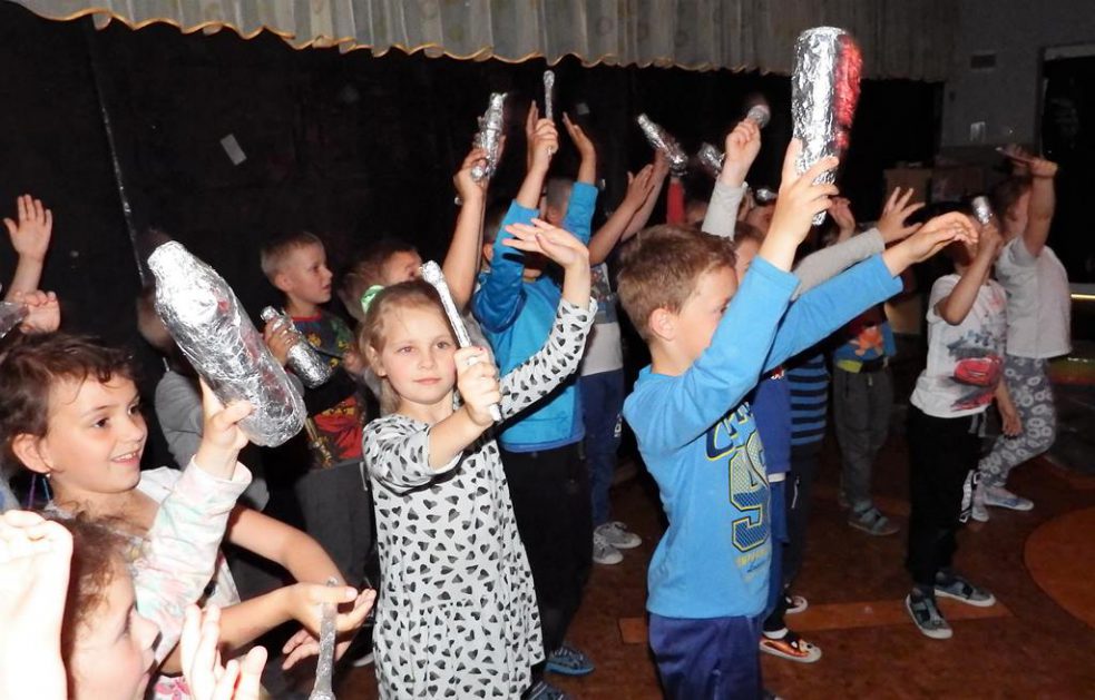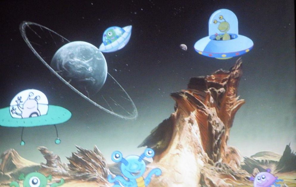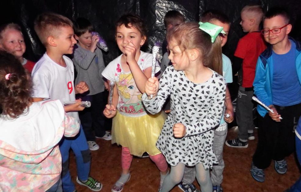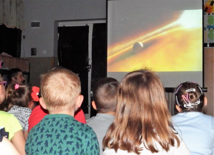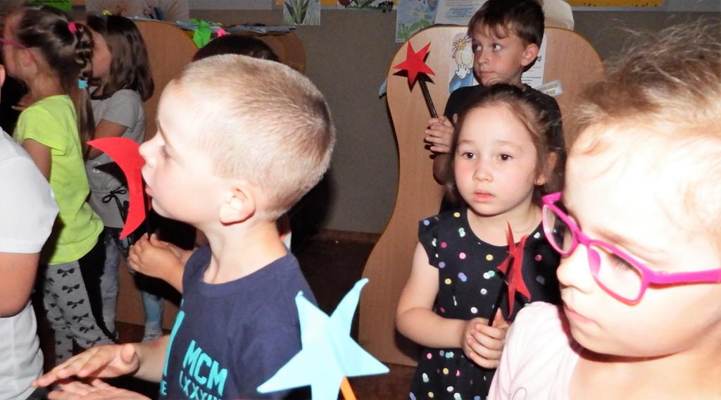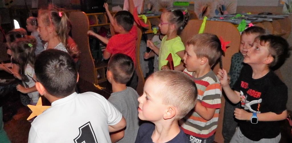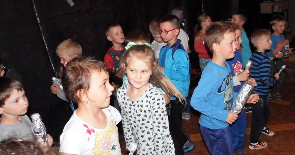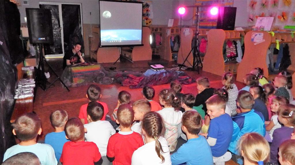 Dnia 06.06.2017 dzieci oglądały przedstawienie interaktywne na temat kosmosu. Poprzez ciekawy przekaz, który oddziaływał na wyobraźnię poprzez dźwięk i obraz, dzieci wzbogacały swoją wiedzę i zainteresowania tematyką kosmosu, układu słonecznego, gwiazd, galaktyk. Bawiły się rysując i tańcząc w tajemniczych ciemnościach wszechświata.