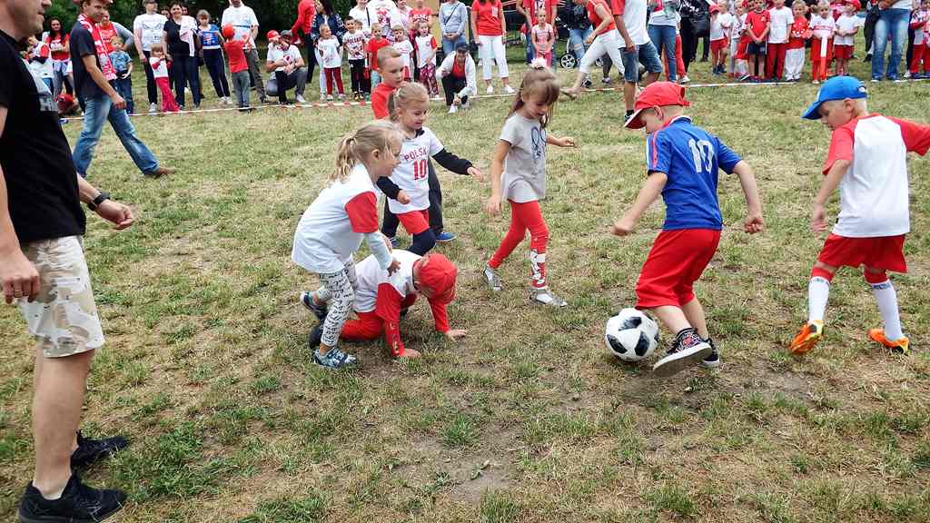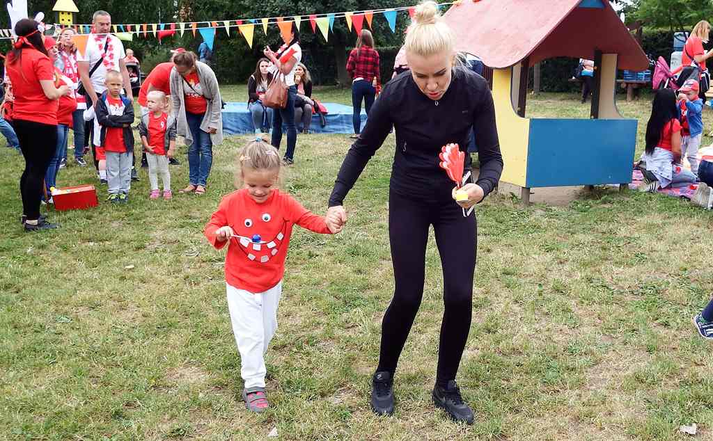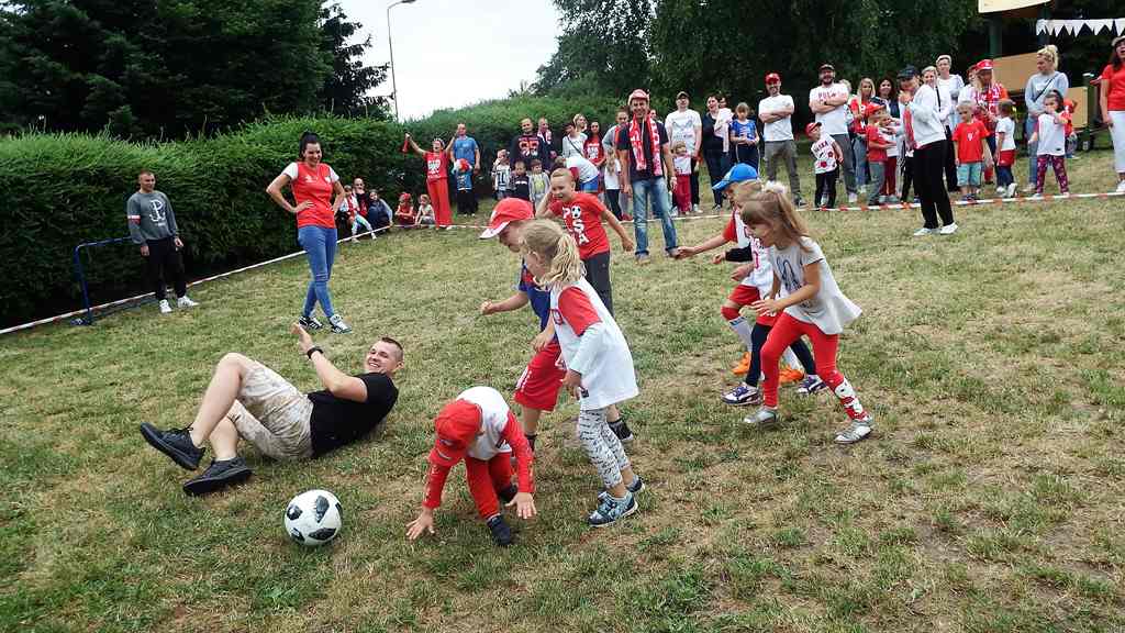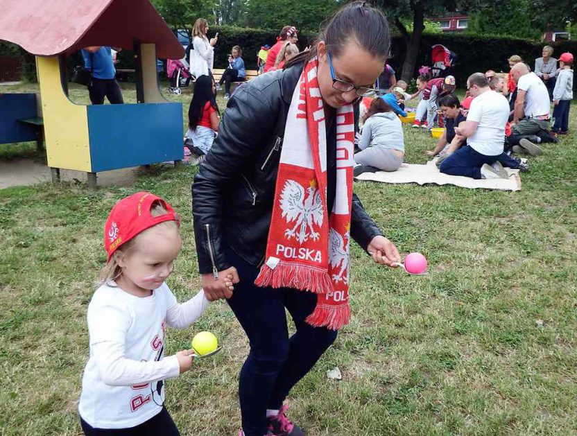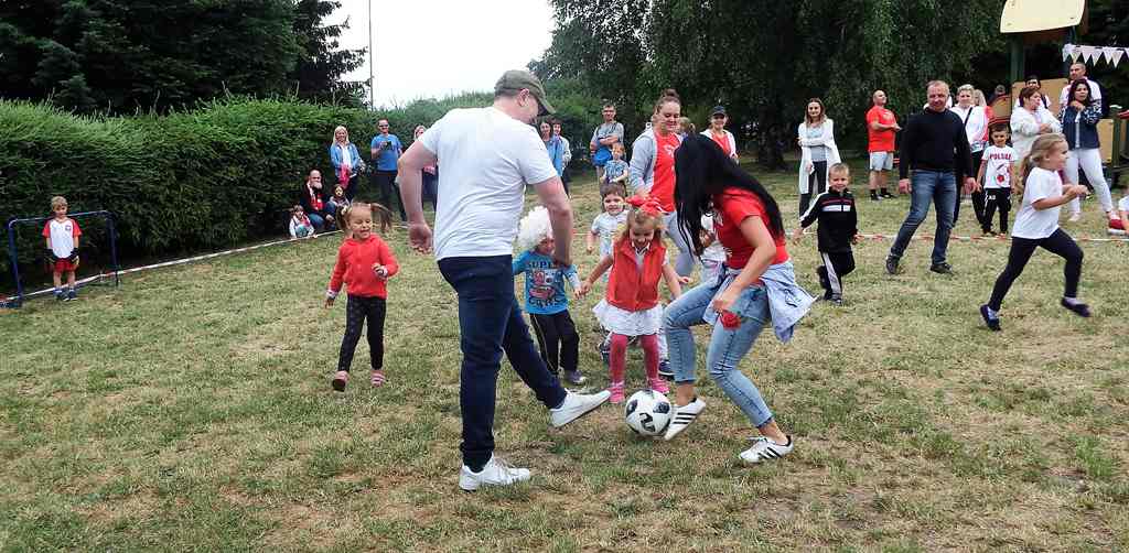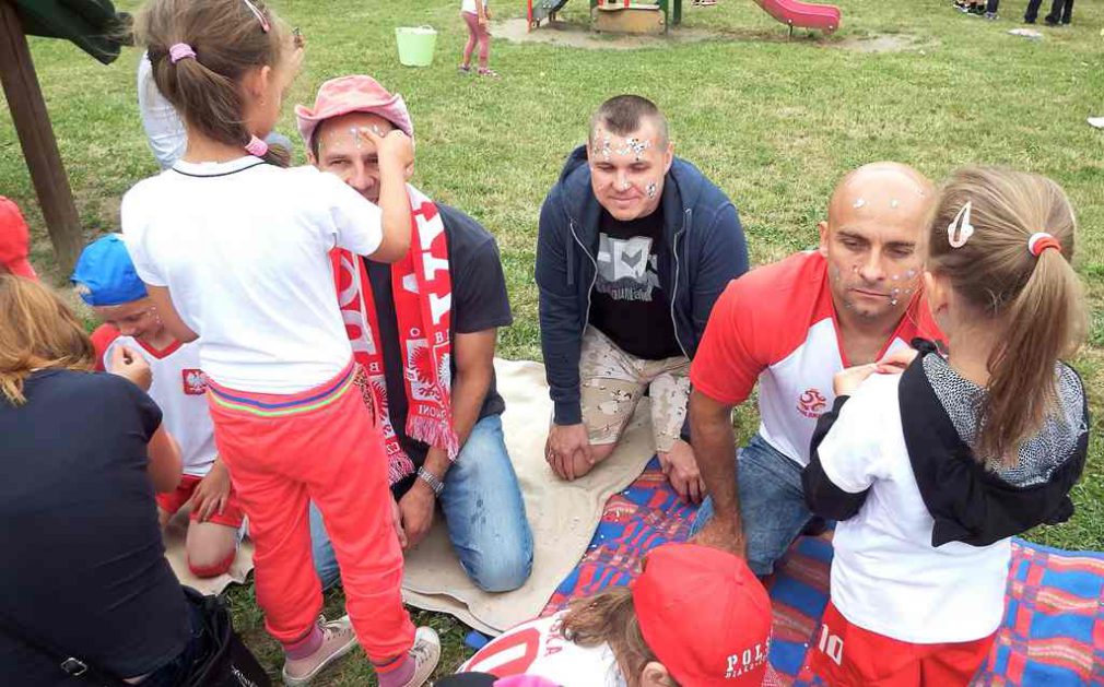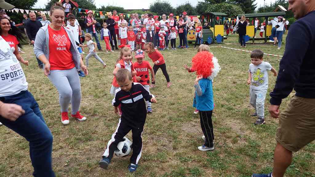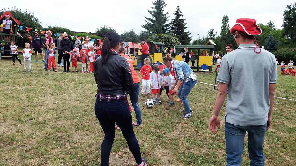 W czerwcu odbył się w naszym przedszkolu Piknik Rodzinny. Tym razem w ogrodzie powstała „Mała Strefa Kibica”. Zaroiło się od biało – czerwonych barw narodowych. Rodzice wraz z dziećmi rywalizowali w różnych konkurencjach. Było dużo radości, śmiechu i dobrej zabawy. Na zakończenie każda grupa rozegrała mecze piłkarskie „Rodzice kontra dzieci”, którym towarzyszyły odgłosy wuwuzeli.