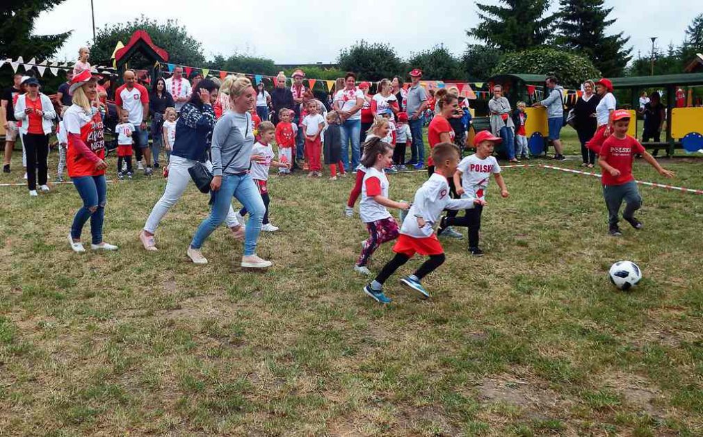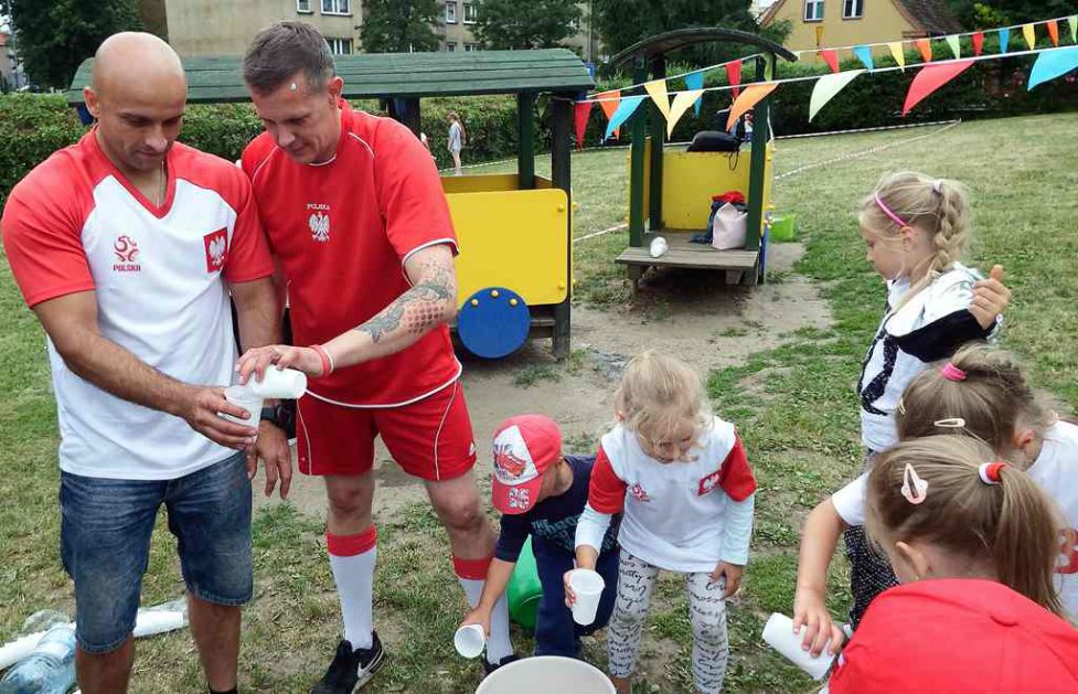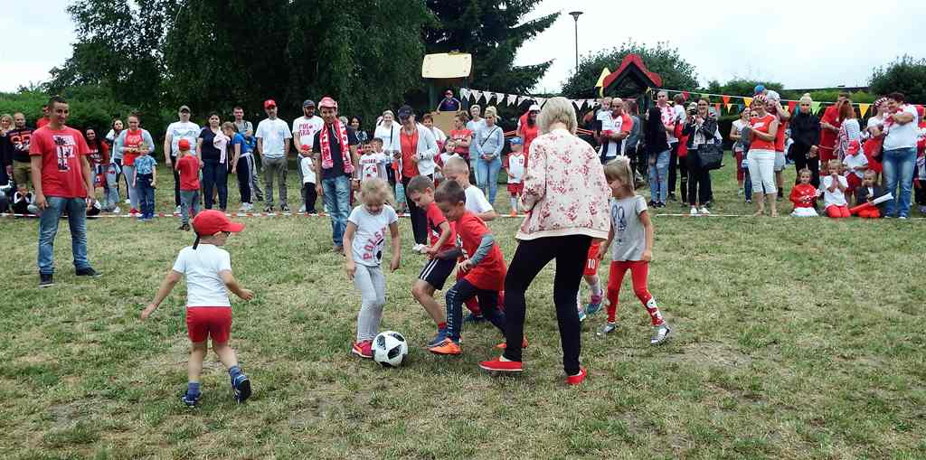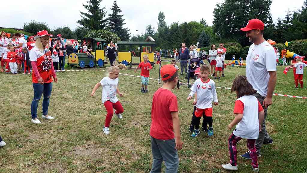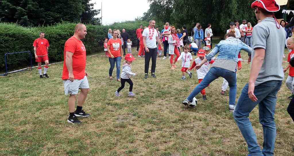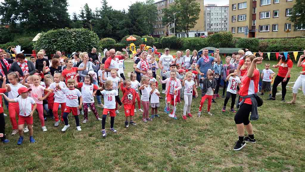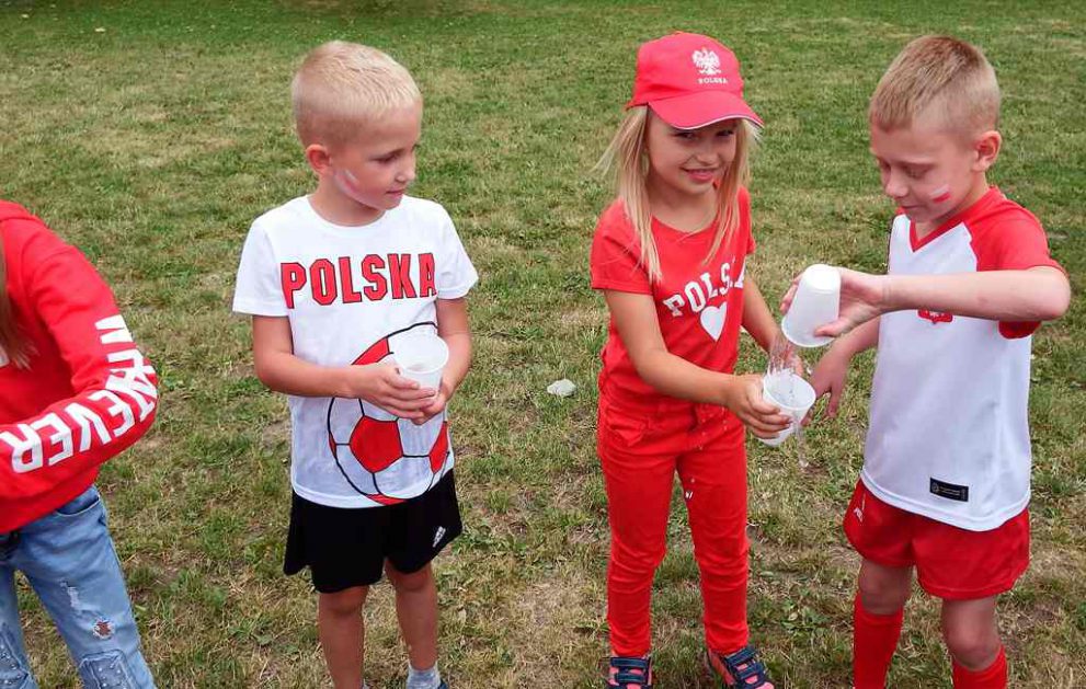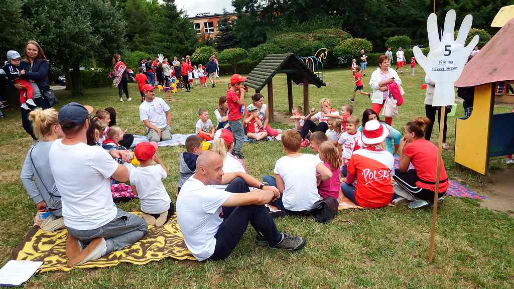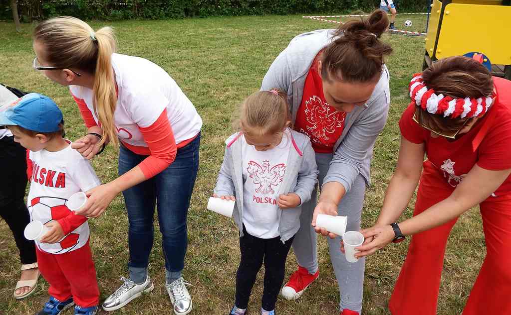 W czerwcu odbył się w naszym przedszkolu Piknik Rodzinny. Tym razem w ogrodzie powstała „Mała Strefa Kibica”. Zaroiło się od biało – czerwonych barw narodowych. Rodzice wraz z dziećmi rywalizowali w różnych konkurencjach. Było dużo radości, śmiechu i dobrej zabawy. Na zakończenie każda grupa rozegrała mecze piłkarskie „Rodzice kontra dzieci”, którym towarzyszyły odgłosy wuwuzeli.