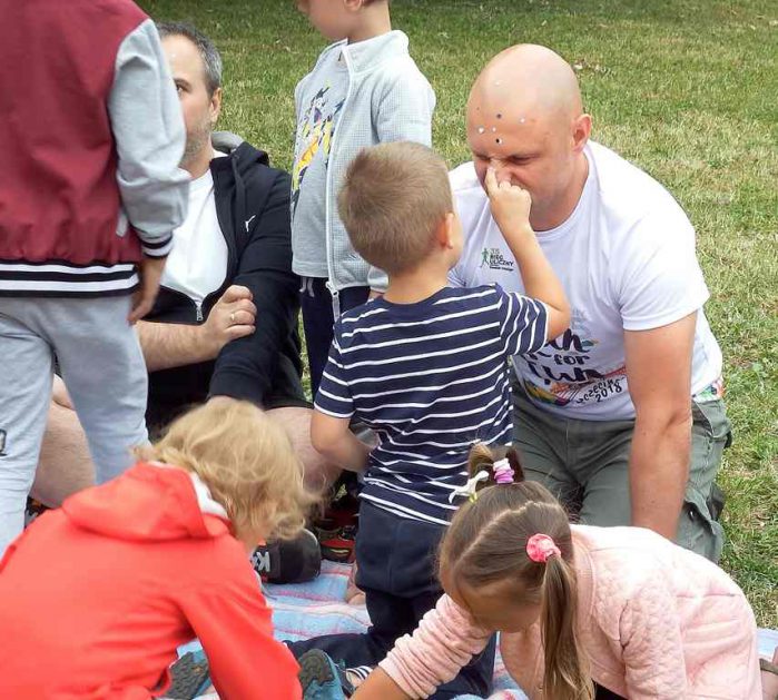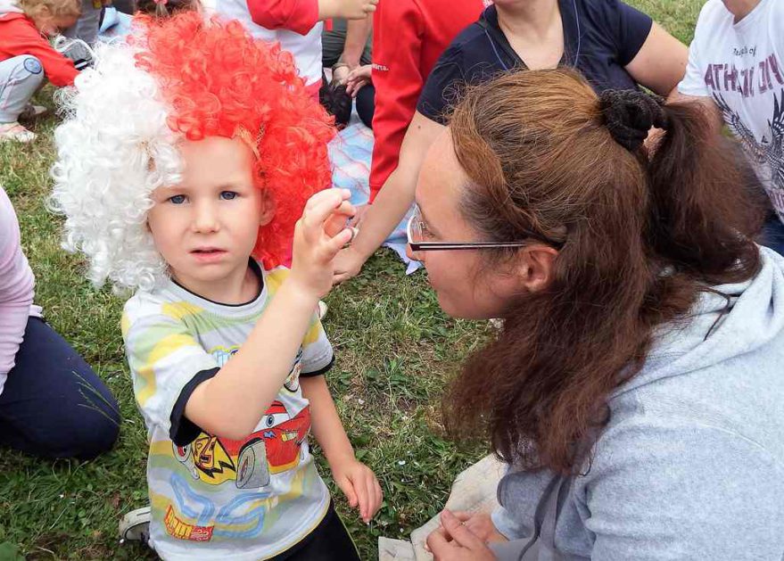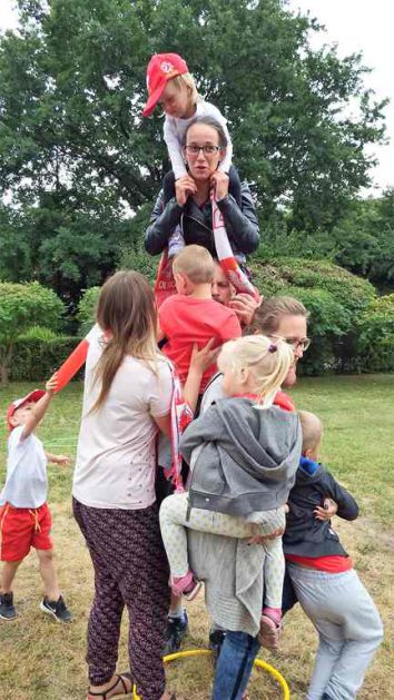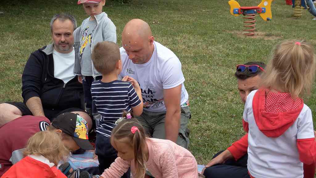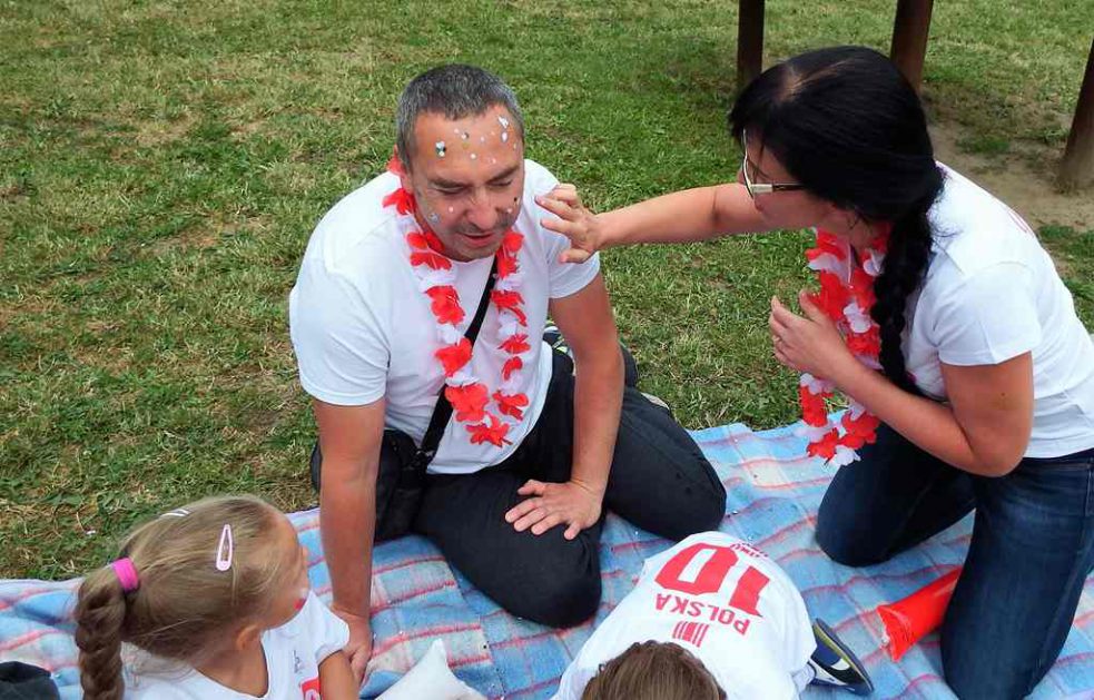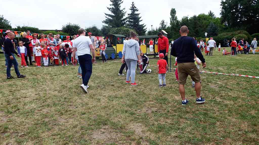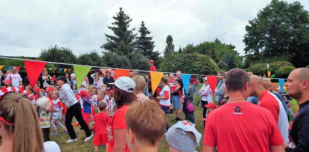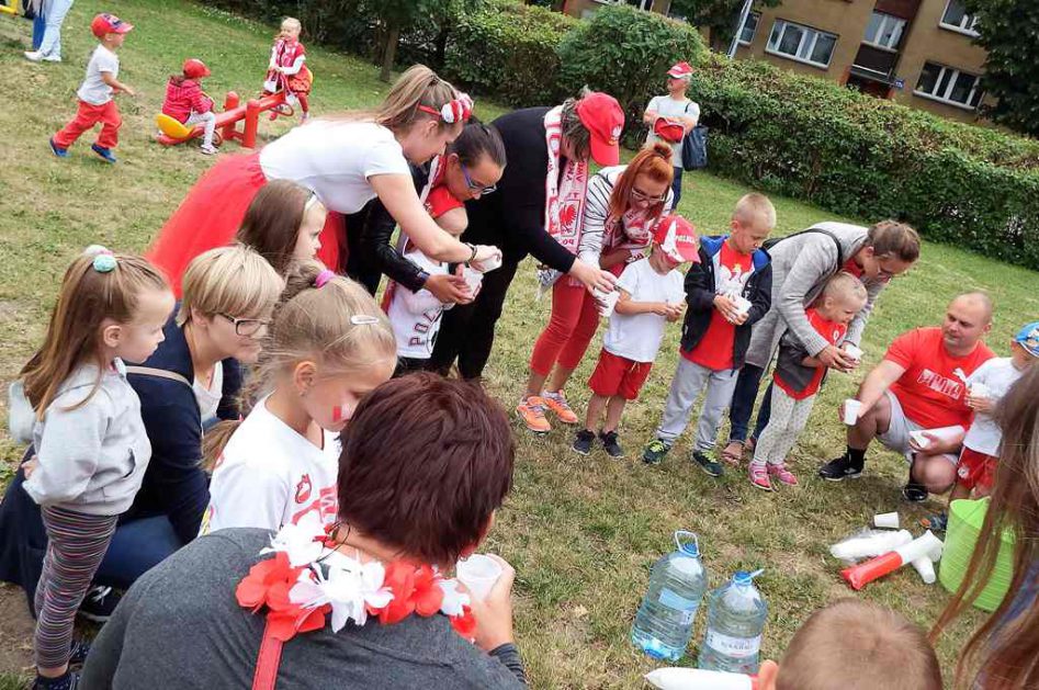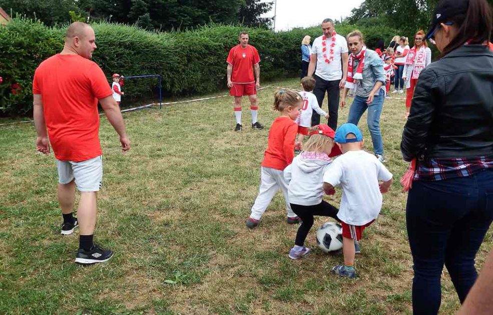 W czerwcu odbył się w naszym przedszkolu Piknik Rodzinny. Tym razem w ogrodzie powstała „Mała Strefa Kibica”. Zaroiło się od biało – czerwonych barw narodowych. Rodzice wraz z dziećmi rywalizowali w różnych konkurencjach. Było dużo radości, śmiechu i dobrej zabawy. Na zakończenie każda grupa rozegrała mecze piłkarskie „Rodzice kontra dzieci”, którym towarzyszyły odgłosy wuwuzeli.