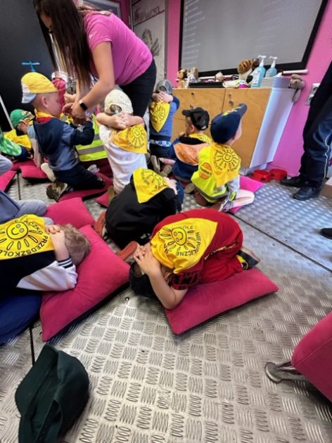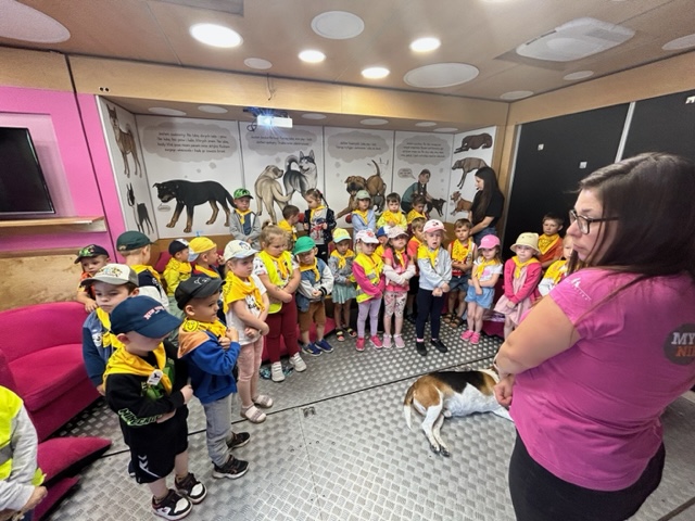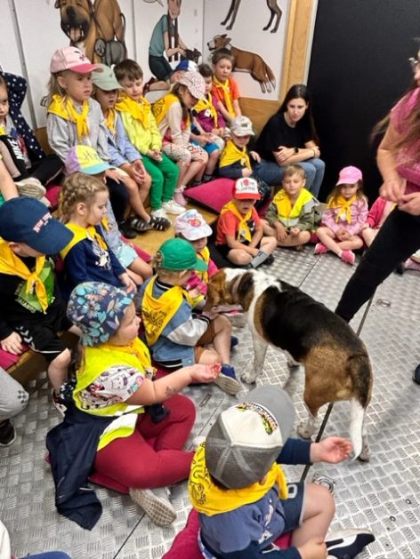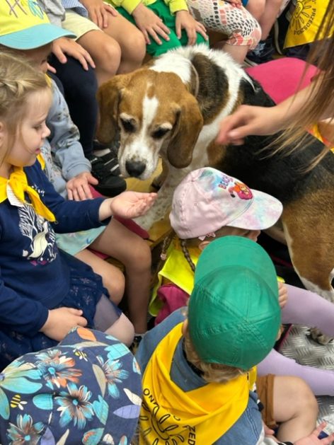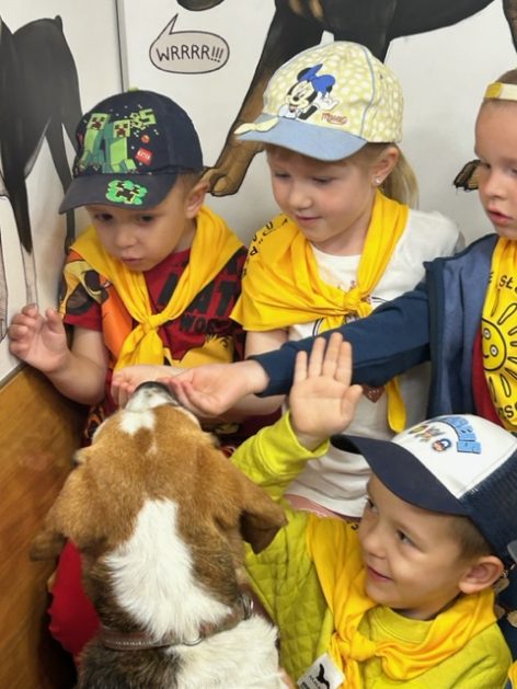 „My nie gryziemy” 4 latki również wzięły udział w Ogólnopolskiej Akcji Edukacyjnej, aby dowiedzieć się, że oprócz miłości do zwierząt liczą się także zasady bezpieczeństwa w obcowaniu ze zwierzętami, które tak bardzo lubimy, kochamy. Każdy mały przedszkolak poznał jak rozpoznawać niektóre sygnały wysyłane przez psa i jak się odpowiednio do nich ustosunkować. Na spotkaniu krok po kroku dzieci mogły poznać jak powinny zareagować w momencie, kiedy spotkałyby obcego psa na swojej drodze. Zajęcia wzbogacone były również o wiadomości na temat odpowiedzialnej opieki nad zwierzęciem, prawidłowym żywieniu i zaspokajaniu wszystkich potrzeb.