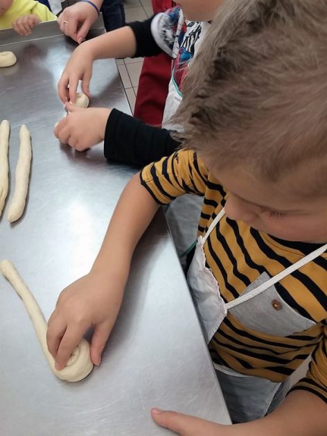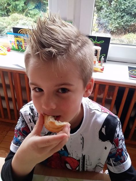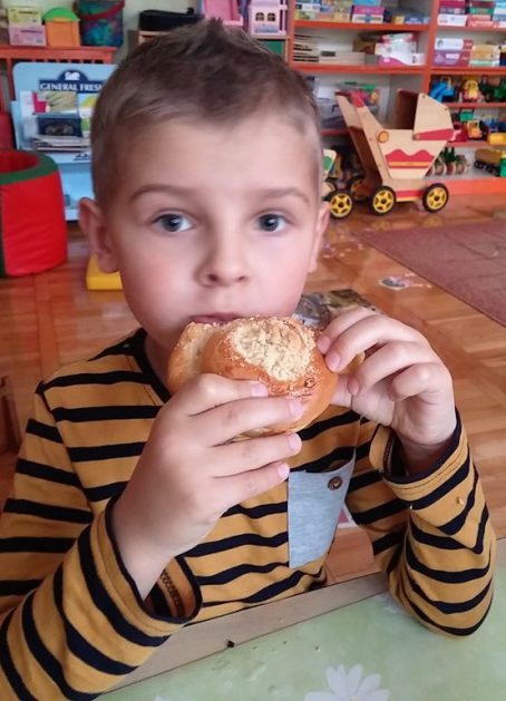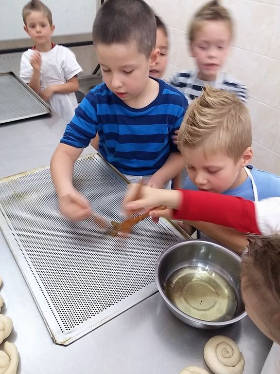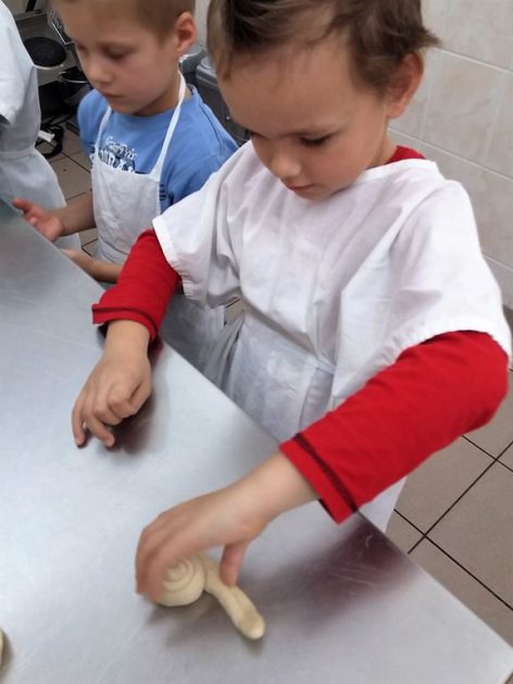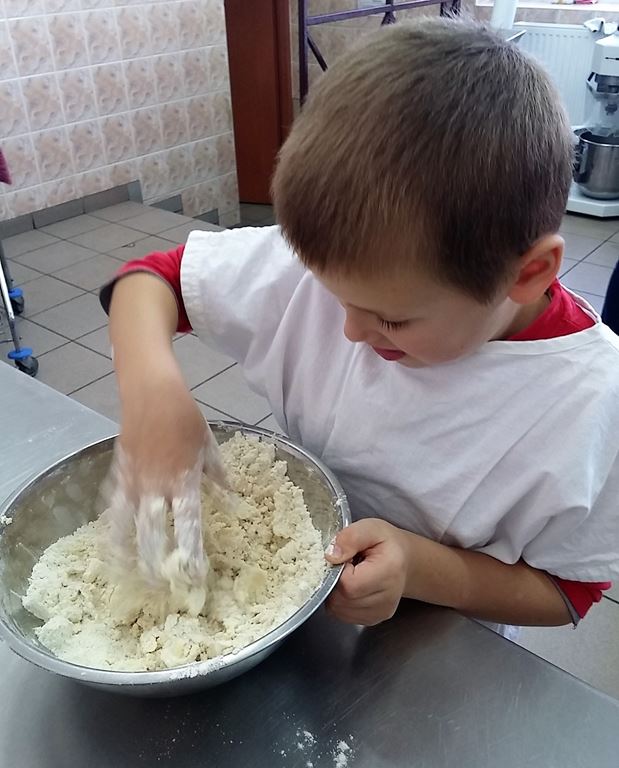 6 latki P. Asi na zajęciach rozwijają swoje praktyczne umiejętności kulinarne, które mogą być przydatne w dorosłym życiu. Zajęcia takie to fascynująca podróż do świata smaków, zapachów i kolorów. Dzięki zabawie w gotowanie w prosty i przyjemny sposób można wspierać dzieci w poznawaniu zmysłowym i rozumieniu przez nie otaczającego go świata oraz wdrażać do pomocy w codziennych, prostych czynnościach, uczyć odpowiedzialności, pozwalają zrozumieć, że własnoręcznie przygotowane posiłki smakują lepiej i znikają w oka mgnieniu!