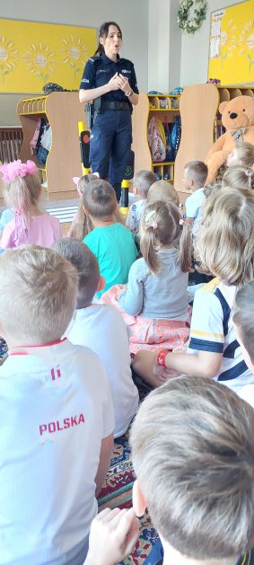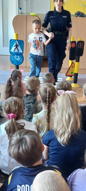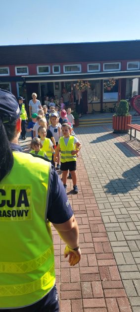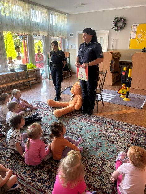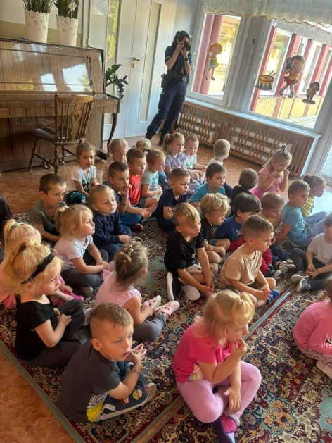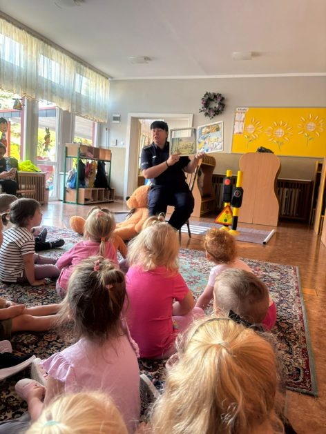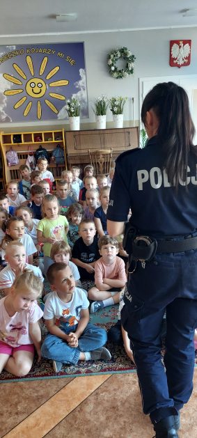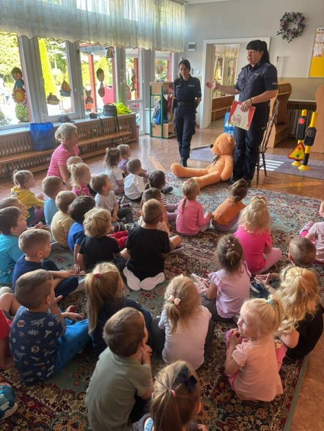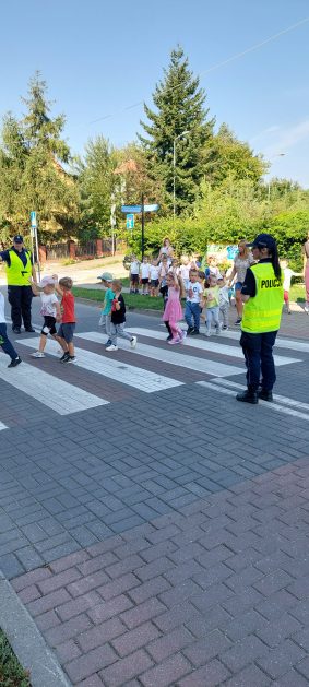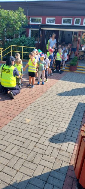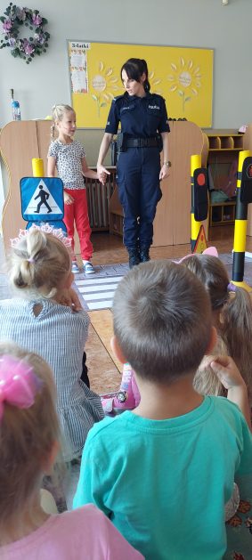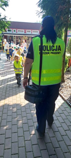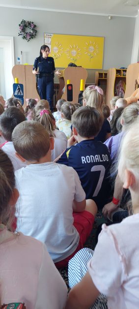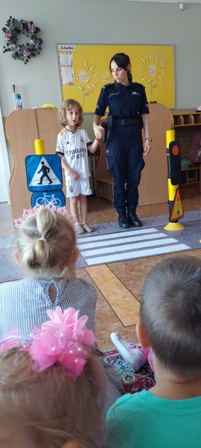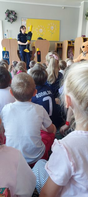 Wrzesień to miesiąc, w którym zawsze warto przypomnieć treści dotyczące bezpieczeństwa na drodze. 10 września w naszym przedszkolu odbyło się spotkanie z policjantkami z Komendy Powiatowej Policji w Szczecinku. Panie policjantki przybliżyły dzieciom podstawowe zasady bezpiecznego przechodzenia po pasach, przypomniały numery alarmowe oraz zasady zachowania się podczas spotkania z nieznajomym. Nawiązały również do konieczności noszenia ubrań i obuwia posiadającego elementy odblaskowe. Najstarsze przedszkolaki 5 i 6 latki wybrały się w towarzystwie policjantek na spacer w okolicy przedszkola i w sposób praktyczny przetestowały zdobytą wiedzę na przejściu dla pieszych. Dzieci zrozumiały jak ważne dla bezpieczeństwa jest przestrzeganie i stosowanie się ustalonych zasad.