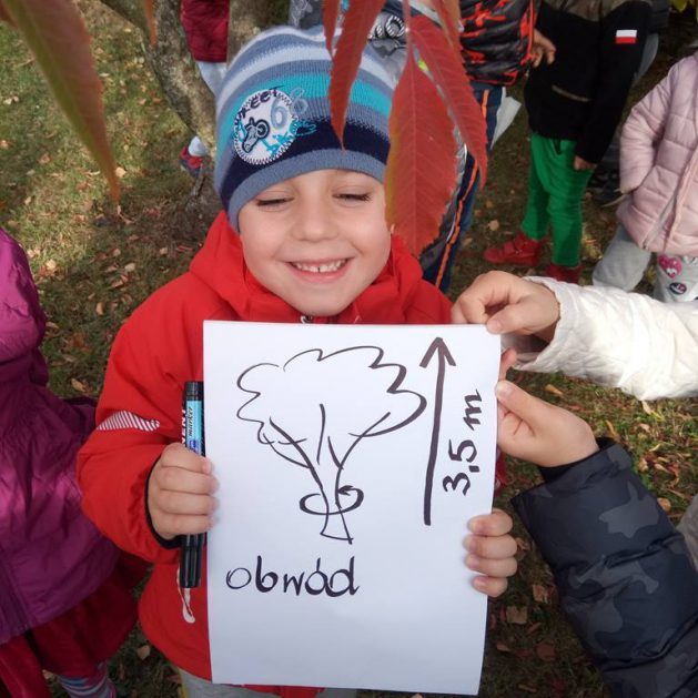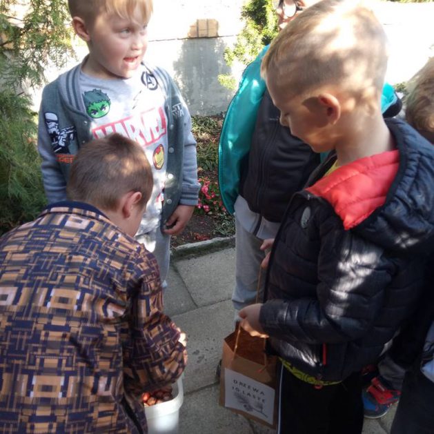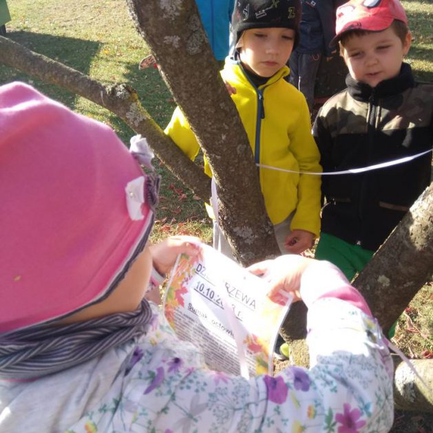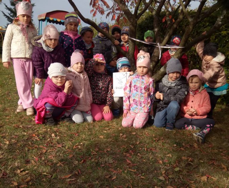 Dzień Drzewa obchodzony jest 10 października. Z tej okazji dzieci z grupy 5 latków rozpoczęły cały cykl zabaw i zajęć poświęcony propagowaniu idei ochrony przyrody, kształtowaniu pozytywnego stosunku do niej, pogłębianiu wiedzy na temat gatunków drzew w naszym ogrodzie oraz popularyzacji znaczenia drzew w biosferze. Dzieci objęły opieką wybrane drzewo, dokonały prostych pomiarów, dowiedziały się kilku ciekawostek na jego temat oraz wybrały nazwę. Uwieńczeniem całego cyklu było wykonanie drzewa wraz z rodzicami w domu z dowolnie wybranych materiałów, efekty niesamowite!