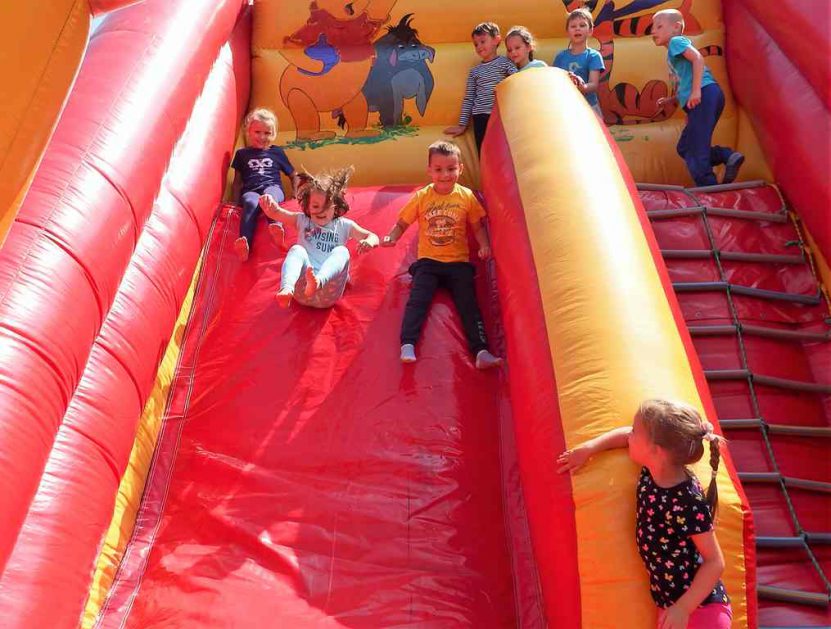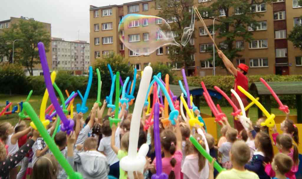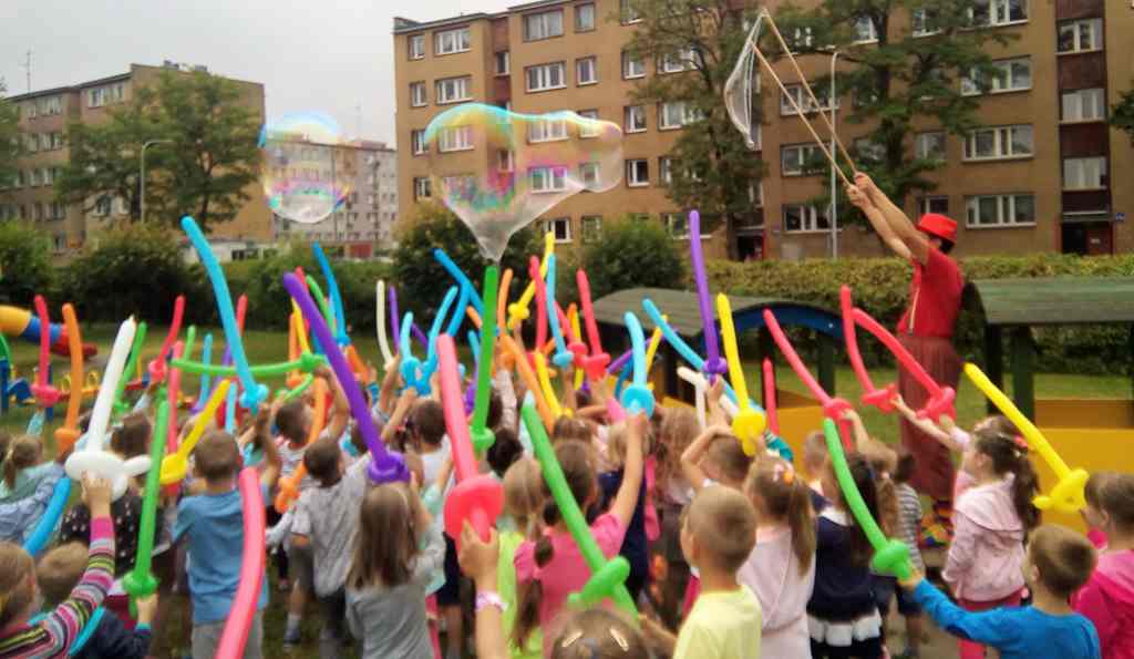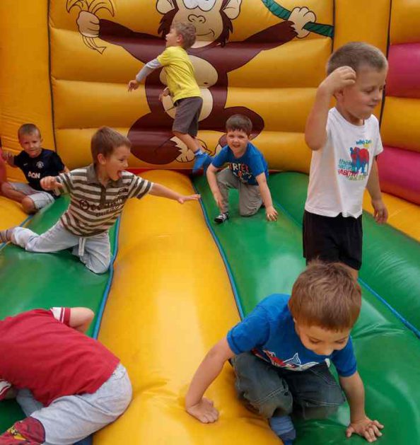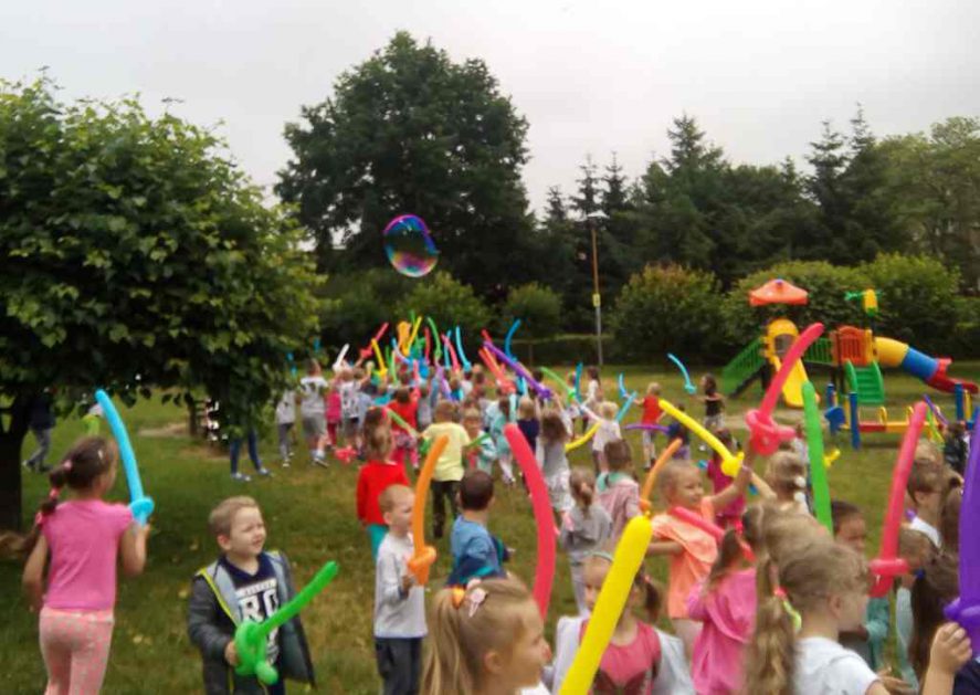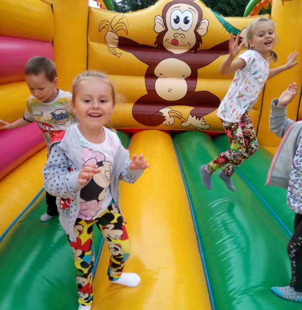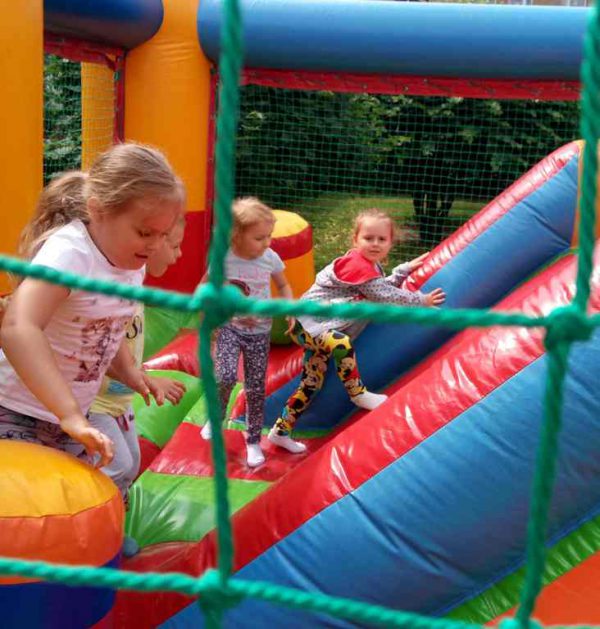 1 czerwiec – na ten dzień dzieci czekają cały rok. W naszym przedszkolu radość maluchów trwała dwa dni. W poniedziałek (4 czerwiec) było głośno i wesoło, były korowody i konkursy pod kierunkiem kolorowych klaunów, lody i prezenty, balony, we wtorek (5 czerwiec) w ogrodzie wyrosły olbrzymie dmuchane zamki – szaleństwo!