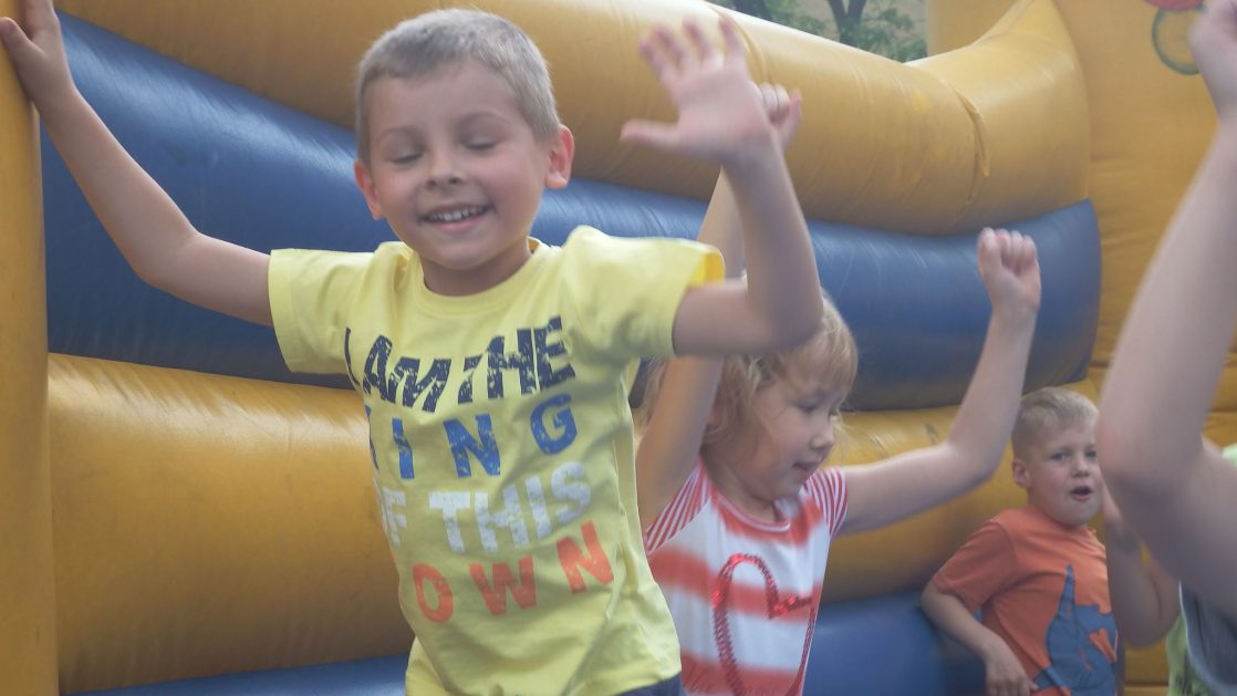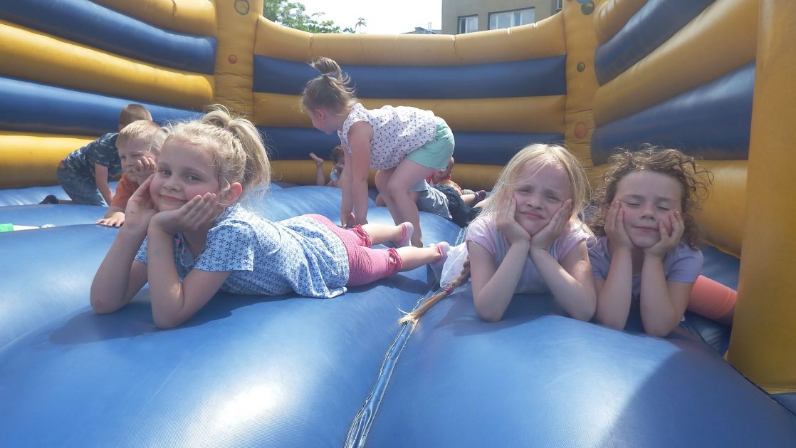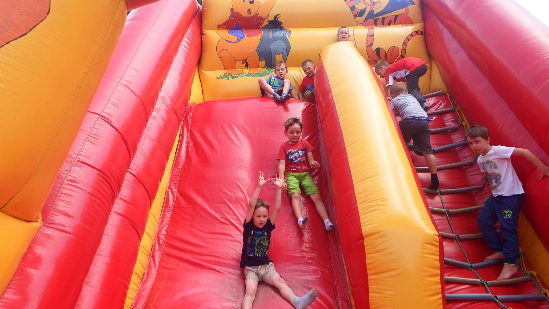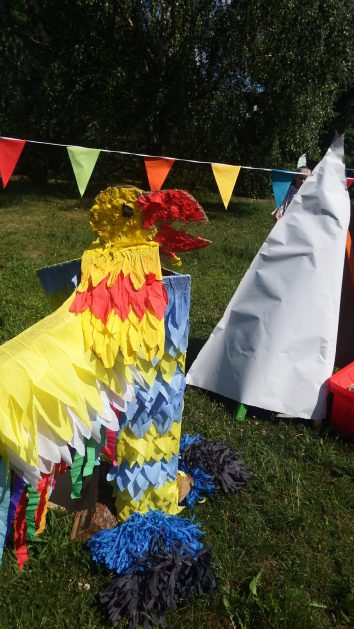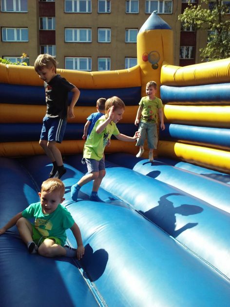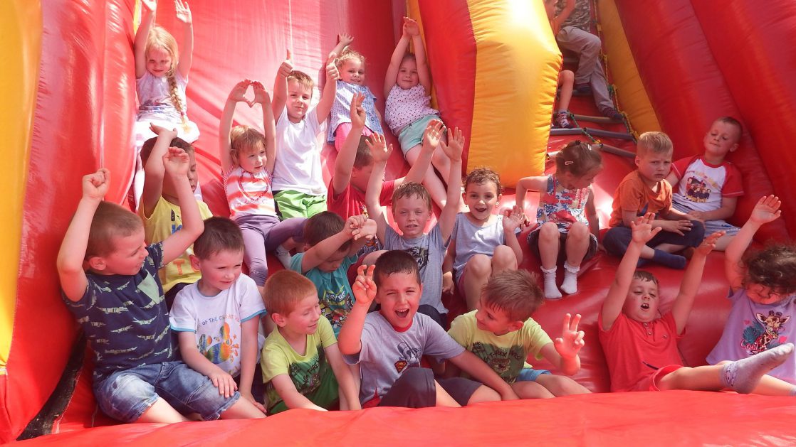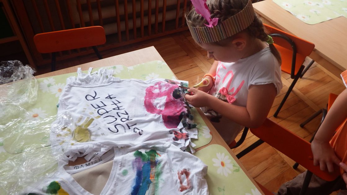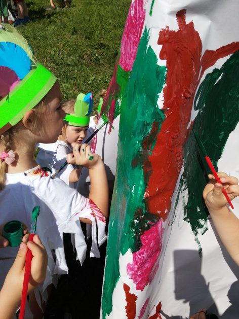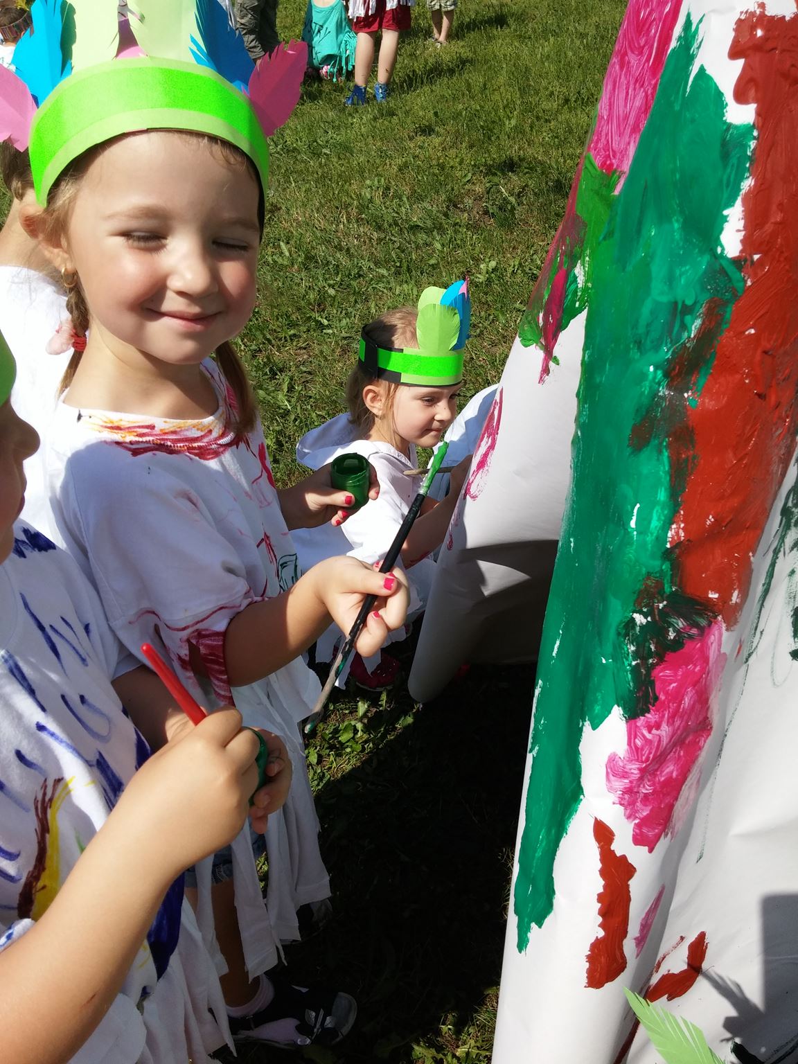 Święto wszystkich dzieci jest najbardziej wyczekiwanym przez przedszkolaków dniem w roku. W tym roku zaskoczyliśmy dzieci, bo ich święto trwało cały tydzień. Tematem przewodnim naszych działań była „Wioska Indiańska”. Każdego dnia były jakieś atrakcje, rozpoczęło się od szaleństwa na dmuchańcach, później były prezenty dla każdej grupy. Wiele radości sprawiło dzieciom szykowanie strojów Indiańskich, opasek i totemów grupowych. Dzieci bardzo angażowały się podczas malowania swoich koszulek, wymyślały indiańskie imiona. W piątek wesołą paradą i głośnymi okrzykami indiańskimi, dzieci z pomalowanymi buziami w barwach radości, udały się do ogrodu przedszkolnego, gdzie czekała na nich Wioska Indiańska. Przedszkolaki brały udział w tańcach, konkursach, malowaniu tipi dla swojej grupy.