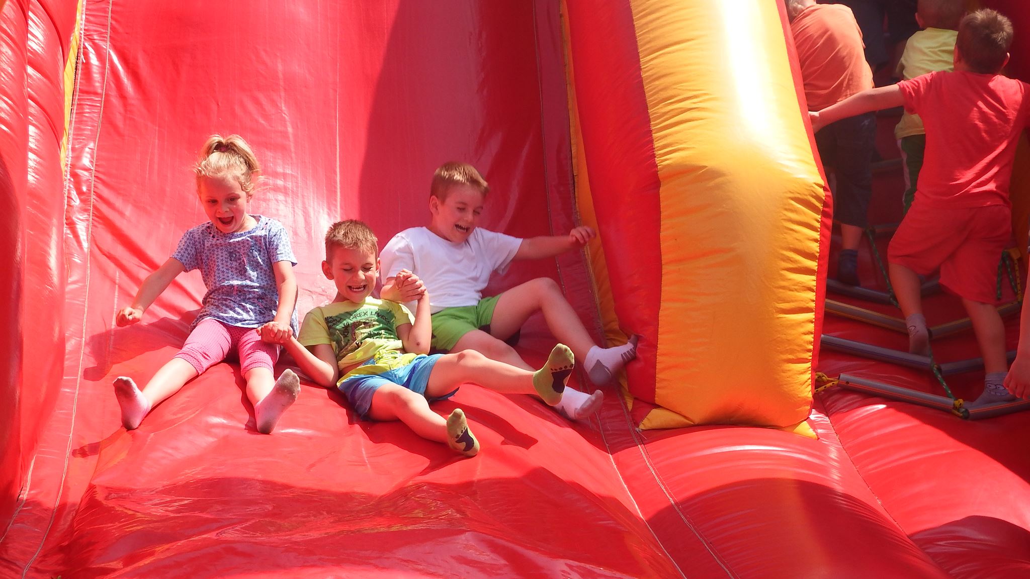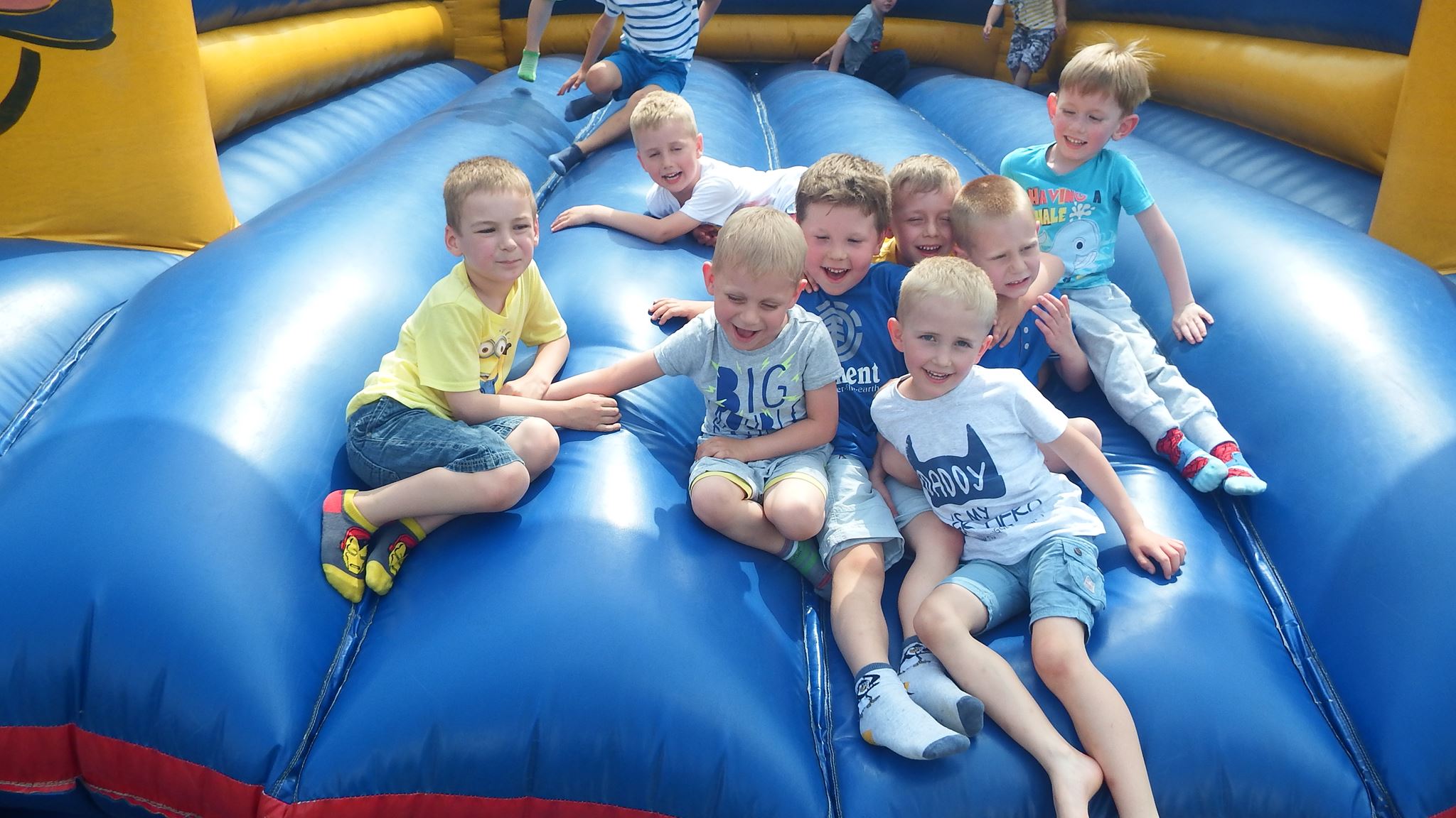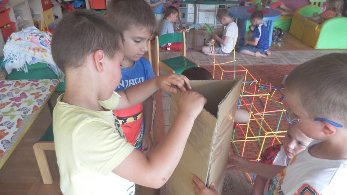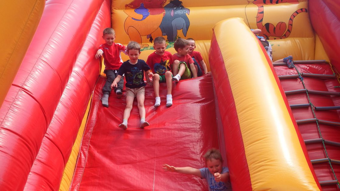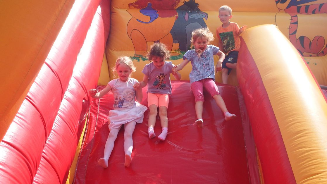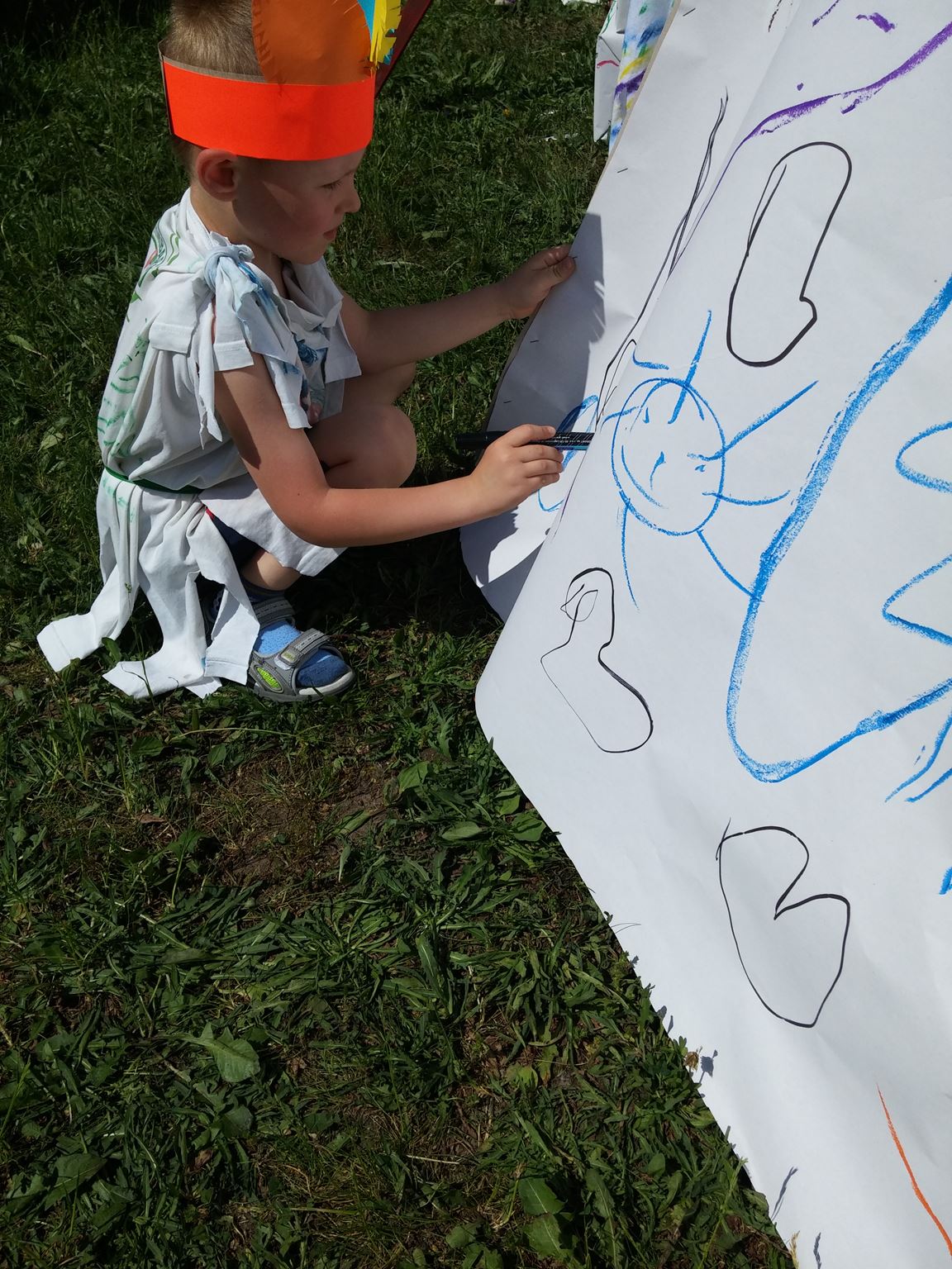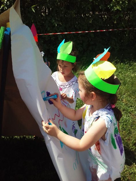 Święto wszystkich dzieci jest najbardziej wyczekiwanym przez przedszkolaków dniem w roku. W tym roku zaskoczyliśmy dzieci, bo ich święto trwało cały tydzień. Tematem przewodnim naszych działań była „Wioska Indiańska”. Każdego dnia były jakieś atrakcje, rozpoczęło się od szaleństwa na dmuchańcach, później były prezenty dla każdej grupy. Wiele radości sprawiło dzieciom szykowanie strojów Indiańskich, opasek i totemów grupowych. Dzieci bardzo angażowały się podczas malowania swoich koszulek, wymyślały indiańskie imiona. W piątek wesołą paradą i głośnymi okrzykami indiańskimi, dzieci z pomalowanymi buziami w barwach radości, udały się do ogrodu przedszkolnego, gdzie czekała na nich Wioska Indiańska. Przedszkolaki brały udział w tańcach, konkursach, malowaniu tipi dla swojej grupy.