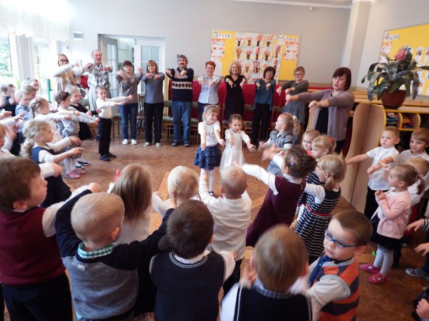 Jak co roku 14.10. dzieci pamiętały o święcie wszystkich pracowników przedszkola. Były kwiaty i życzenia, ale najsympatyczniejsze chwile to czas wspólnych zabaw pracowników z dziećmi.