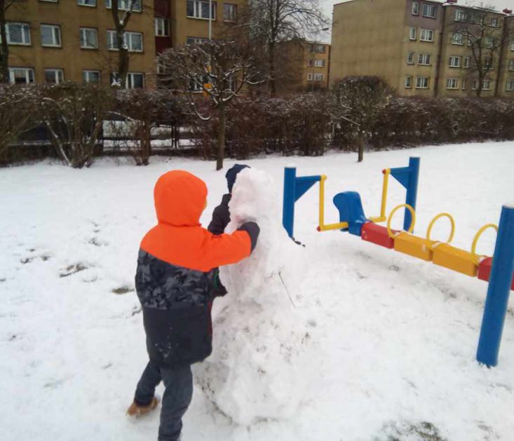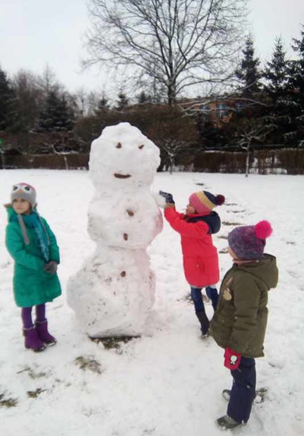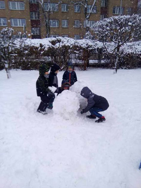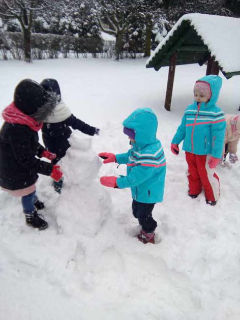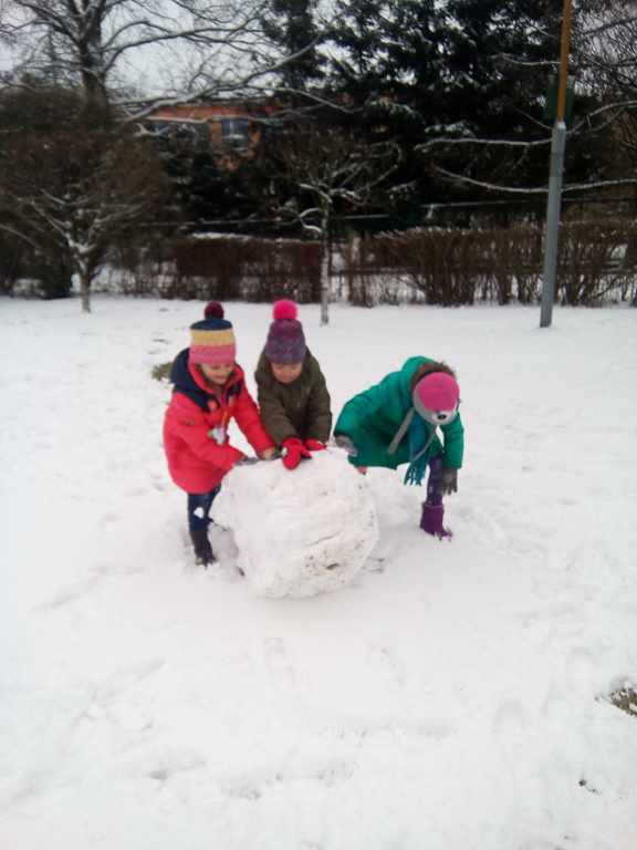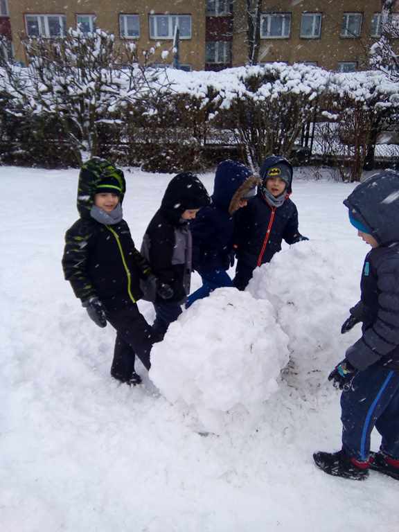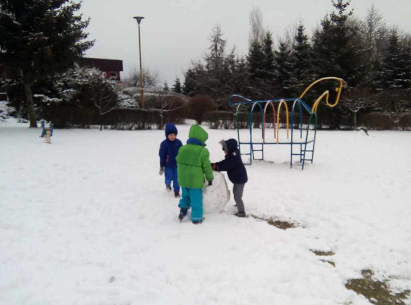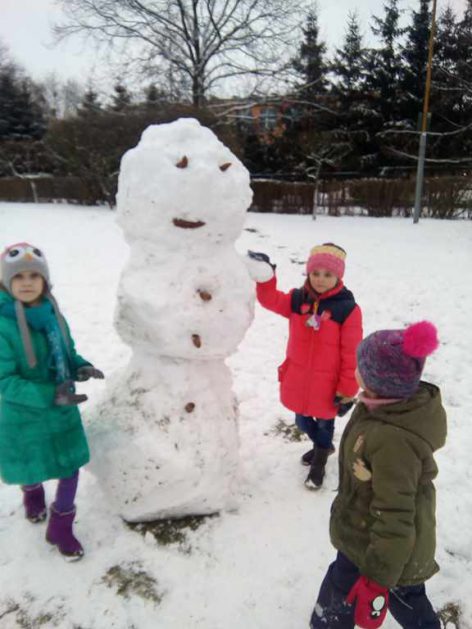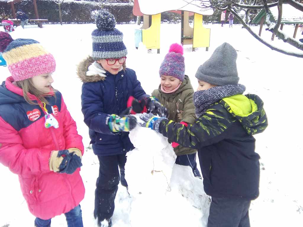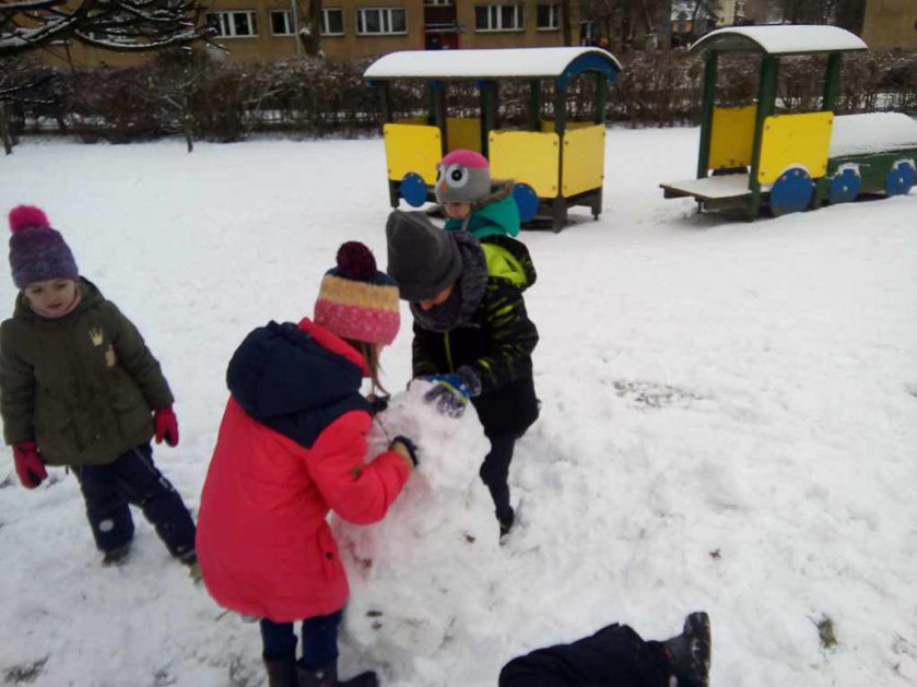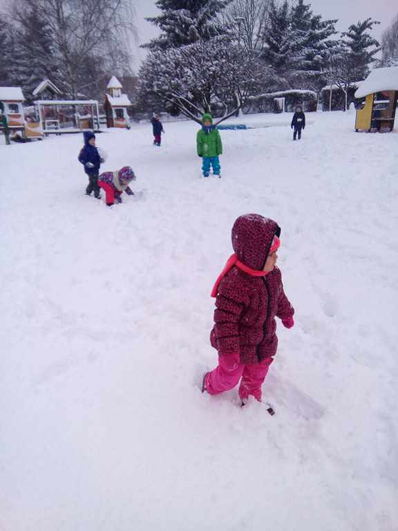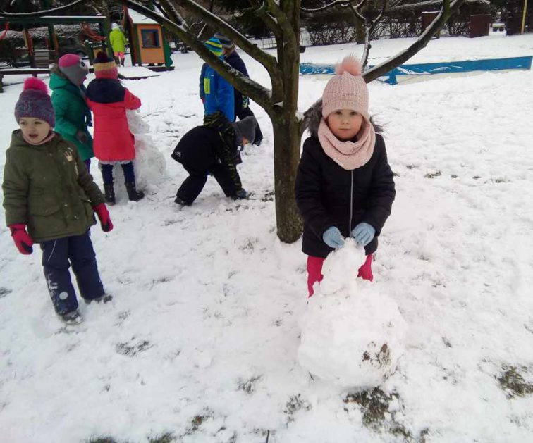 Ferie zimowe w naszym przedszkolu to czas beztroskich zabaw i odpoczynku. Spadł pierwszy śnieg, więc dzieci korzystały z zimowej aury. Biały puch zachęcał do różnych zabaw. Dzieci biegały po zaspach, rzucały śnieżkami do celu, lepiły bałwany, fortece i podjęły próbę budowy igloo. Przedszkolaki rozumieją, że ruch to zdrowie a zachowanie bezpieczeństwa gwarantuje zadowolenie i wesołą zabawę.