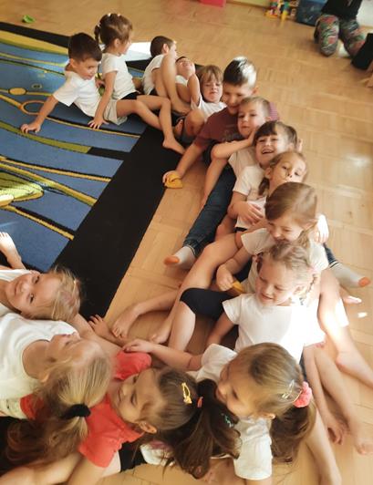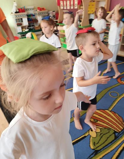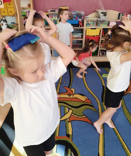 5 latki codziennie gimnastykują się bo chcą być zdrowe, i czy to sala czy podwórko, ruch daje im dużo radości!