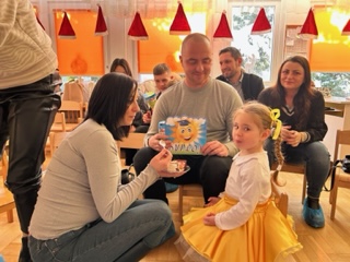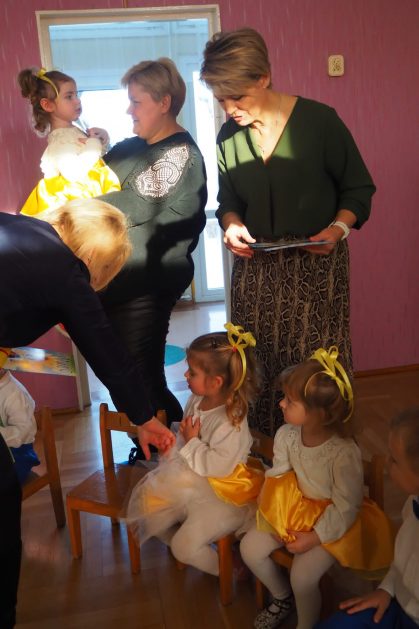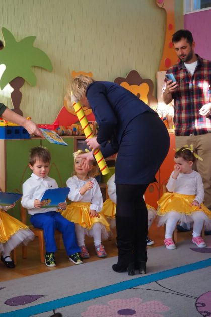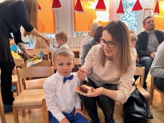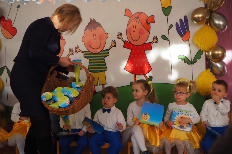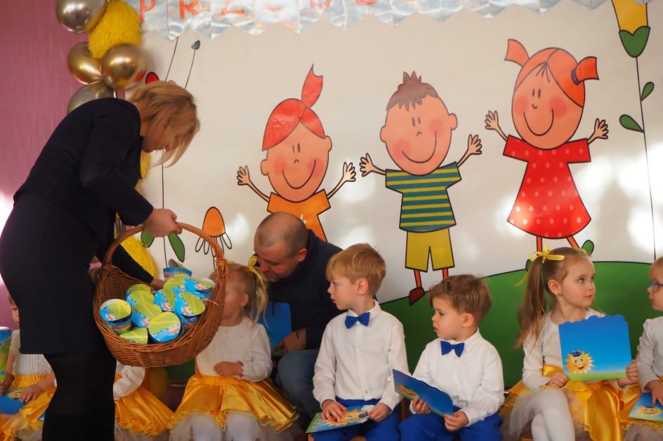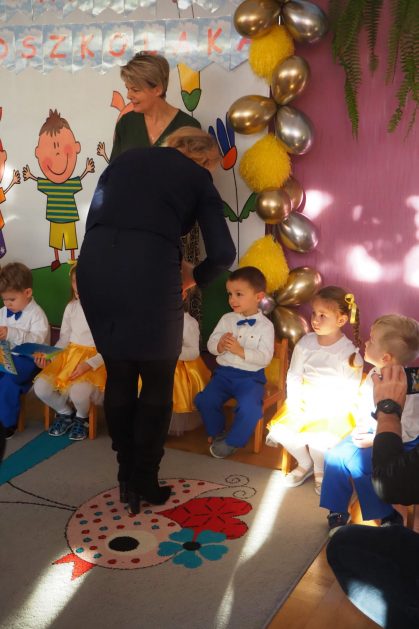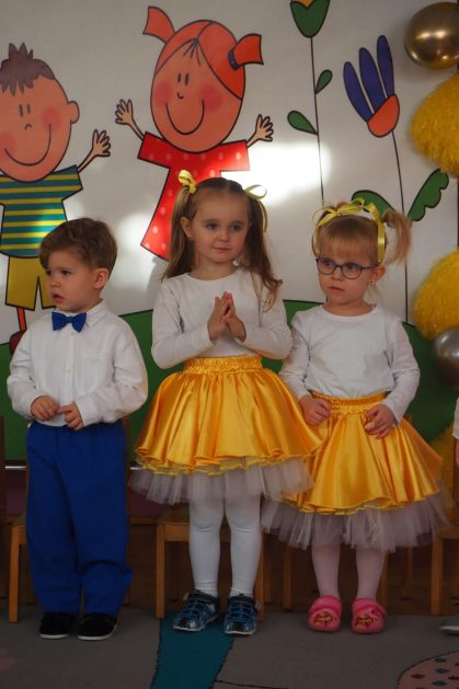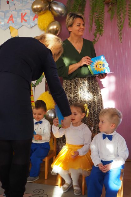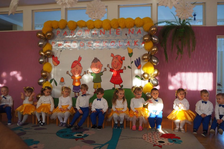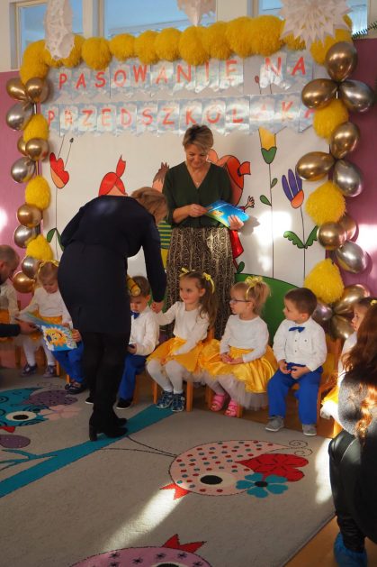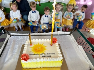 Pasowanie na Przedszkolaka to pierwsza wyjątkowa uroczystość w życiu każdego dziecka, które we wrześniu tego roku po raz pierwszy rozpoczęło swoją przygodę z przedszkolem. Nasze maluszki pierwszy raz zaprezentowały swoje umiejętności wokalne, recytatorskie i taneczne przed szerszym gronem gości. Następnie złożyły uroczyste ślubowanie i tym samym dołączyły do dużego grona słonecznej przedszkolnej rodziny. Było to również oficjalne zakończenie i ewaluacja programu adaptacyjnego. Dla dzieci to wielkie przeżycie, a dla rodziców powód do dumy i zadowolenia ze swoich pociech. Nagrodą za odwagę był pyszny tort, zjedzony ze smakiem, kiedy emocje już opadły! Na pamiątkę tak ważnego wydarzenia każdy MAŁY PRZEDSZKOLAK otrzymał dyplom i rożek obfitości.