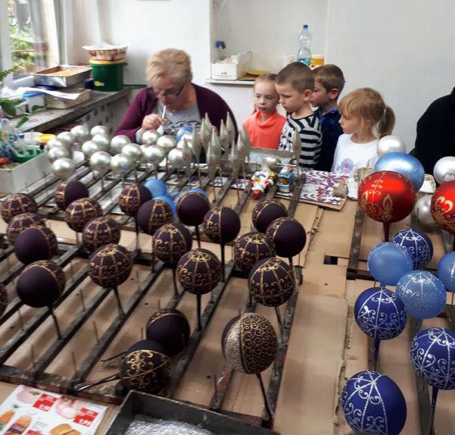 5 latki poznały w Koszalinie ciekawe miejsce. Odwiedziły Fabrykę Bombek „Glass Color”. Teraz już wiedzą co to jest proces dmuchania szkła, proces srebrzenia i kolejne etapy powstawania uroczych świecidełek, które zdobią nasze bożonarodzeniowe choinki od wielu, wielu lat. Przywiozły również wspaniałą pamiątką – własnoręcznie wykonane bombki.