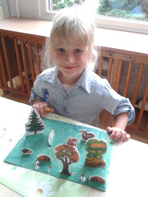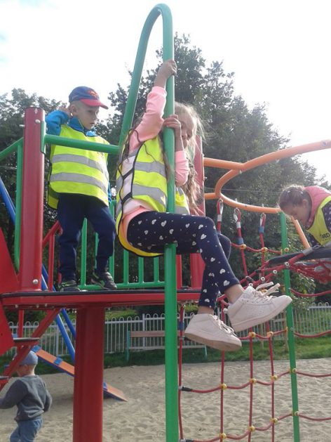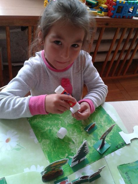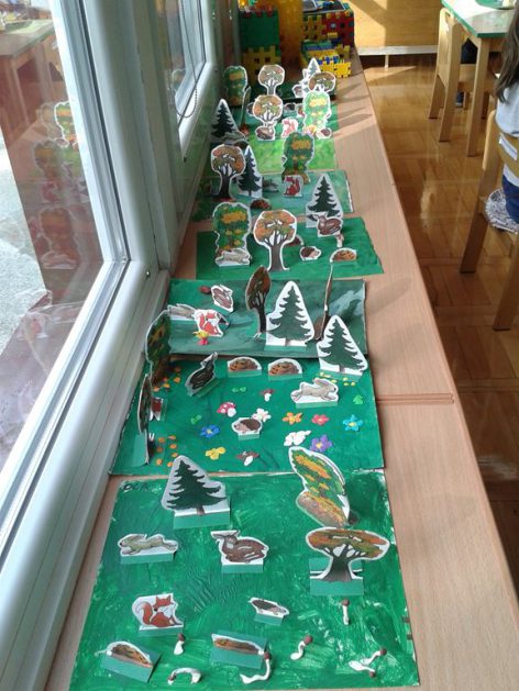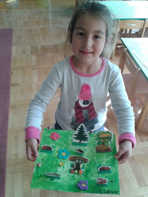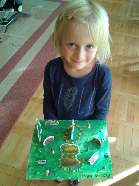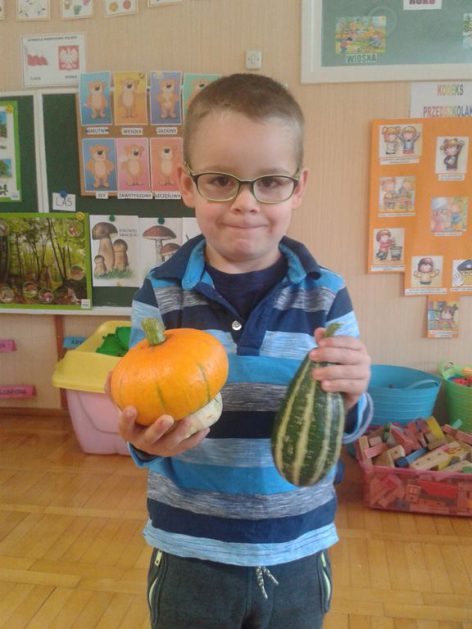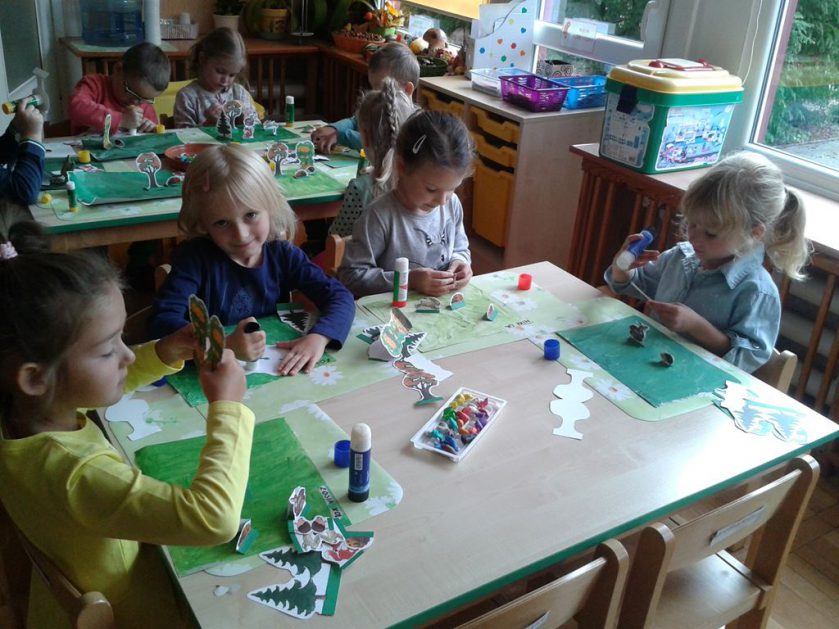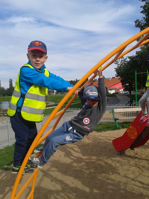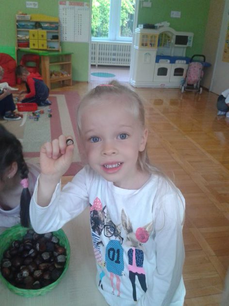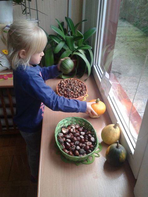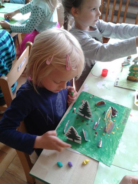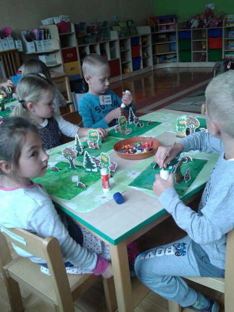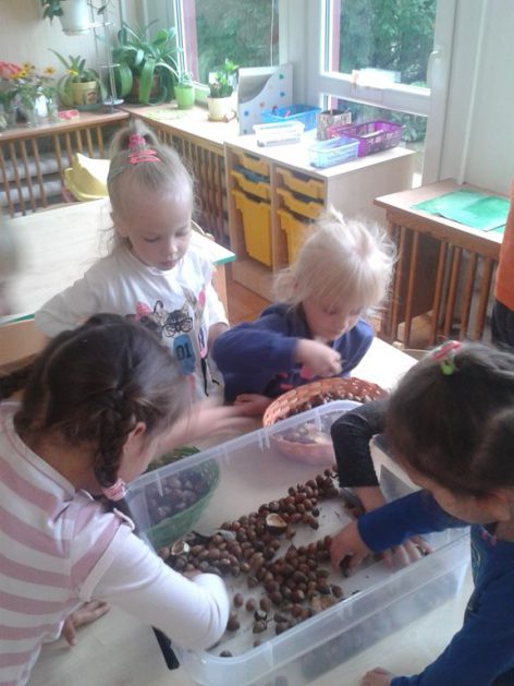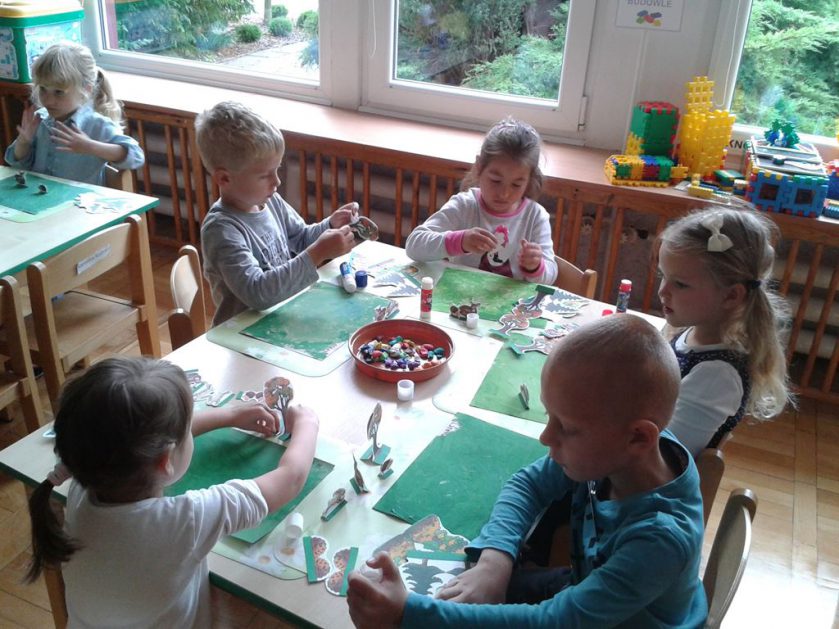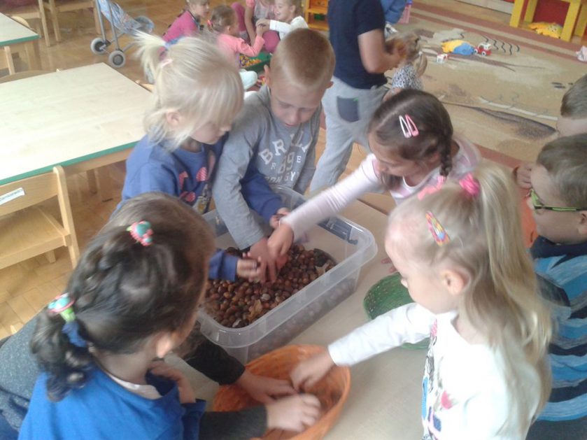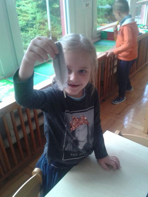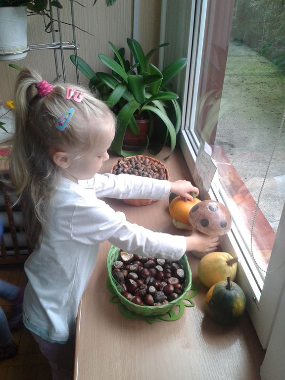 5-latki wraz z p. Kasią udały się na spacer w poszukiwaniu pierwszych oznak jesieni. Dzieci poznały środowisko przyrodnicze jakim jest park, zebrały jesienne skarby, a w drodze powrotnej świetnie bawiły się na placu zabaw. Przyniesione dary zostały starannie posegregowane i ułożone w kąciku przyrody. Zwieńczeniem zajęć o tematyce jesiennej było stworzenie makiety lasu, co sprawiło dzieciom wiele frajdy.