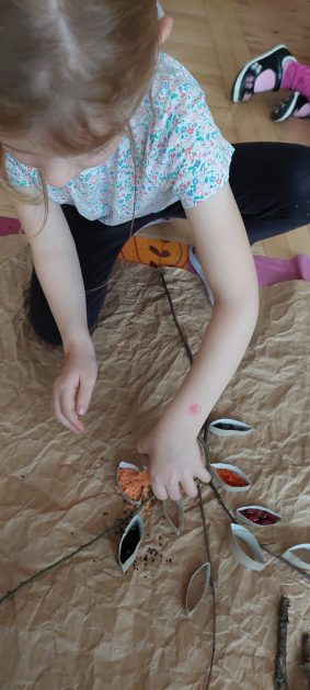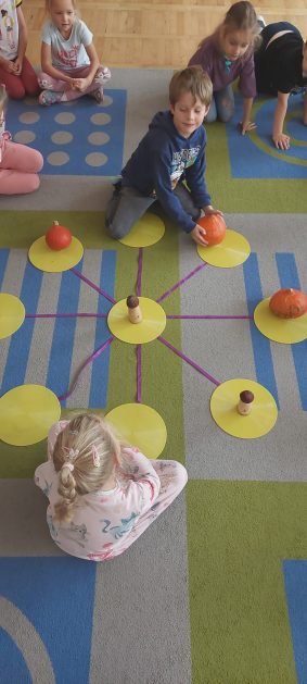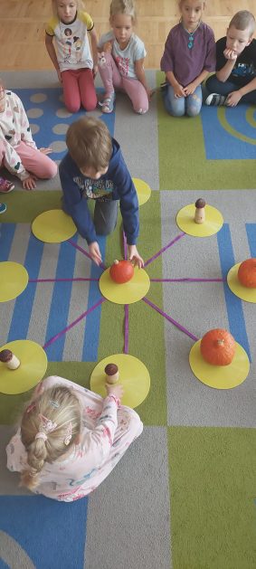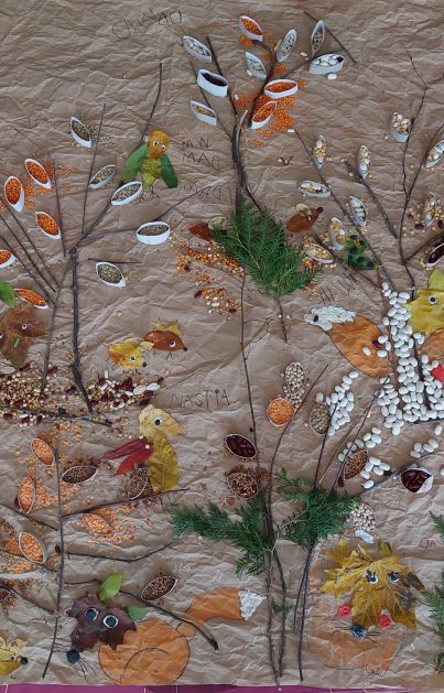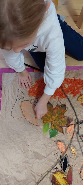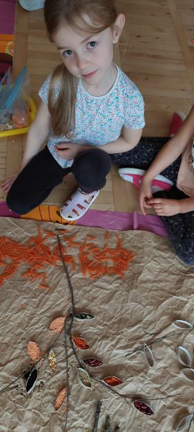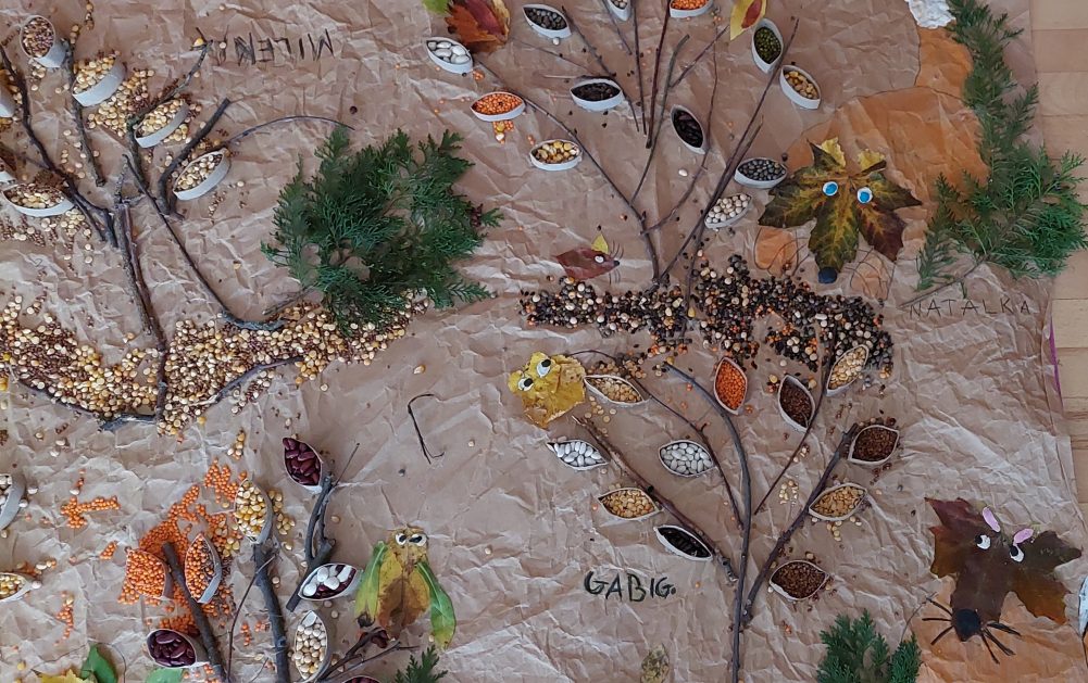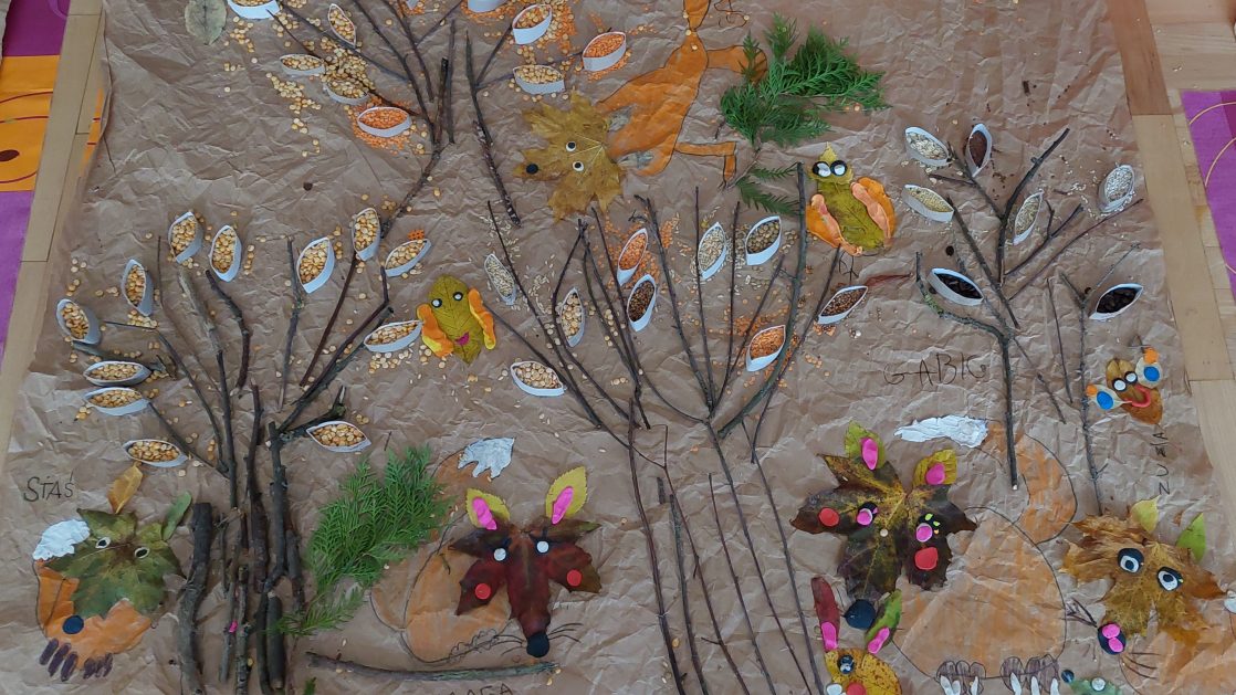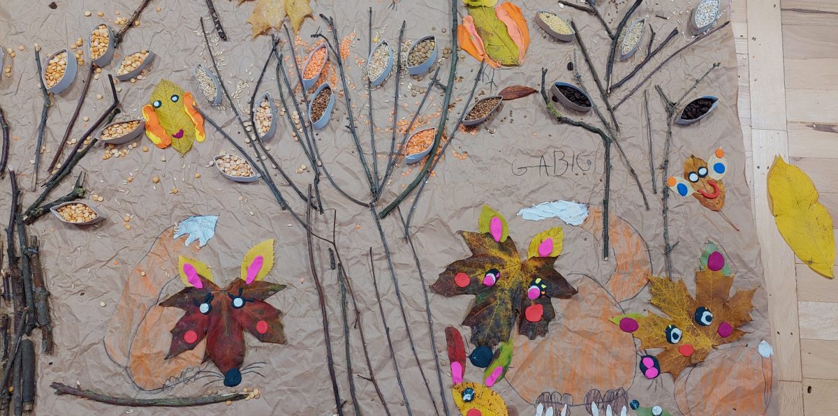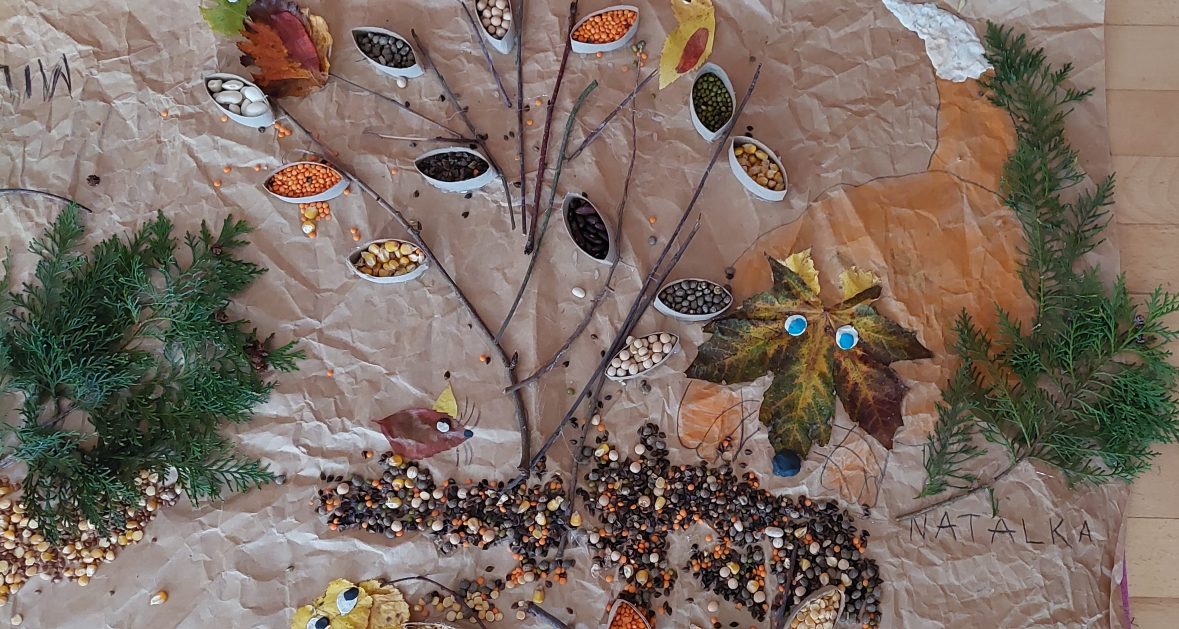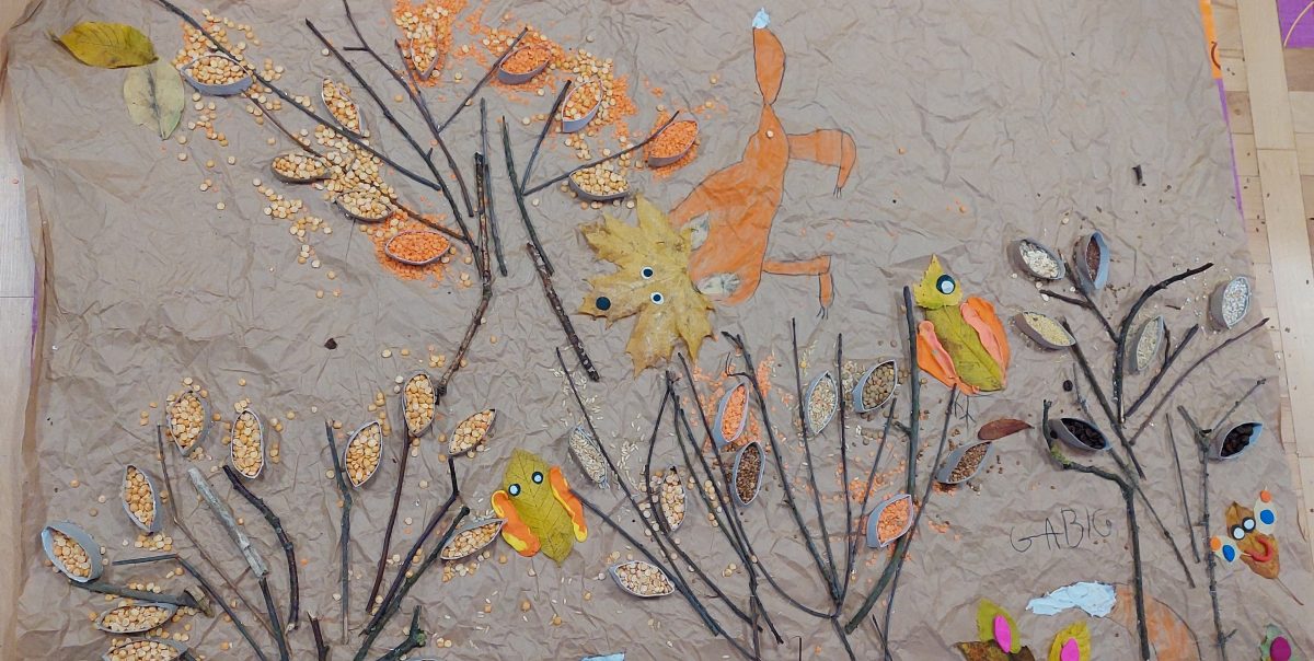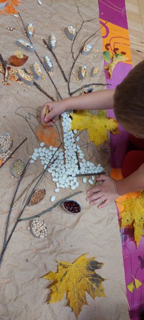 Pora jesienna to wcale nie jest nudny czas. Jesień pobudza wyobraźnię dzieci, więc 6 latki rozpoczynają poszukiwania skarbów jesiennych w najbliższym otoczeniu. Nasz ogród jest miejscem gdzie wyobraźnia i ciekawość świata dzieci przeżywa „turbo doładowanie”. Małe rączki chcą wszystkiego dotknąć, a oczy wszystko dojrzeć. Dzieci nie potrzebują mapy, słuchają swoich wewnętrznych głosów i podążają za tym co oferuje im jesienny ogród! Odnalezione tam skarby natury 6 latki chętnie i łatwo zamieniają w twórcze działania zarówno te kreatywne pobudzające wszystkie zmysły, koncentrujące się na mowie, nauce czytania, tworzeniu gier, czy działaniach matematycznych.