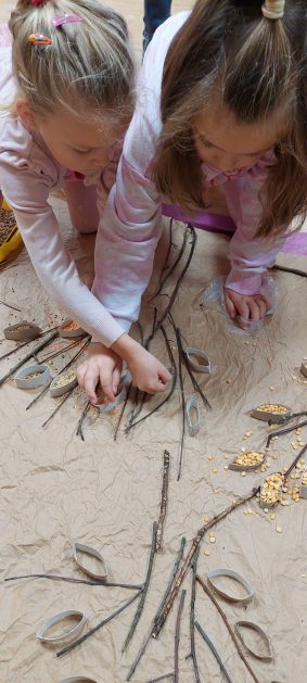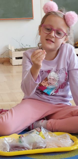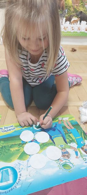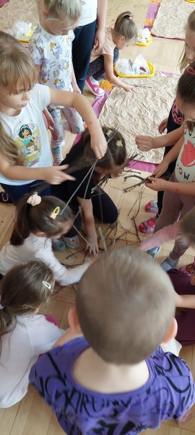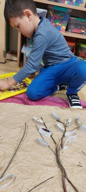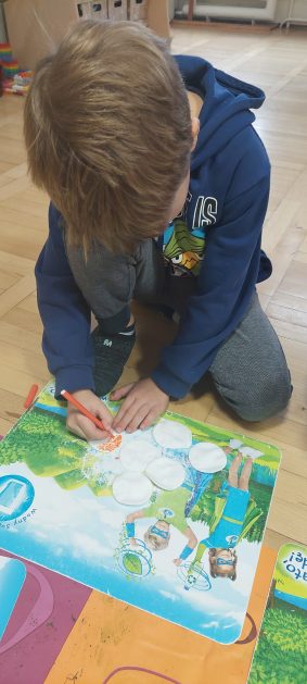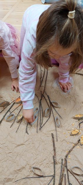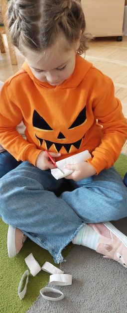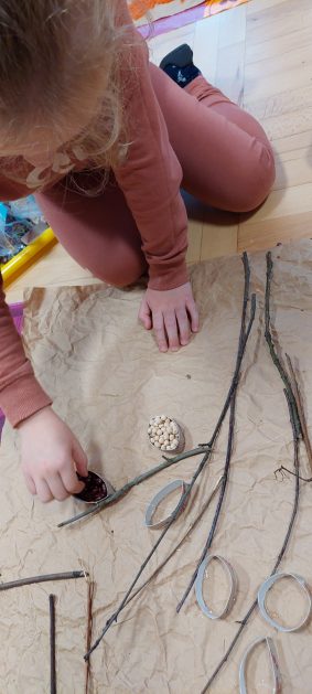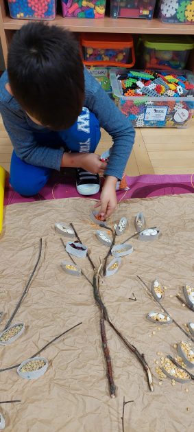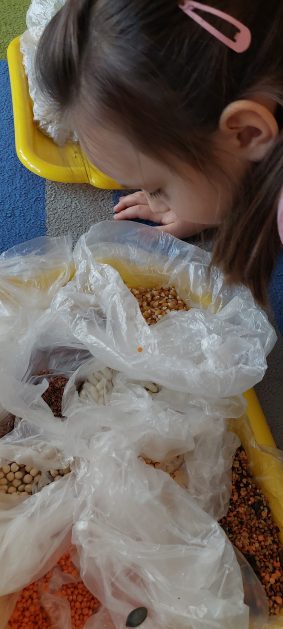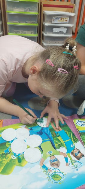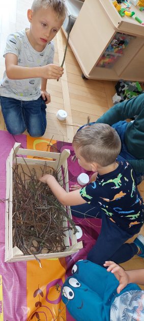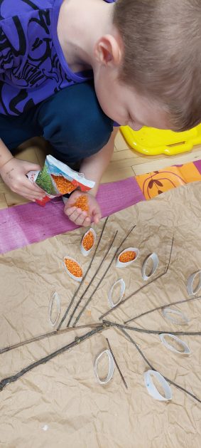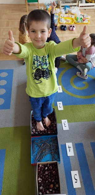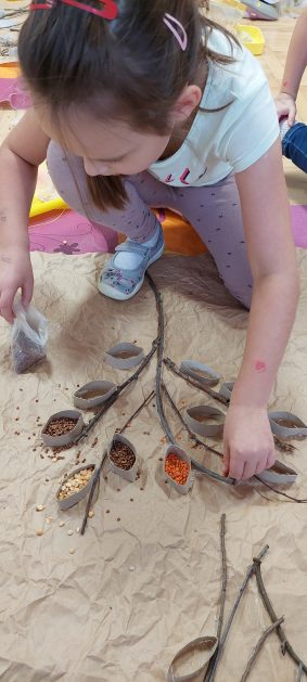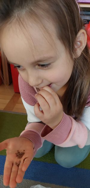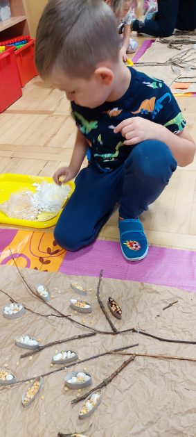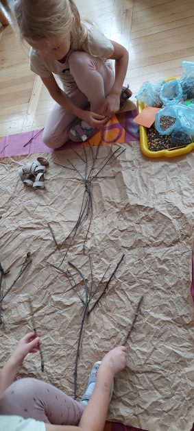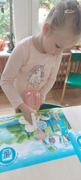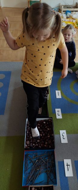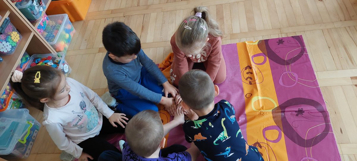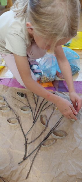 Pora jesienna to wcale nie jest nudny czas. Jesień pobudza wyobraźnię dzieci, więc 6 latki rozpoczynają poszukiwania skarbów jesiennych w najbliższym otoczeniu. Nasz ogród jest miejscem gdzie wyobraźnia i ciekawość świata dzieci przeżywa „turbo doładowanie”. Małe rączki chcą wszystkiego dotknąć, a oczy wszystko dojrzeć. Dzieci nie potrzebują mapy, słuchają swoich wewnętrznych głosów i podążają za tym co oferuje im jesienny ogród! Odnalezione tam skarby natury 6 latki chętnie i łatwo zamieniają w twórcze działania zarówno te kreatywne pobudzające wszystkie zmysły, koncentrujące się na mowie, nauce czytania, tworzeniu gier, czy działaniach matematycznych.
