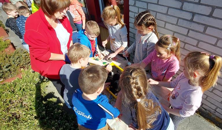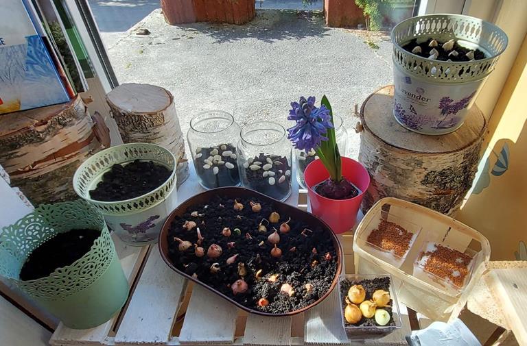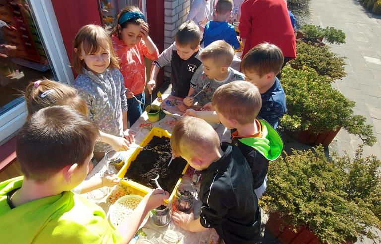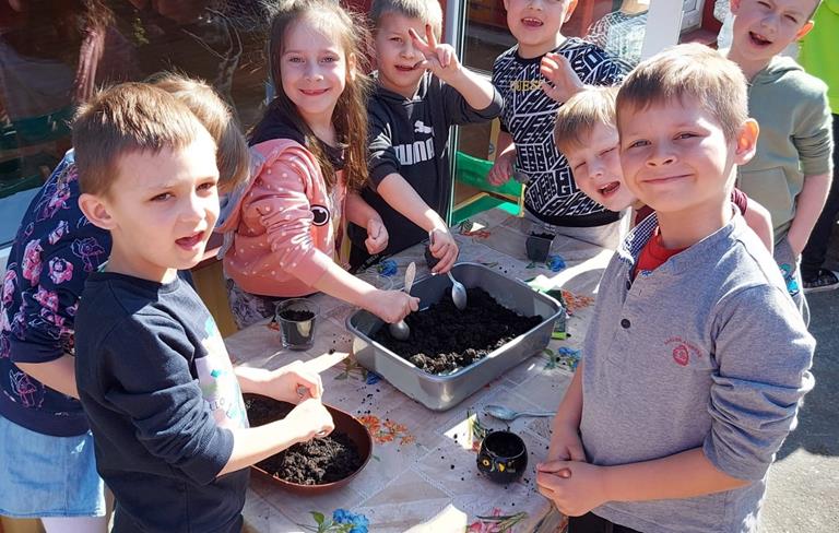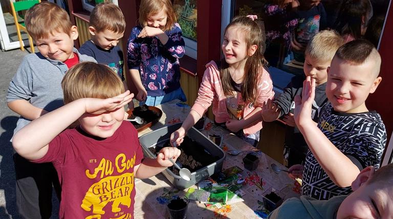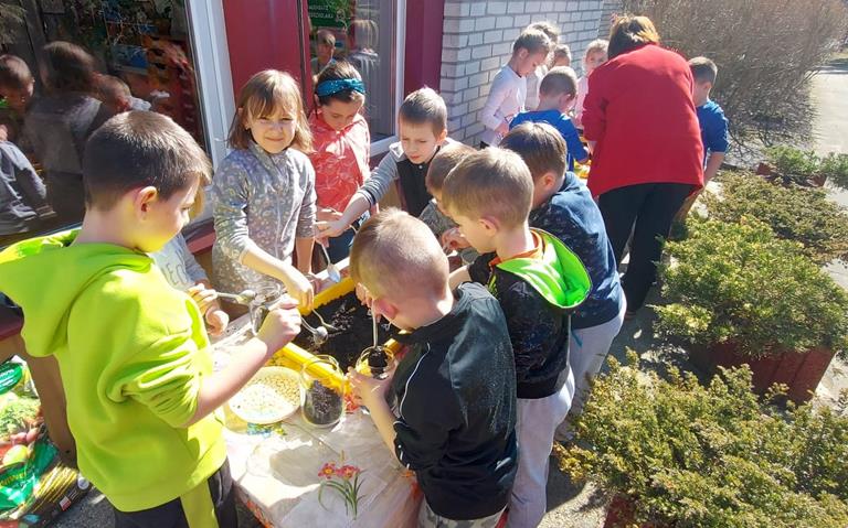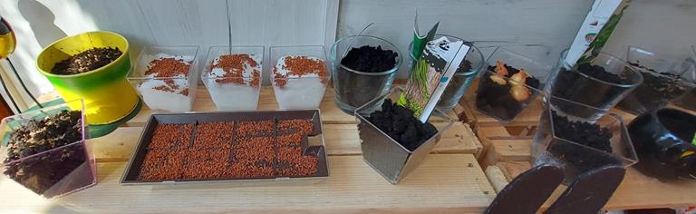 „Mali ogrodnicy”…wiosna za oknem i wiosna w sali. 6 latki podczas zajęć gospodarczych posiali szczypiorek, koperek, rzeżuchę, bazylię i oregano, posadzili także cebulkę dymkę i mieszankę kwiatów miododajnych oraz lawendę. Sadzonki pięknie wyglądają na naszym parapecie, a temu wszystkiemu przez okno przyglądał się nasz koci przyjaciel. Teraz prowadzimy codzienną obserwację i czekamy na pierwsze efekty.