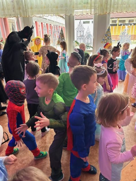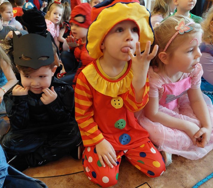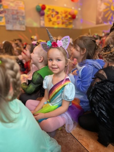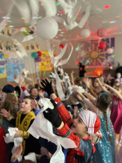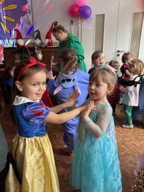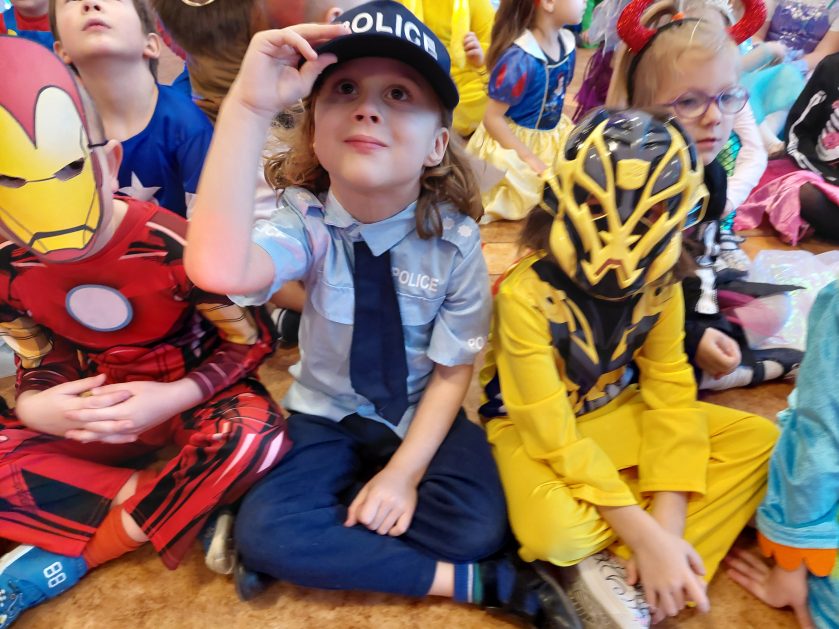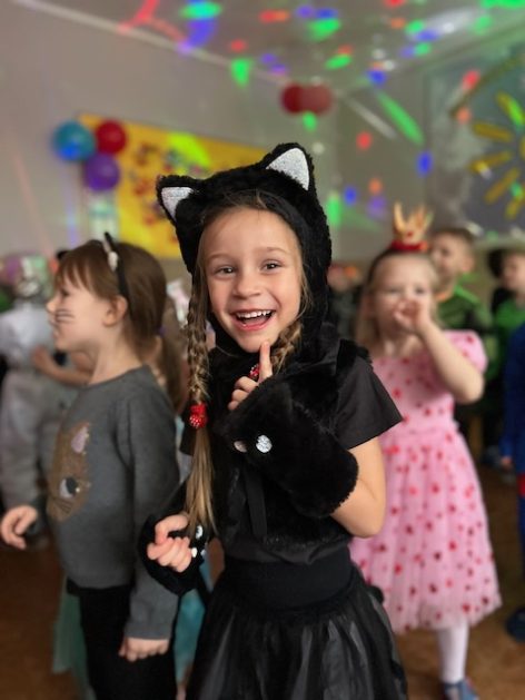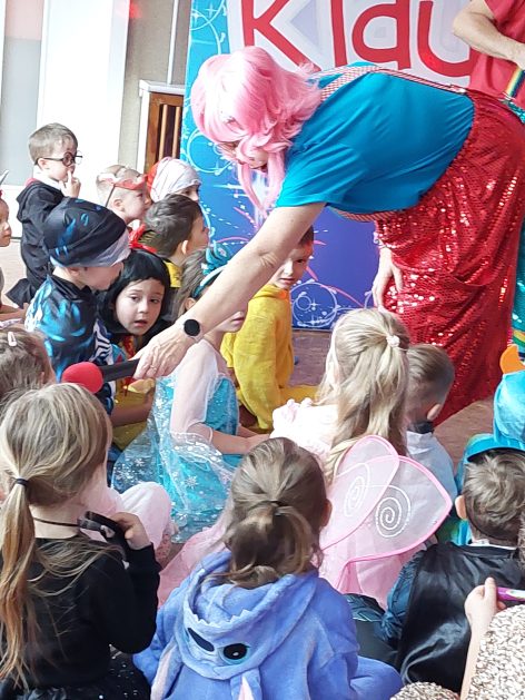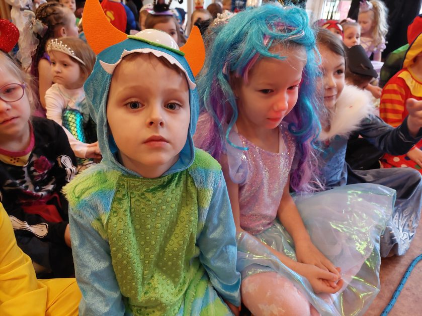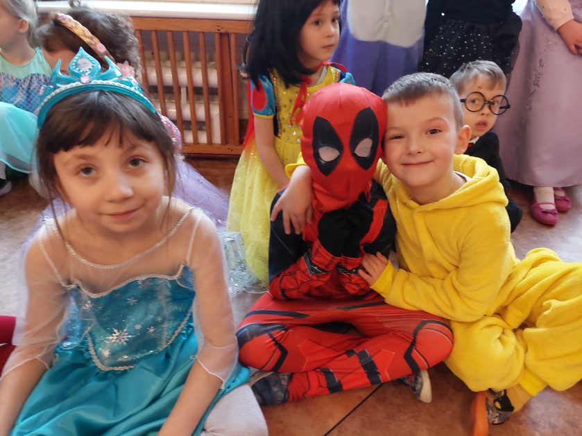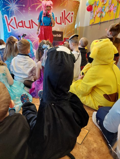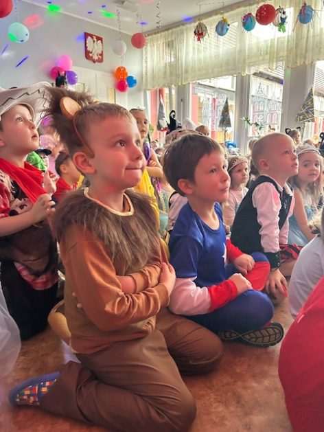 Korzystając z zaproszenia u nas 28 stycznia były tańce i wesołe przebierańce. Księżniczki, misie, policjanci bawili się wspaniale! Czy to mały, czy też duży każdy tańczył tak ja lubi! Buzie wszystkie uśmiechnięte, bo rozśmieszał dzieci Kulek i Kulka clowni z Koszalina. Wszystkim zabawom towarzyszył śmiech, radość i spontaniczna aktywność dzieci. W trakcie karnawałowych szaleństw był czas na słodką przekąskę, jak również na pamiątkowe zdjęcia.