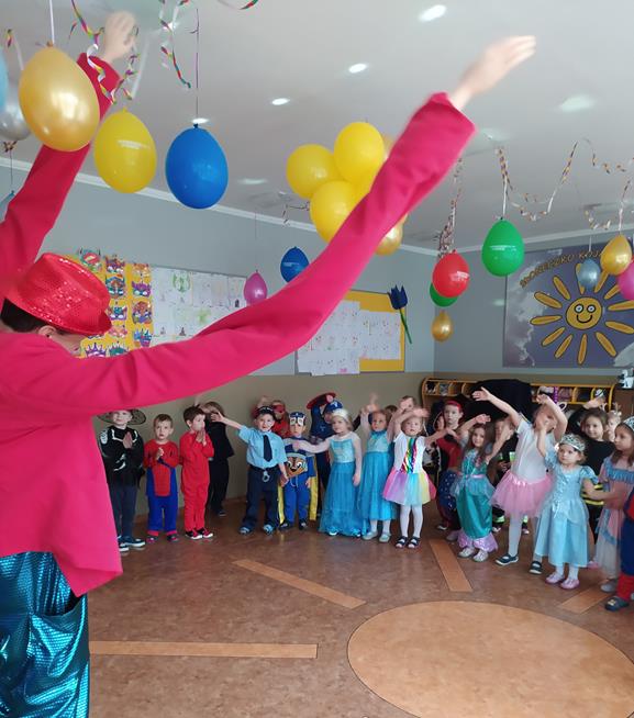 Panowała niezwykła atmosfera, było dużo muzyki, tańca oraz śmiesznych gagów. Nie zabrakło również kolorowych strojów naszych przedszkolaków. Wspólna zabawa we wspaniałym towarzystwie na długo zostanie w pamięci dzieci i dorosłych.