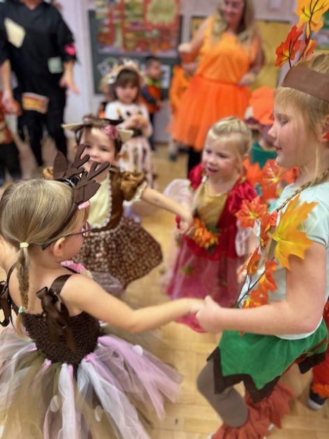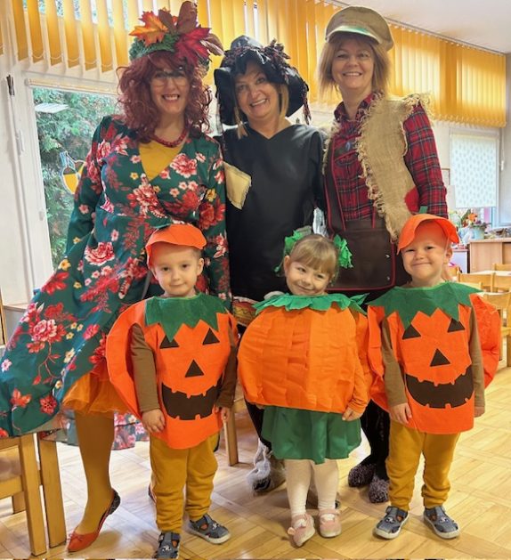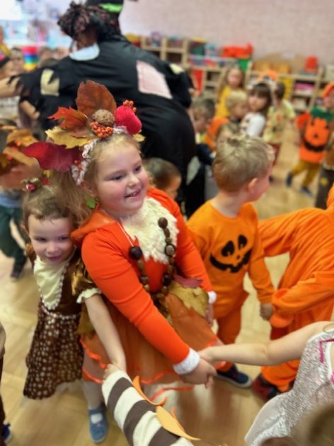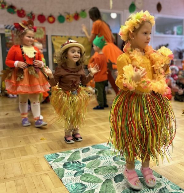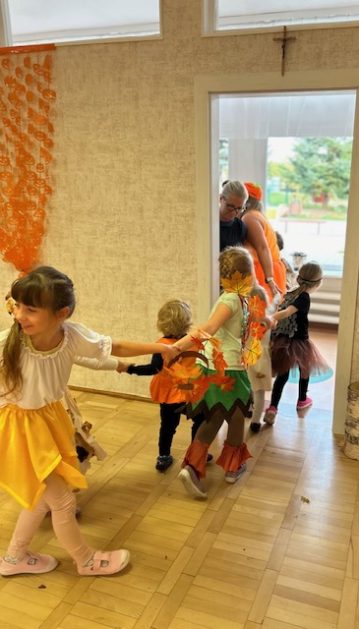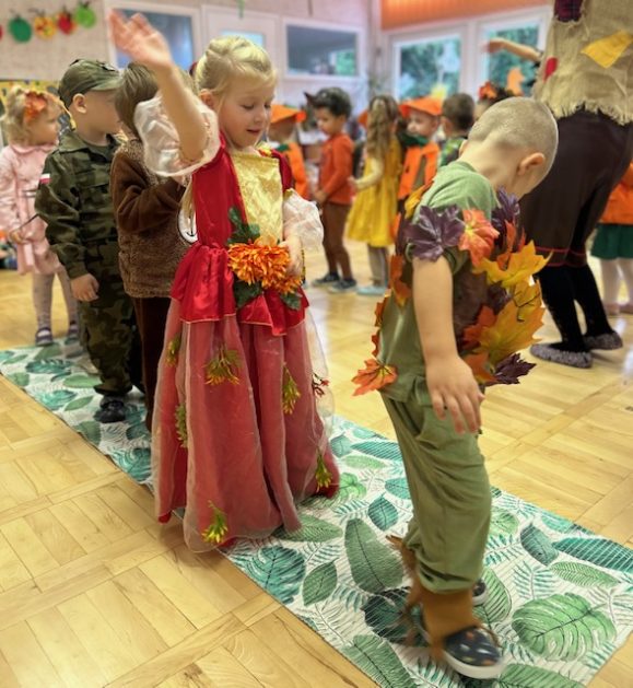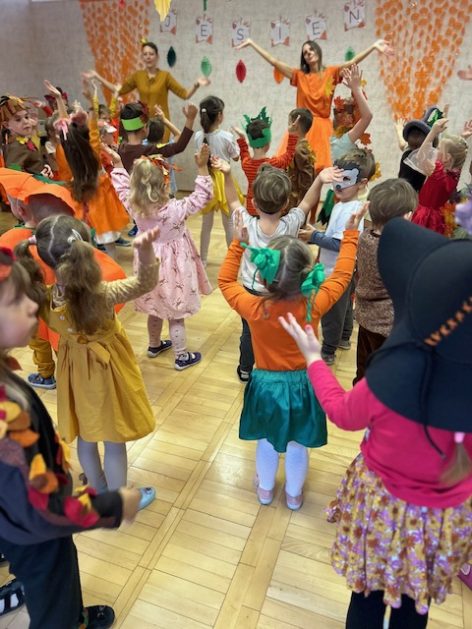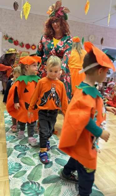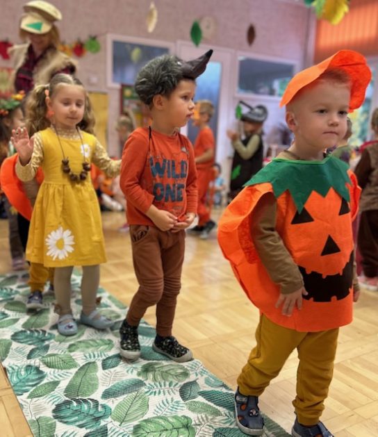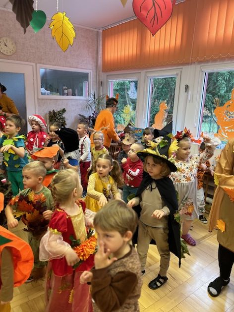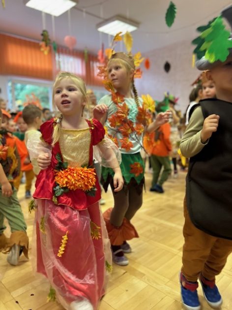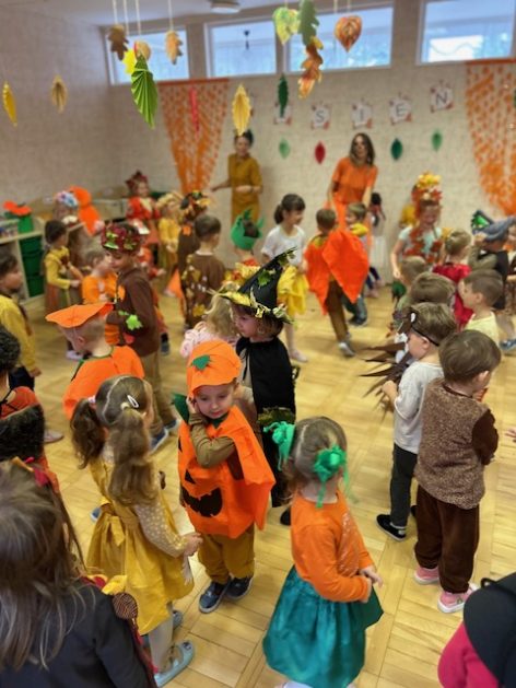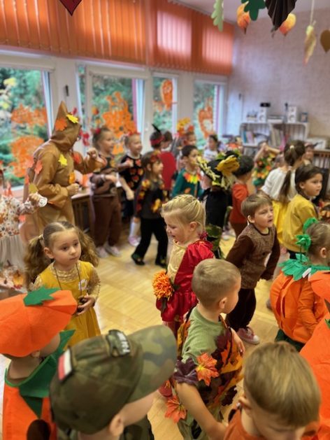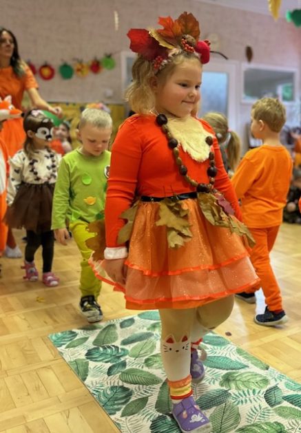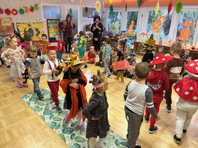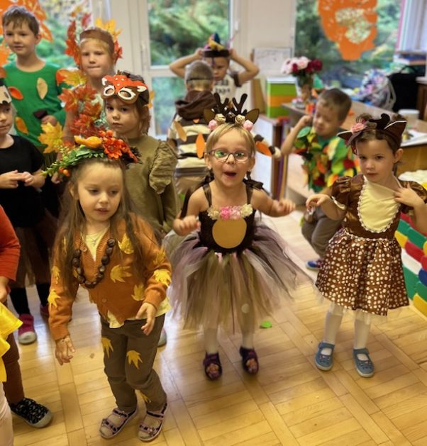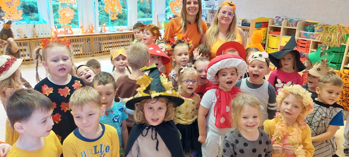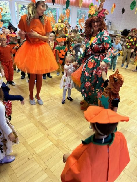 23 października w naszym przedszkolu odbył się Bal Jesieni. Wszyscy udowodnili, że jesień nie musi być szara, bura i ponura! W tym roku przecież Pani Jesień jest wyjątkowo kolorowa i radosna a kolorem przewodnim na balu – był pomarańczowy! Dzieci, Pani dyrektor, nauczycielki jak i cały personel przybył ubrany w jesienne stroje. Na balu królowały zabawy przy muzyce i jesiennych piosenkach. Pani Jesień zadbała, by dla wszystkich znalazło się na balu coś ciekawego, a więc była także gimnastyka umysłu , dzieci rozwiązywały zagadki o tematyce jesiennej, podczas którego utrwalały zdobyte wiadomości, nie zabrakło też innych atrakcji takich jak: konkursy oraz pokaz mody, na którym dzieci zaprezentowały swoje jesienne stylizacje. Uśmiechnięte buzie wszystkich przedszkolaków to najlepszy dowód na to, że bal był udany!