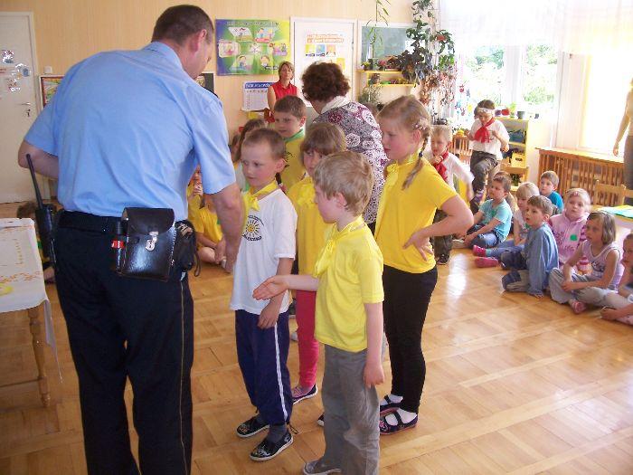 Dziecko rozpoczynające naukę w szkole powinno znać zasady warunkujące jego bezpieczeństwo i respektować je, rozumieć, dlaczego obowiązują. W związku z tym w przedszkolu dla dzieci starszych został zorganizowany konkurs Sprawdź co wiesz. W komisji zasiedli przedstawiciel policji, straży miejskiej i dyrektor przedszkola. Dzieci wykazały się dużą wiedzą dotyczącą bezpieczeństwa w życiu codziennym.