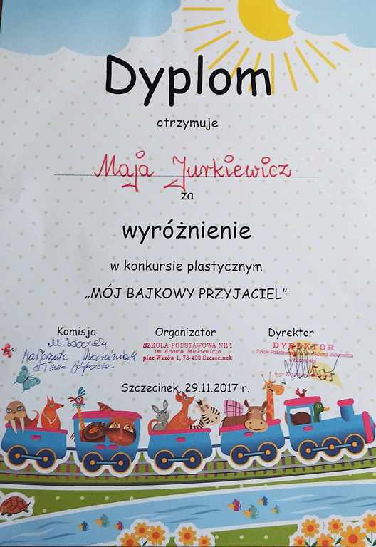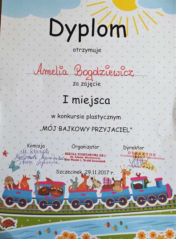 Każde dziecko rodzi się z pewnym potencjałem, który odpowiednio rozwijany pozwoli mu opanować określone, właściwe umiejętności. Pasje i zainteresowania dzieci wspierane odpowiednio wcześnie mogą w pewnym stopniu ukierunkować jego przyszłość. Dlatego w naszym przedszkolu staramy się dawać dzieciom takie szanse poprzez udział w różnych konkursach, nie tylko na terenie naszej placówki ale również w środowisku lokalnym.