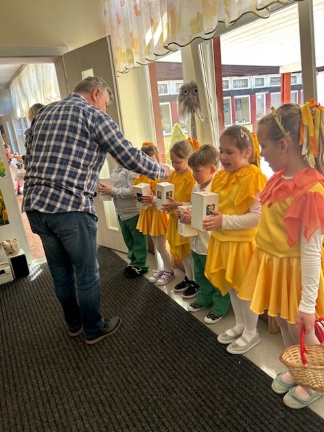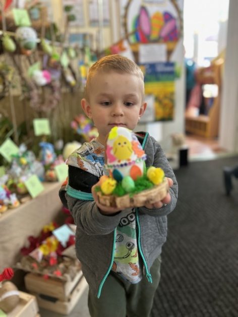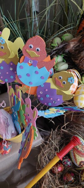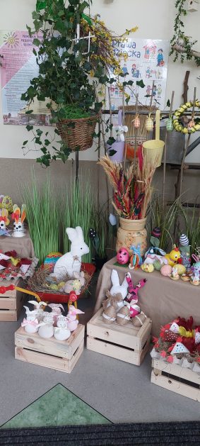 Nadchodząca wiosna i Święta Wielkanocne niosą nadzieję i przesłanie zwycięstwa dobra nad złem, nadzieję na lepsze jutro, radość i wiarę w drugiego człowieka, wzajemną życzliwość i zrozumienie. W tym czasie rozpoczynamy przygotowania do świątecznego kiermaszu, który ma szczytny cel, jest to ważna tradycja naszego przedszkola, każda grupa przygotowuje ozdoby wielkanocne, które później wystawione są na sprzedaż podczas kiermaszu. Można było zakupić różne cudeńka i pyszne smakołyki…