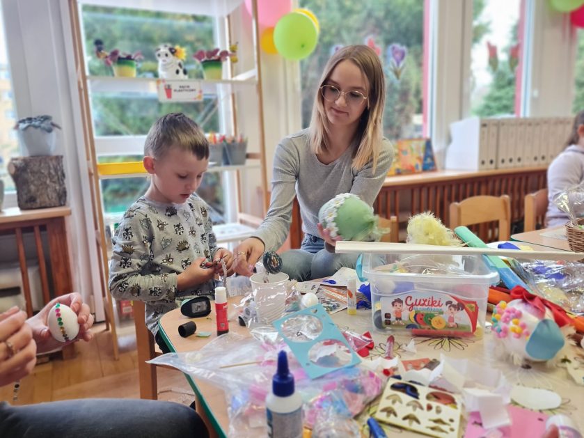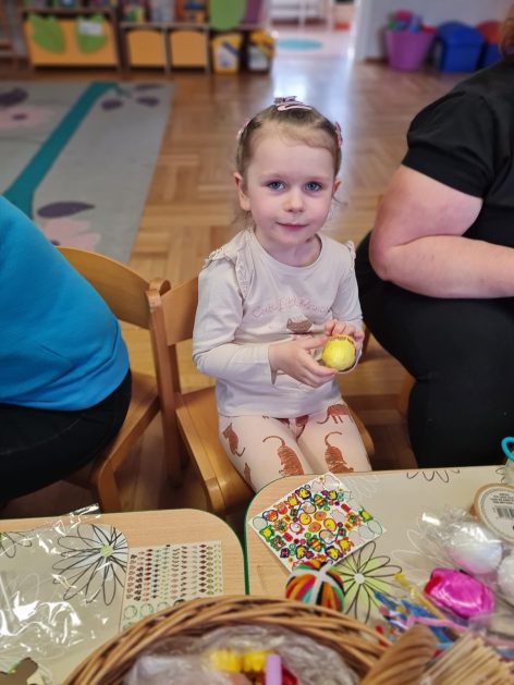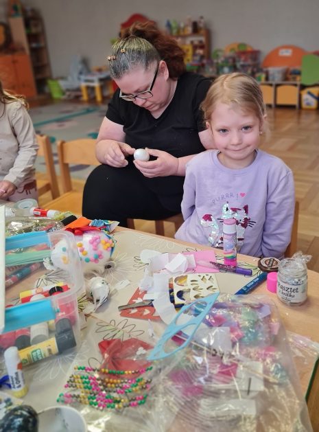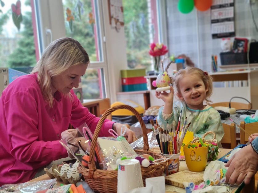 Rodzice i dzieci z grupy maluszków uczestniczyli w warsztatach wielkanocnych. Dorośli i mali artyści z dużym zaangażowaniem przystąpili do twórczych działań. W miłej, wiosennej atmosferze powstały kolorowe świąteczne dekoracje. Chyba wszyscy poczuli, że Wielkanoc tuż, tuż.