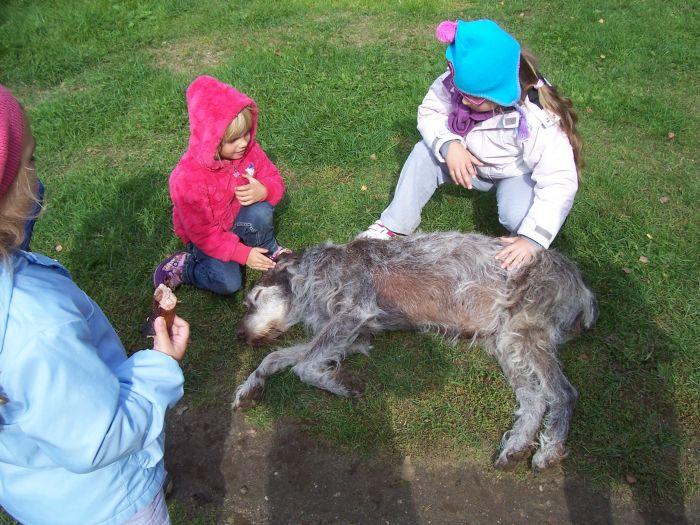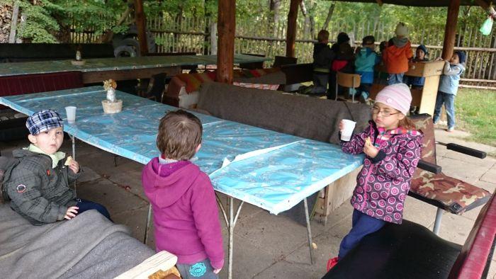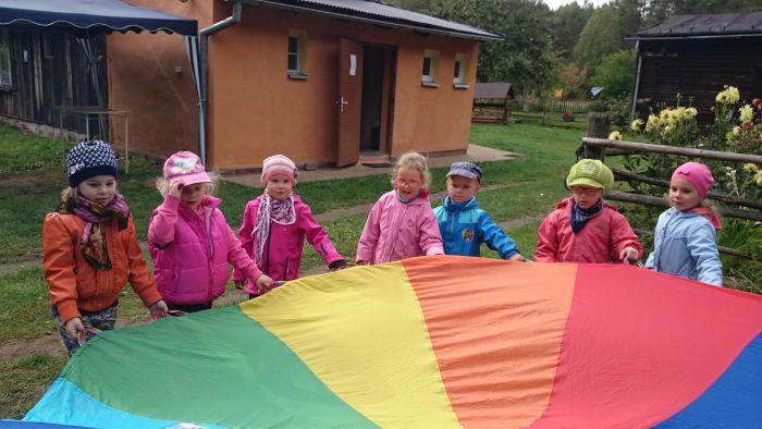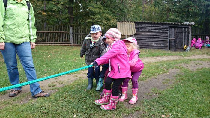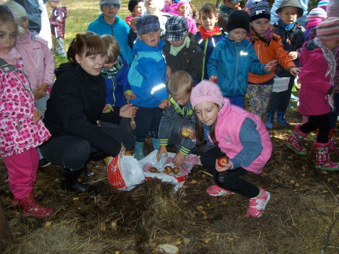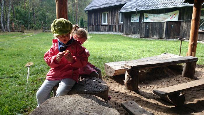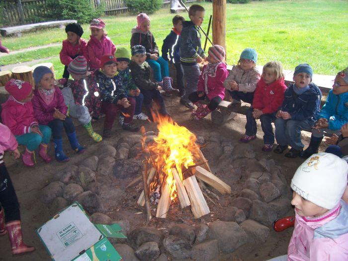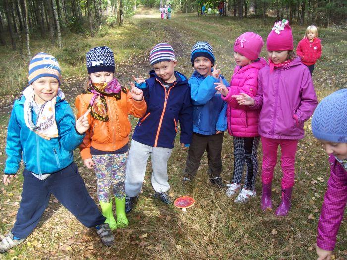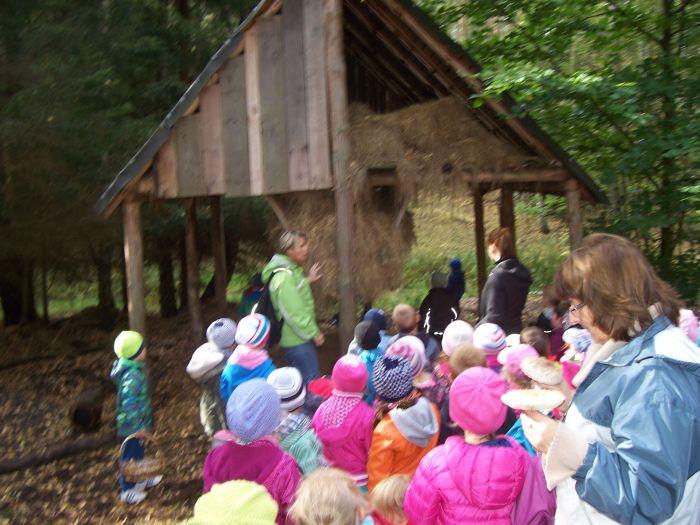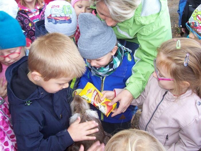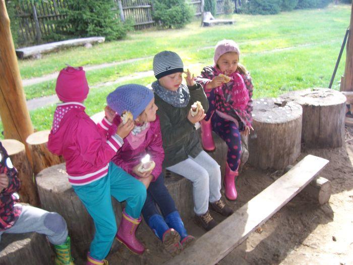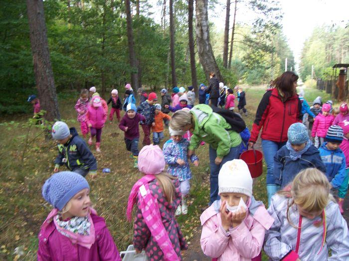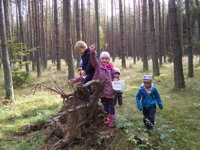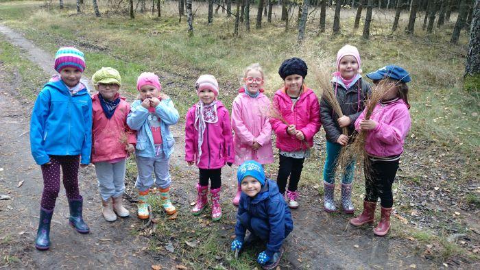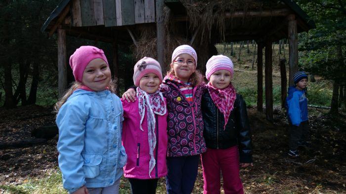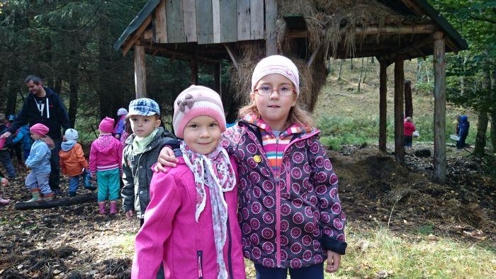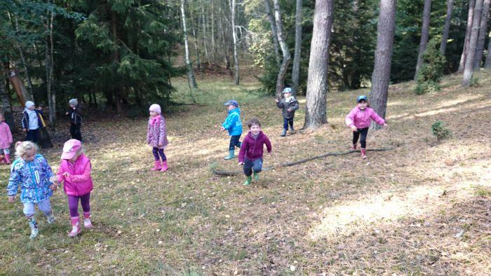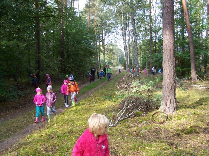 5,6 latki w piękny, jesienny dzień wyjechały do leśniczówki koło Drawienia. Celem było przybliżenie dzieciom środowiska przyrodniczego jakim jest las. Dzieci oglądały drzewa, szukały runa leśnego i słuchały odgłosów. Zajrzały do paśnika aby zostawić tam smakołyki. Po wyczerpującym spacerze kiełbaski upieczone przy ognisku bardzo smakowały. Na zakończenie podziękowały Pani i za miłe przyjęcie.