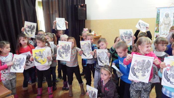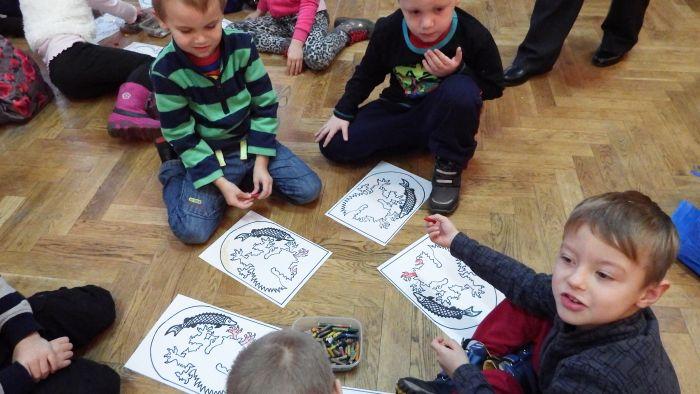 W tym roku ponownie nawiązaliśmy współpracę z SAPiKiem. Tematyką comiesięcznych spotkań będą polskie legendy. Tym razem 6 latki rozmawiały o swojej ojczyźnie, wskazywały granice i szukały swojego miasta na mapie. Poprzez wysłuchanie legendy o Ludgardzie dowiedziały się dlaczego w herbie Szczecinka jest gryf i jesiotr.